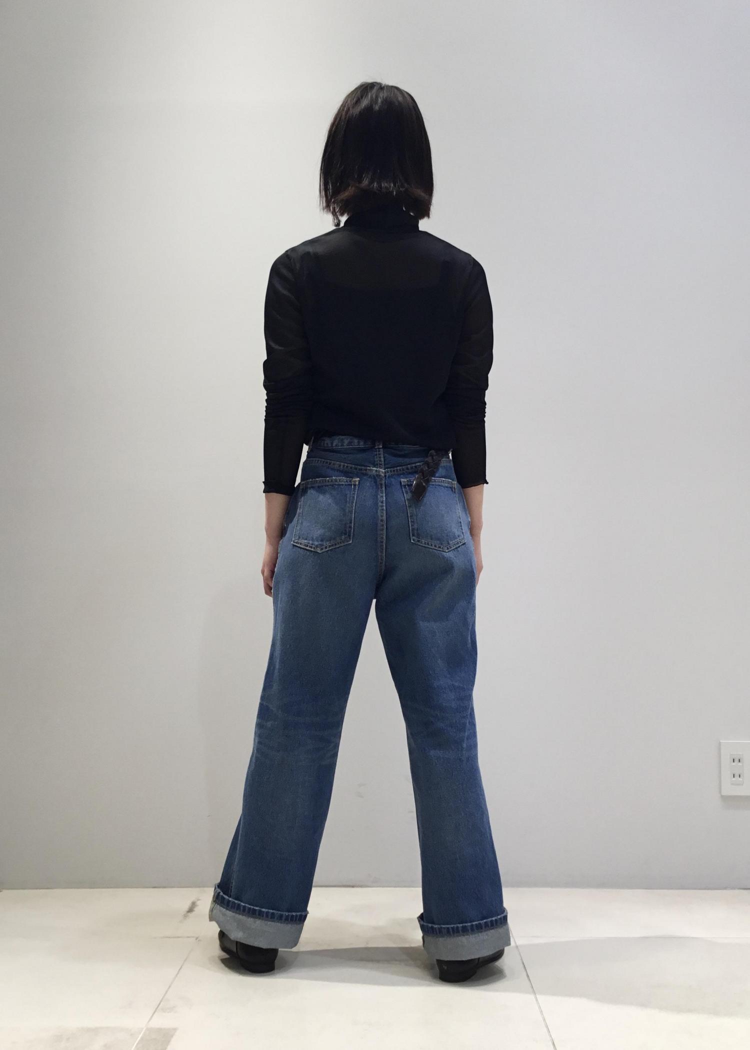 履き込んだようなヴィンテージライクな加工をいれたセミフレアパンツです。