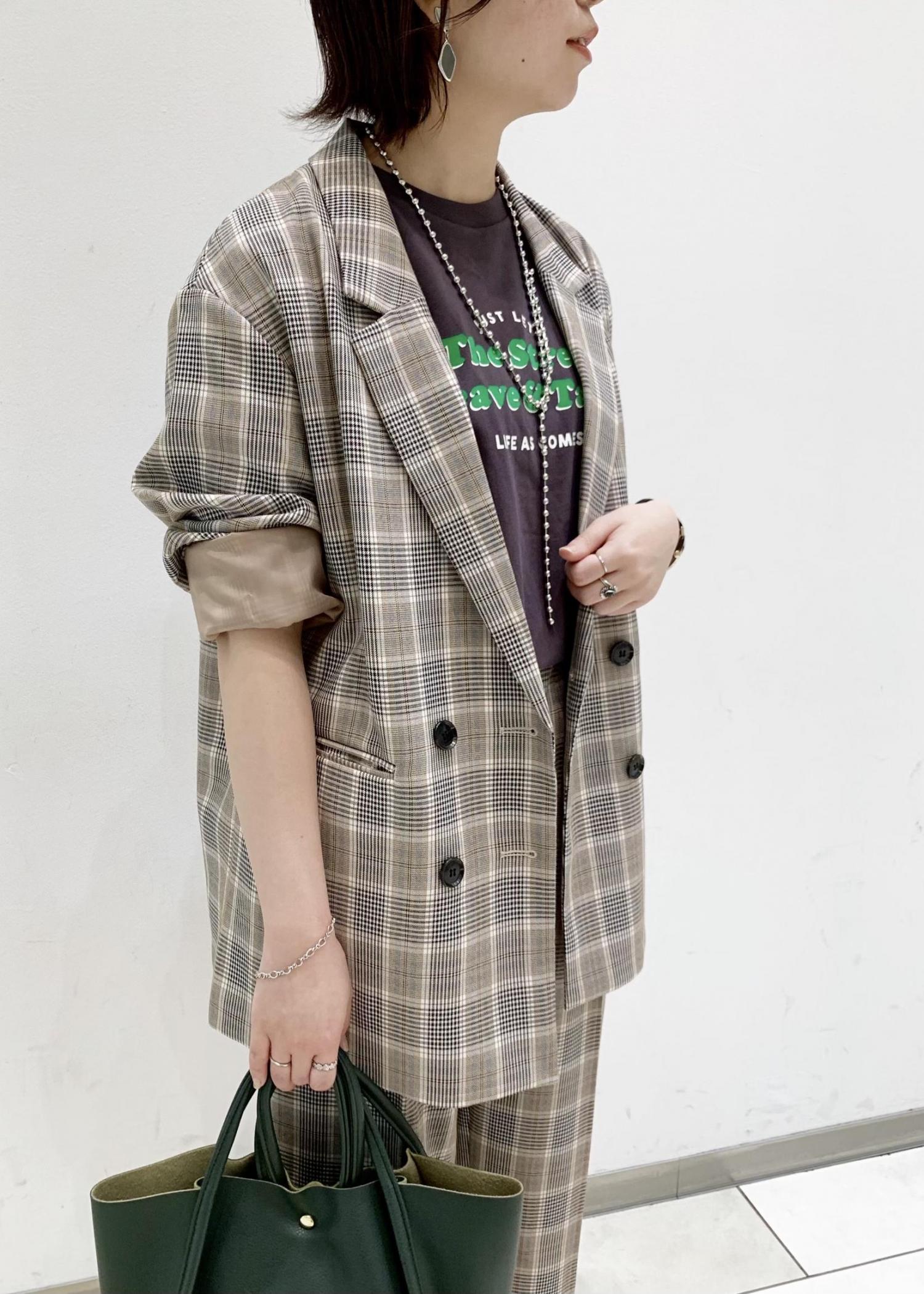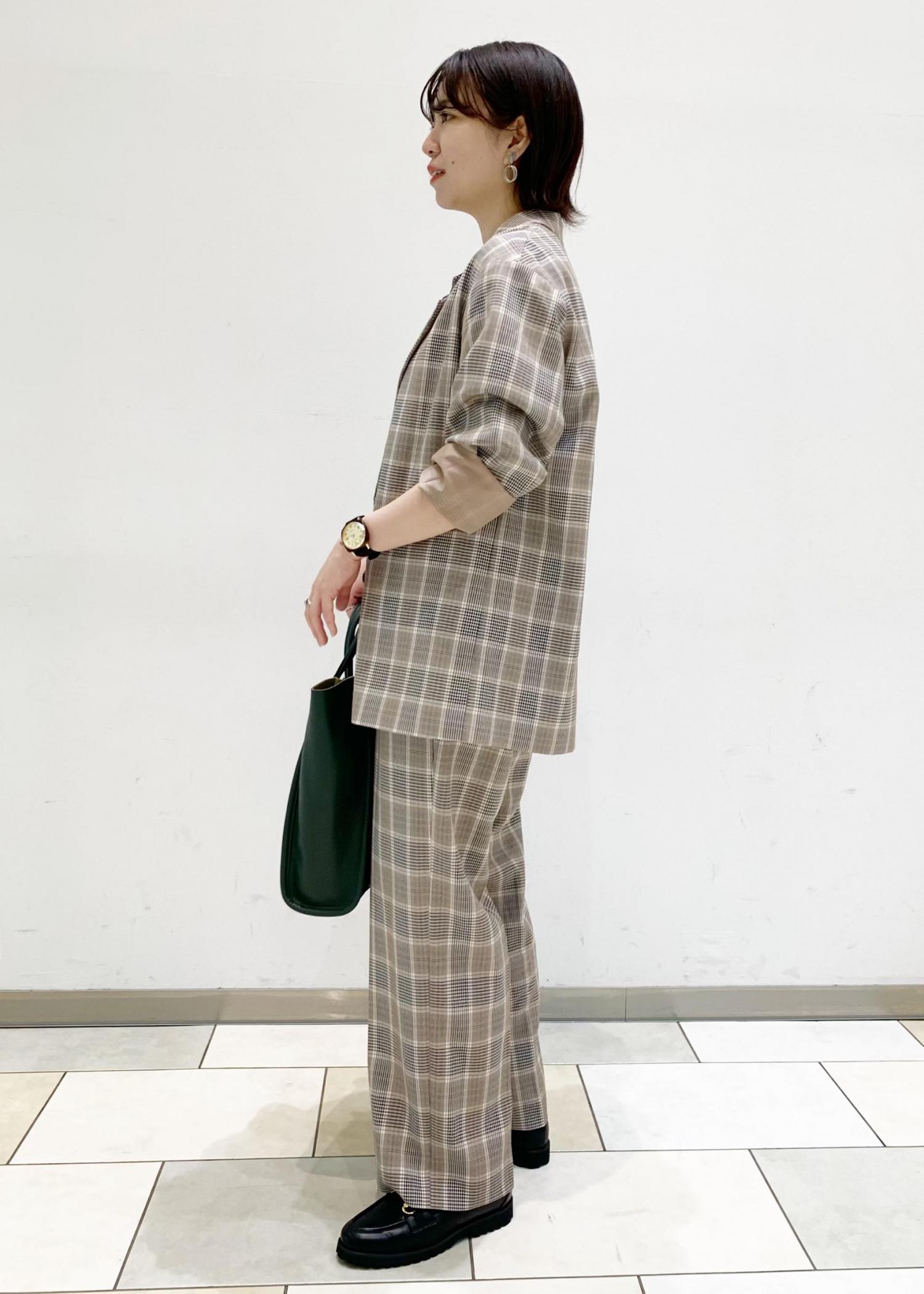 チェックのレトロなセットアップをローファーと組み合わせてあえてハンサムな雰囲気を意識しました。