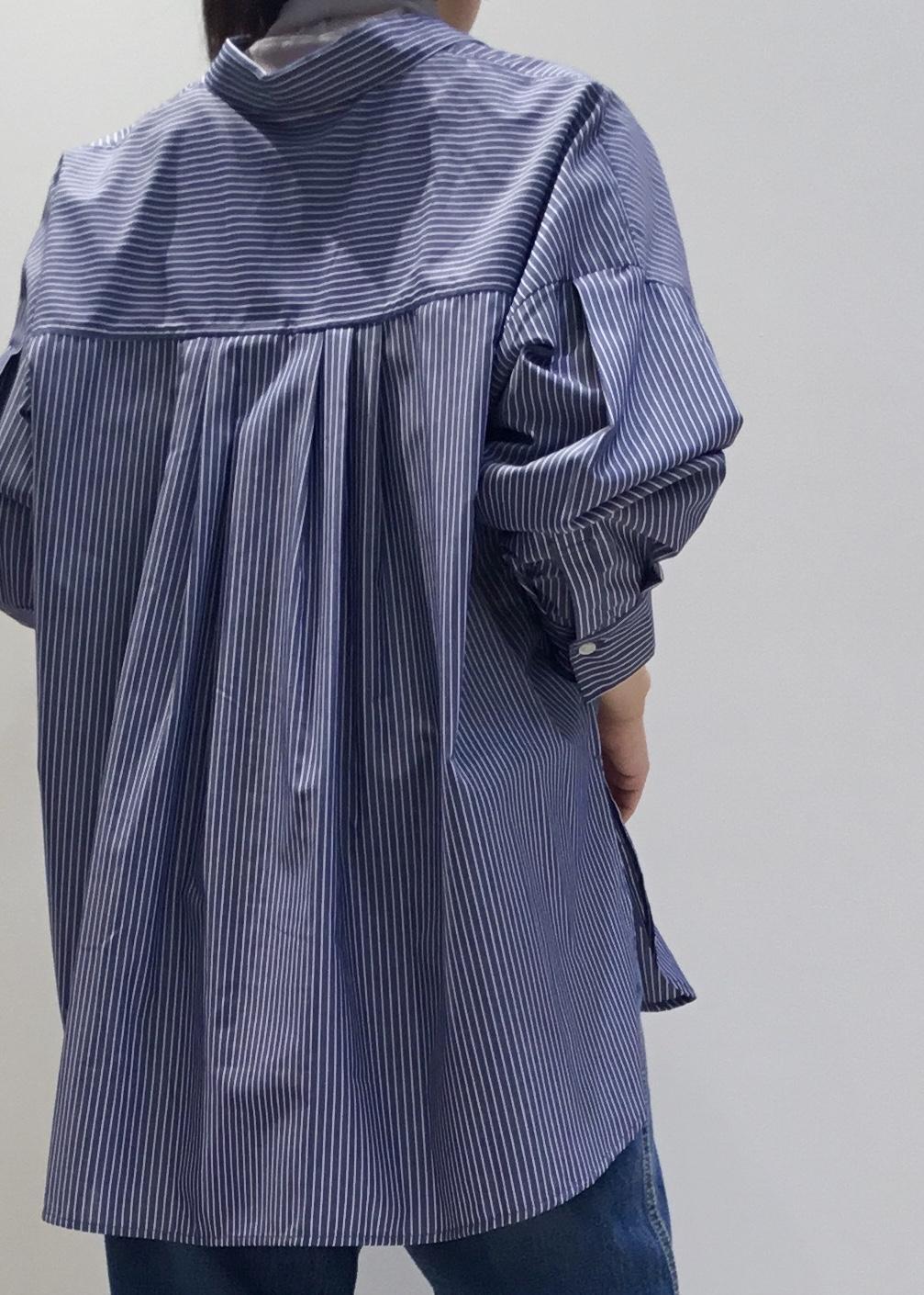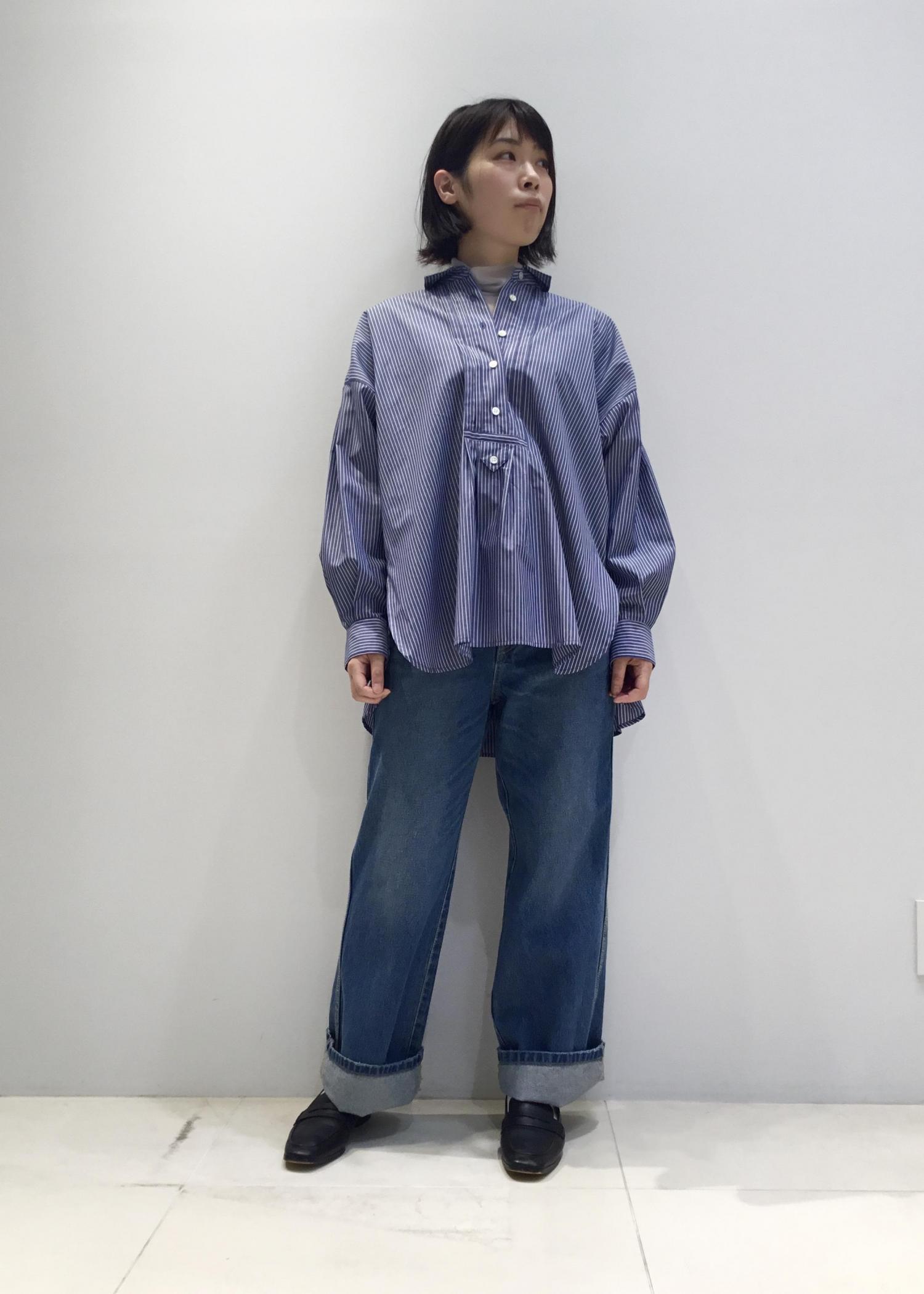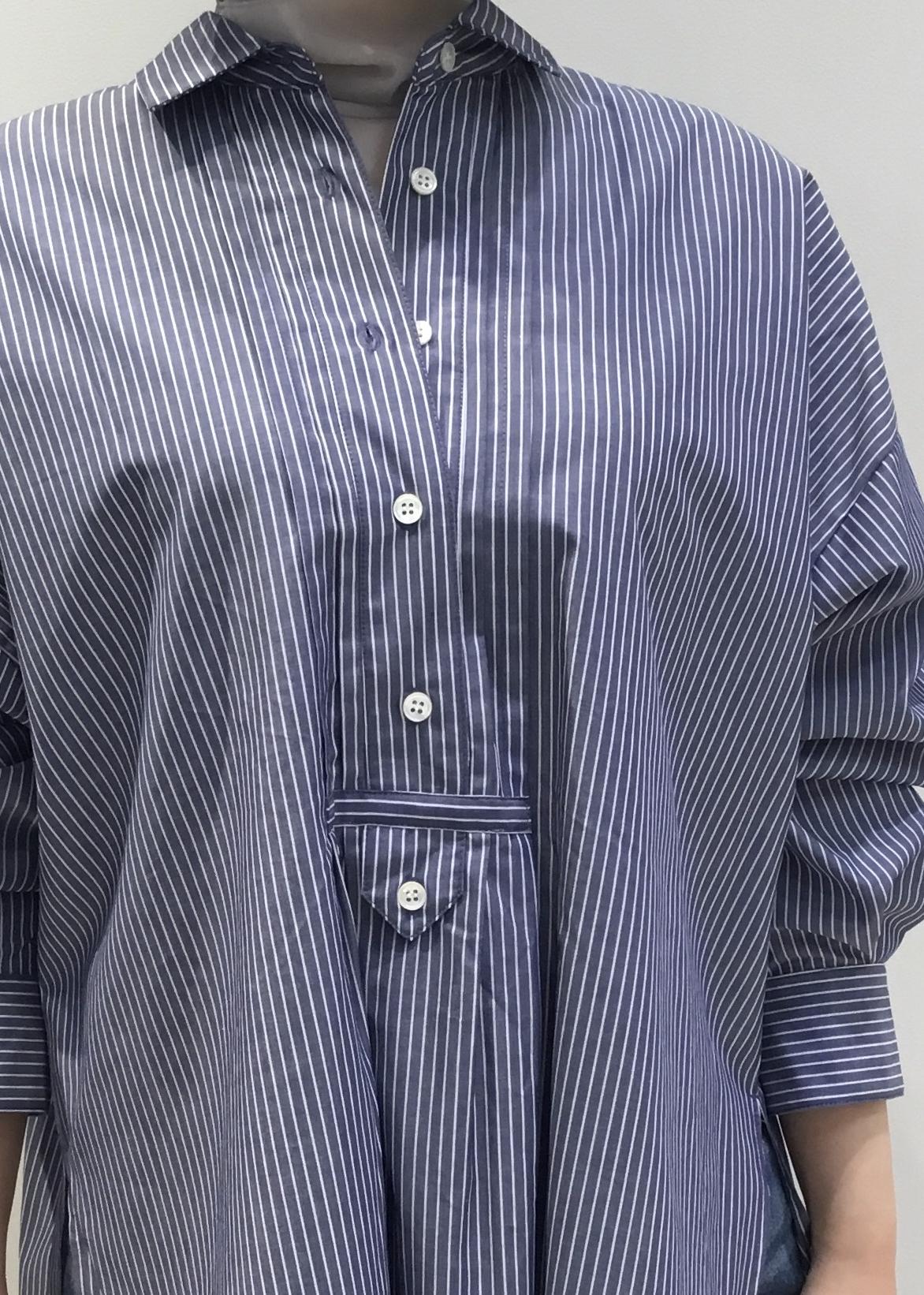 立体的なフォルムが特徴のプルオーバータイプのストライプシャツです。