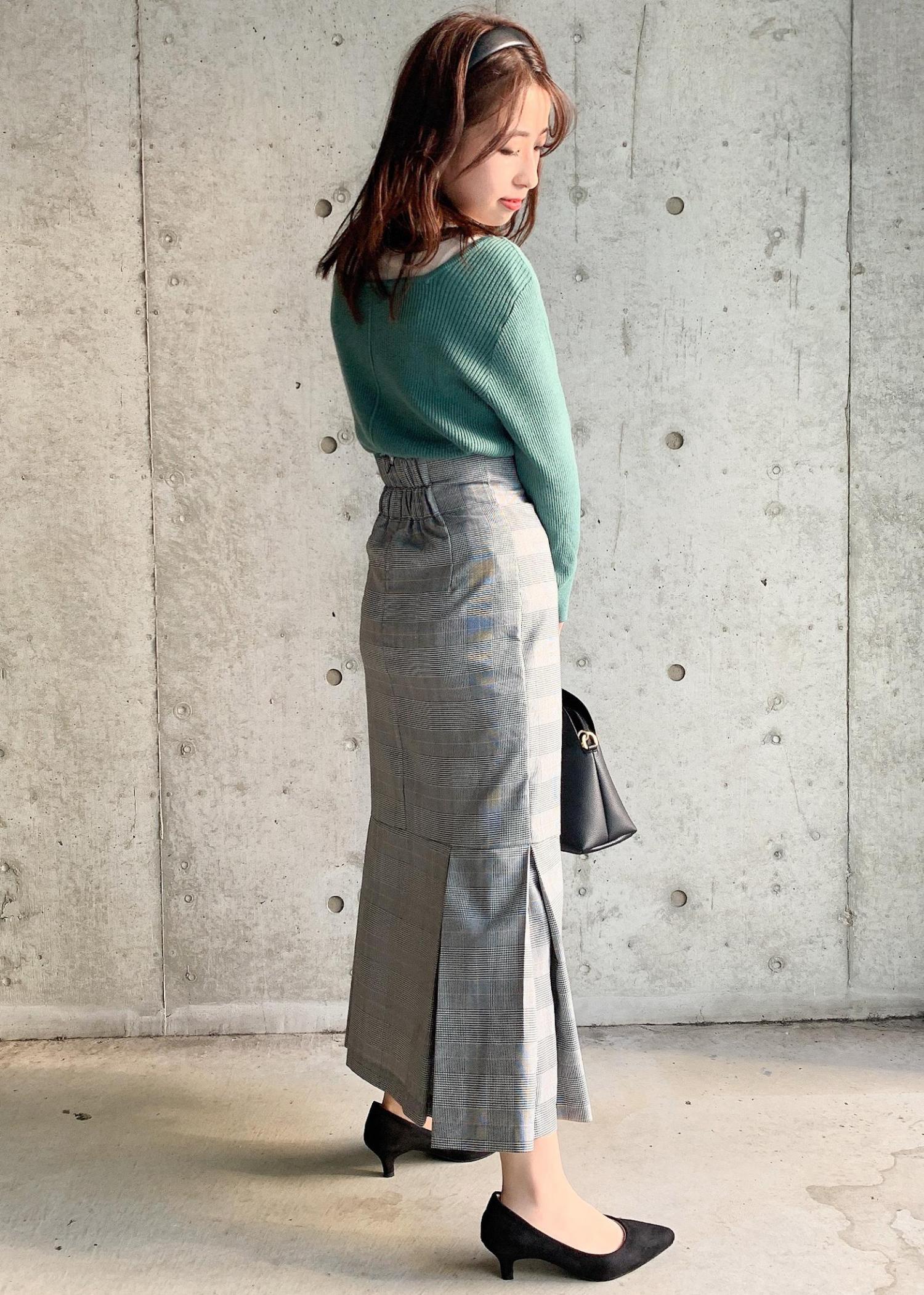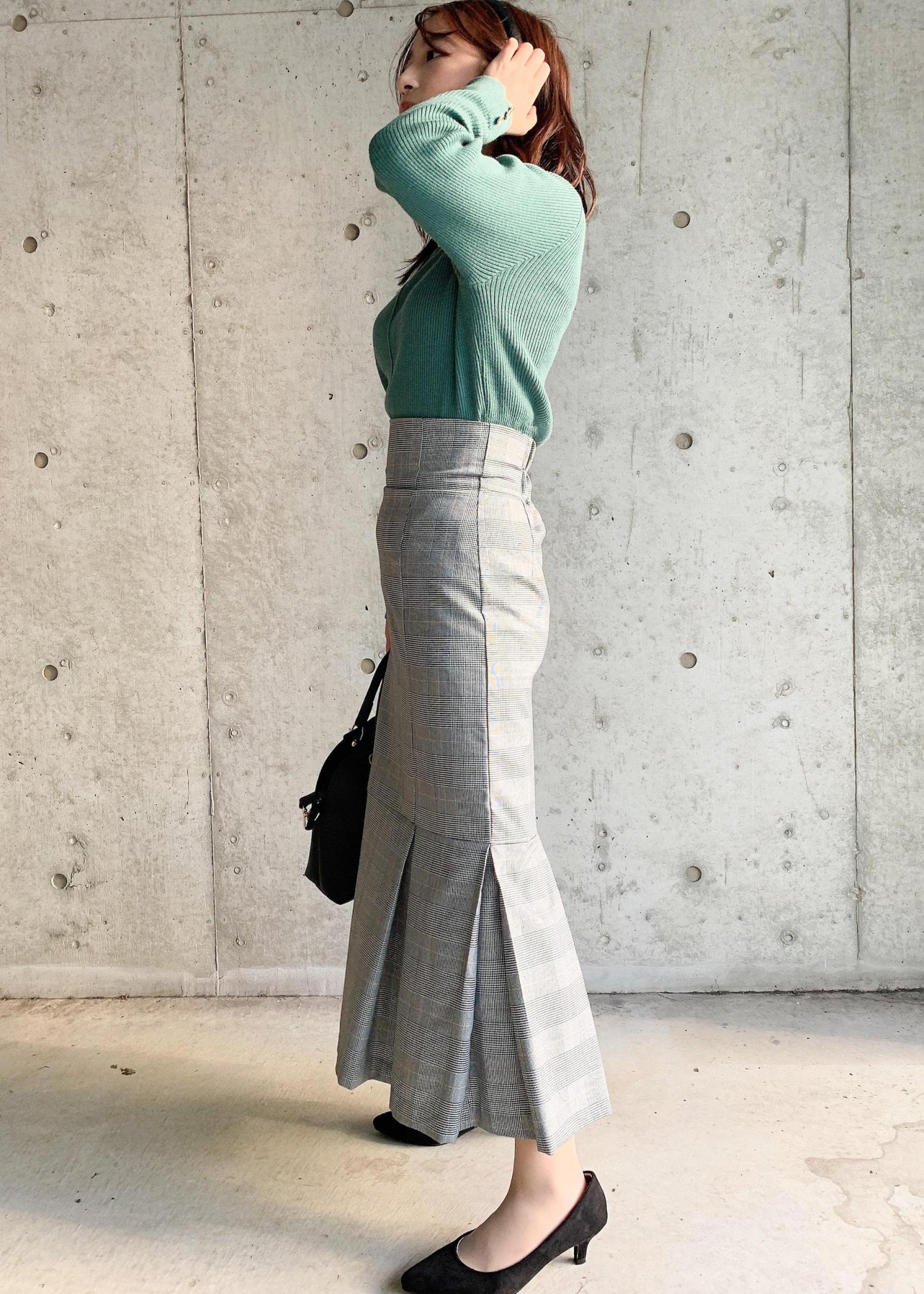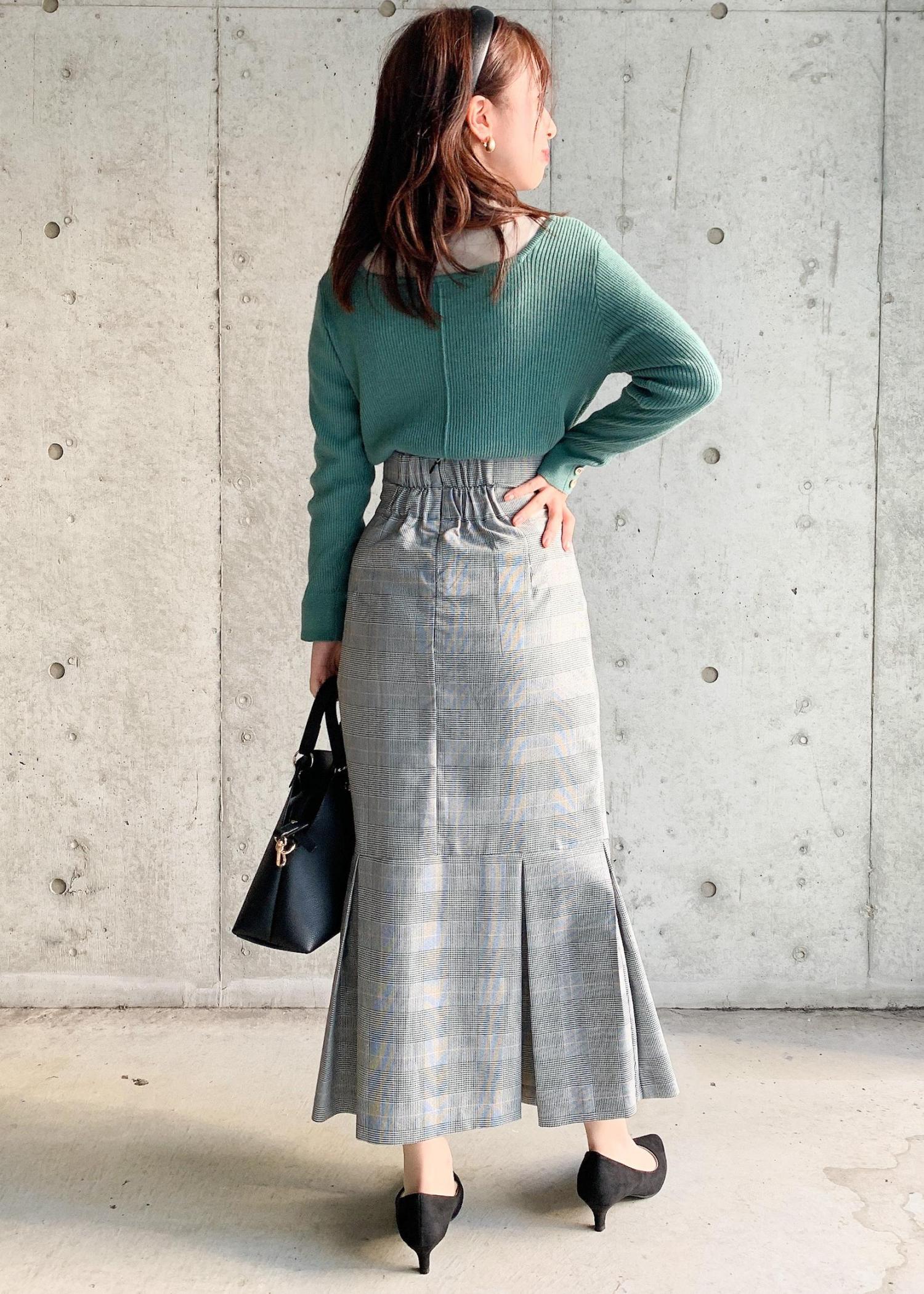 ハイウエストのマーメイドスカートは、細かい柄で優しい印象に♡