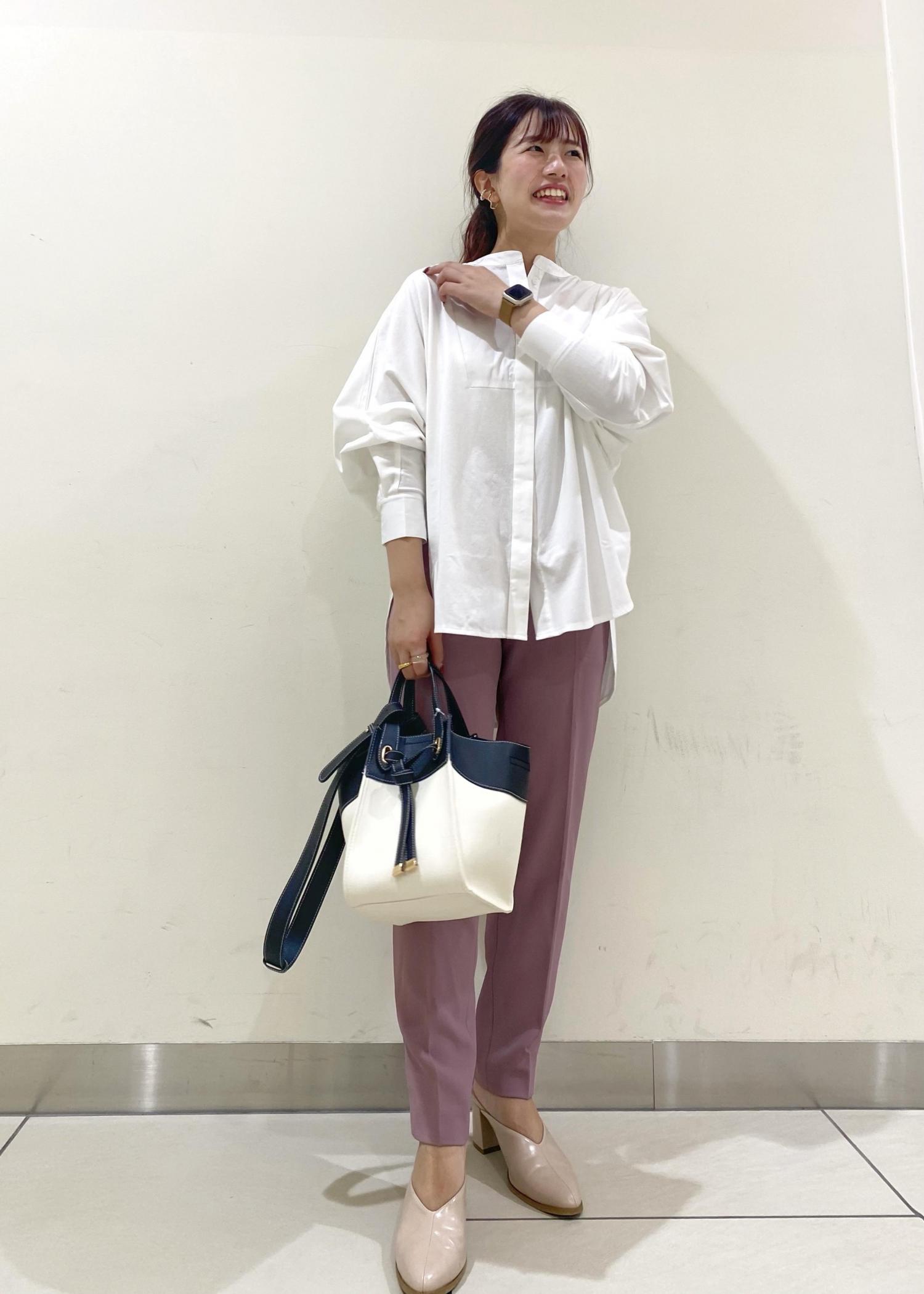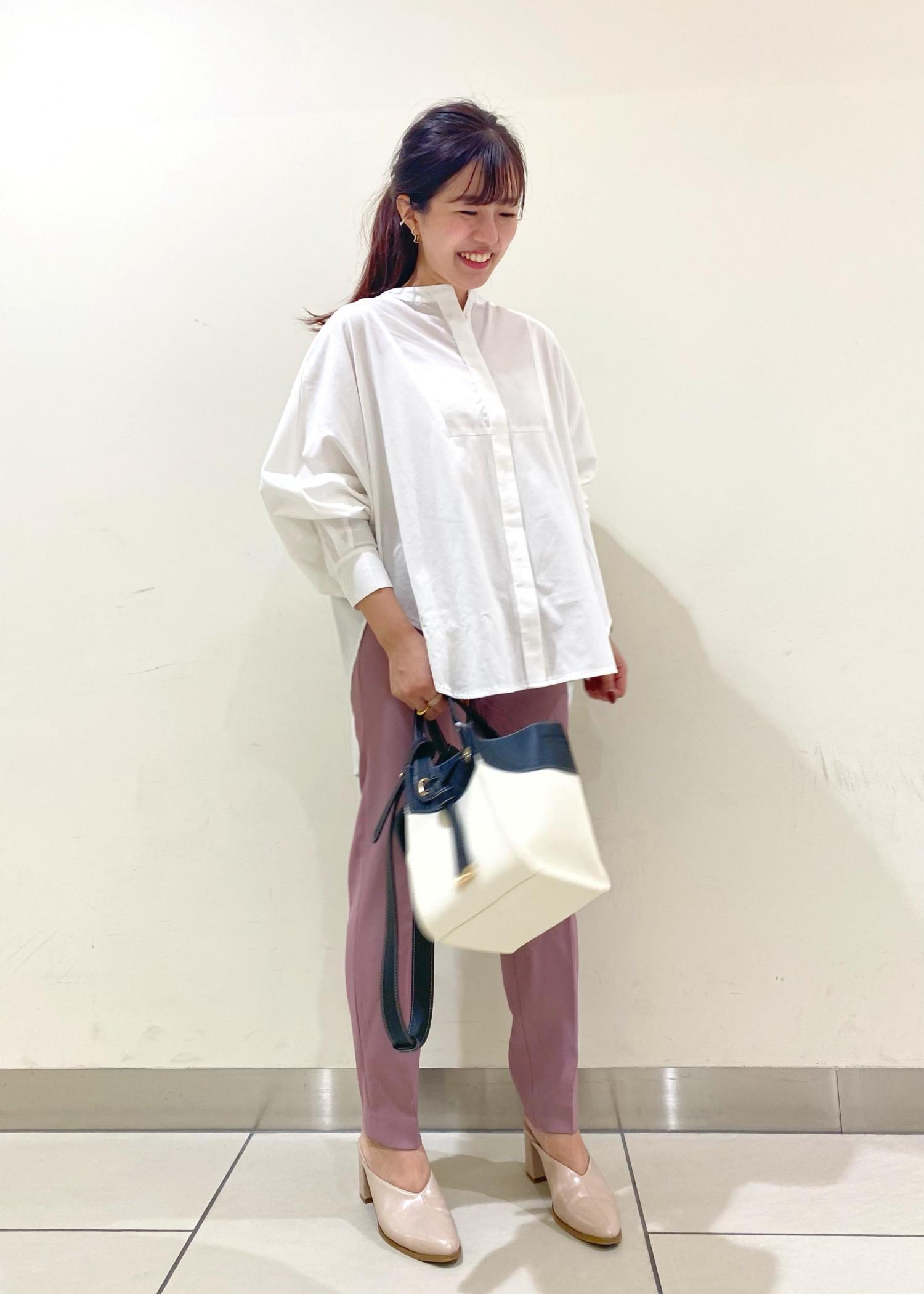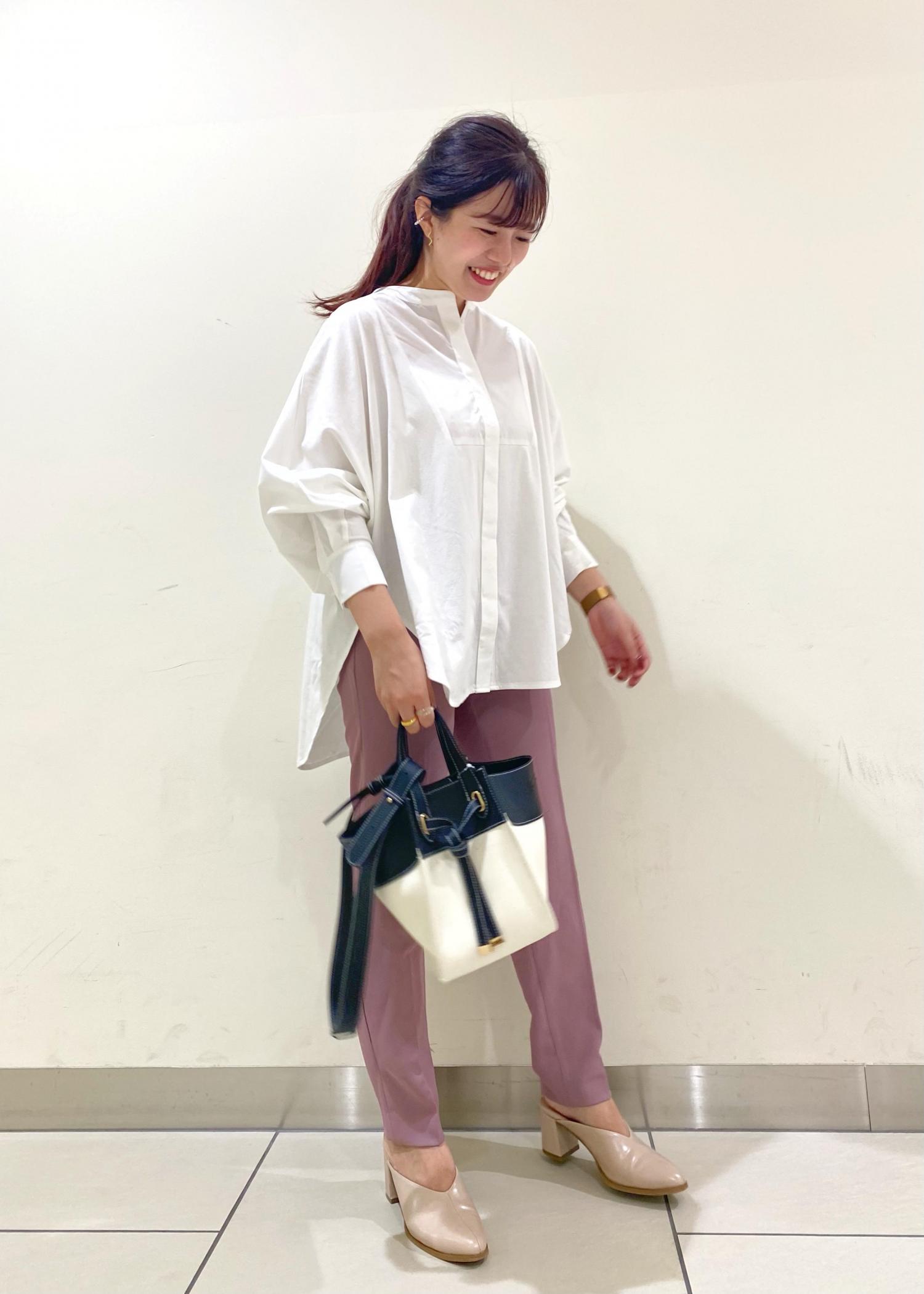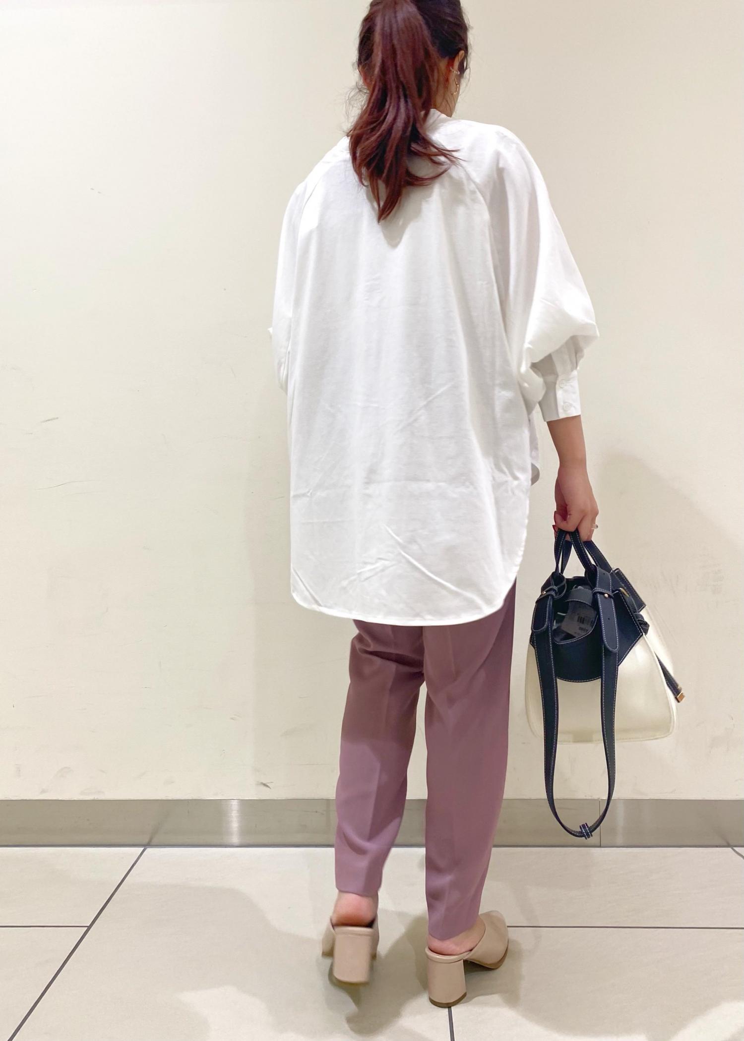 トレンドデザインのブルオーバーとテーパードパンツを合わせた女性らしい綺麗目なコーディネートに!