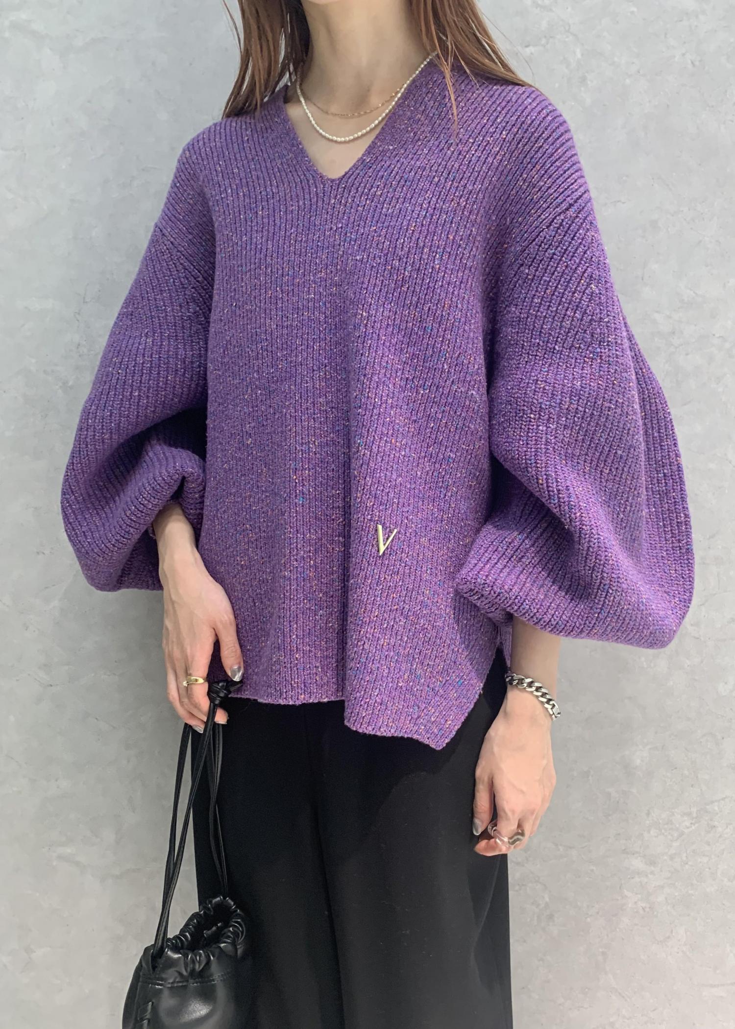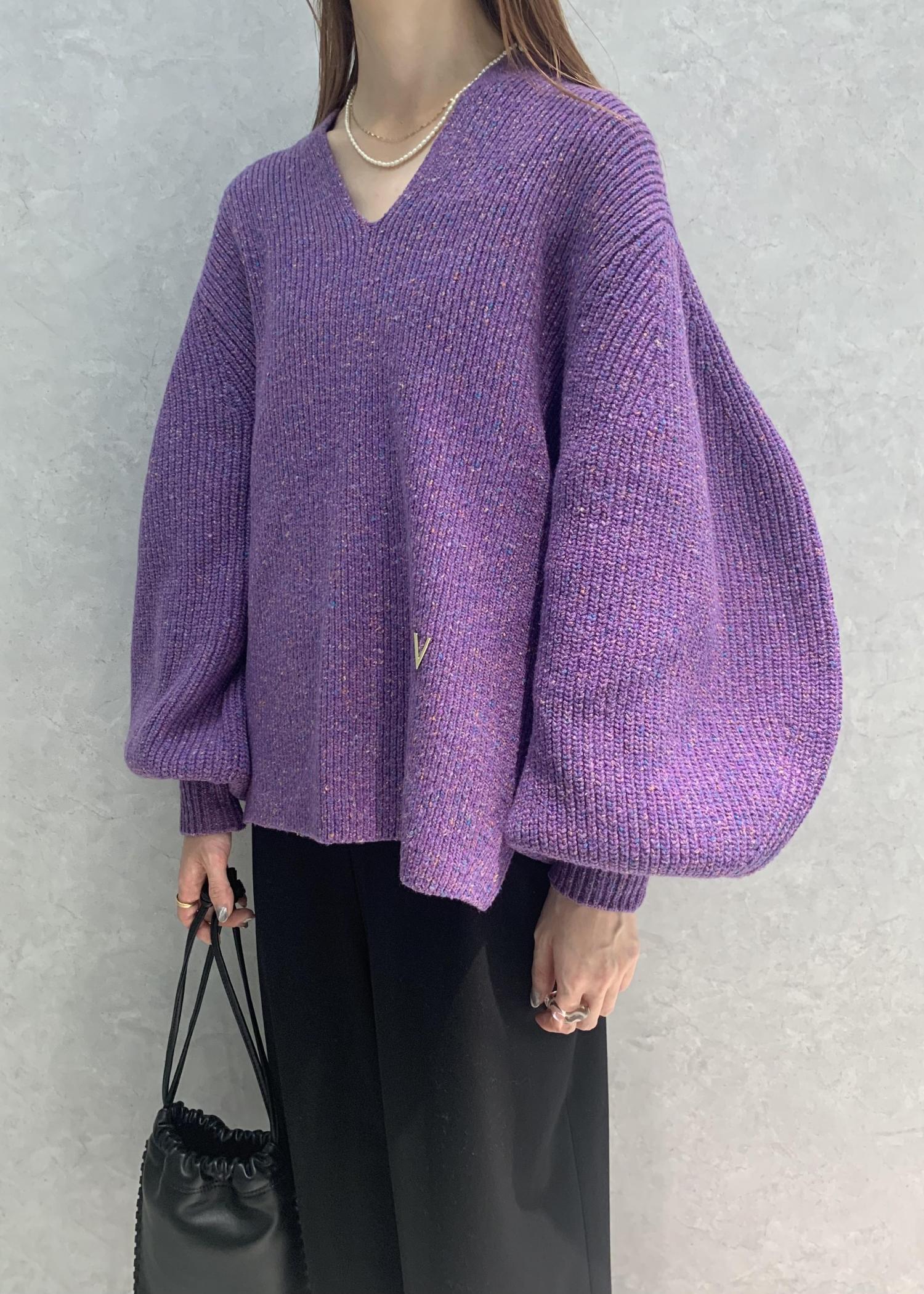 ボリュームスリーブにカラフルなネップデザインが可愛いニットプルオーバー。