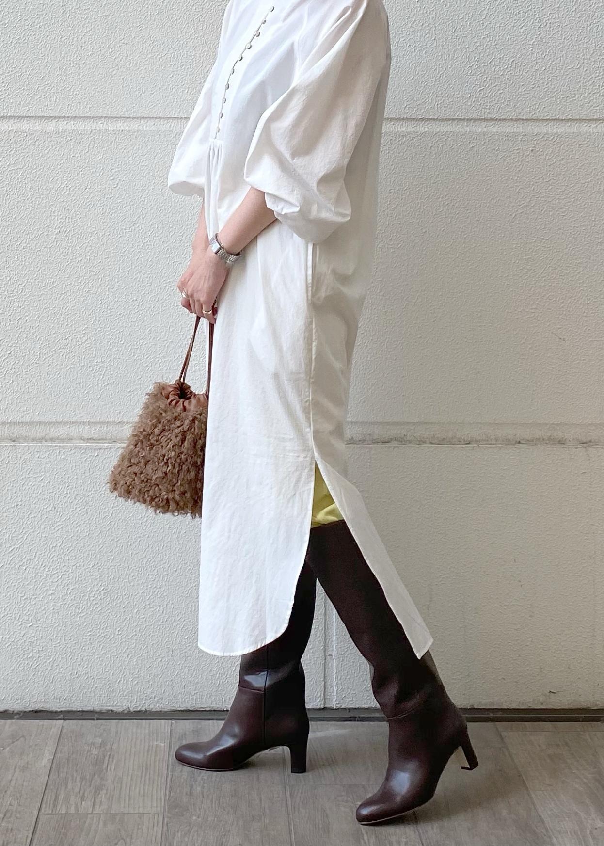今年再燃しているロングブーツとのコーデも可愛いです♪