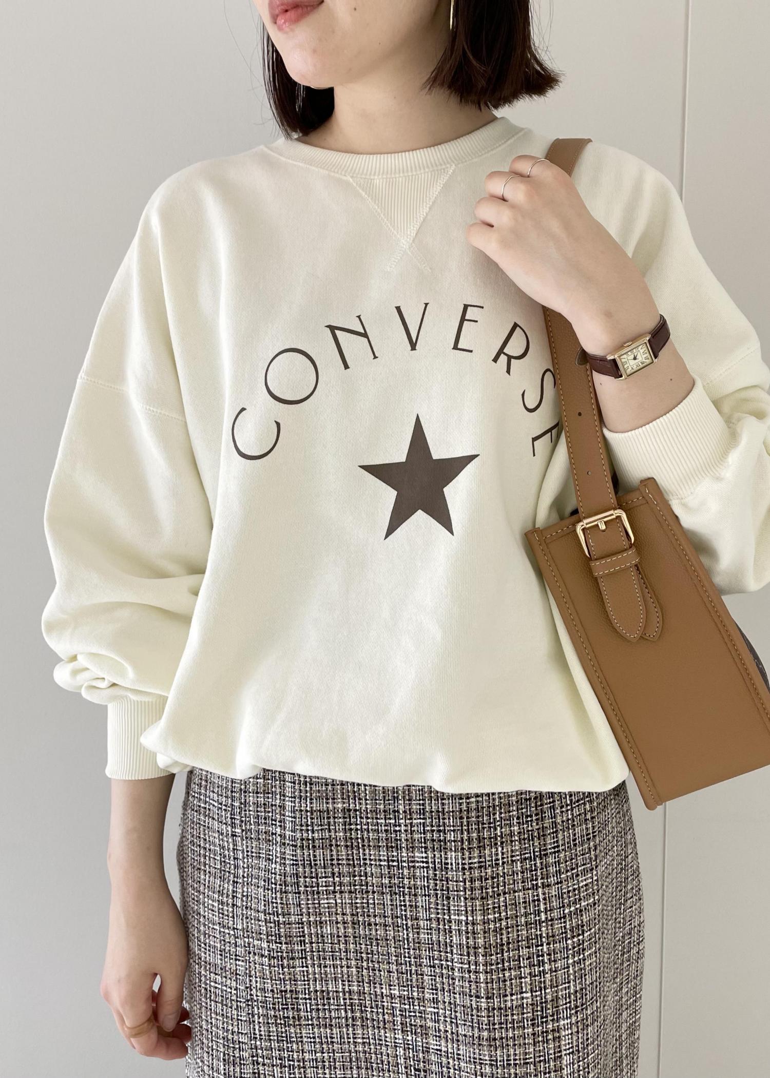 スウェットに綺麗目スカートを合わせる事でワンランク上の大人カジュアルにまとまるので是非チャレンジしてみてくださいね◎