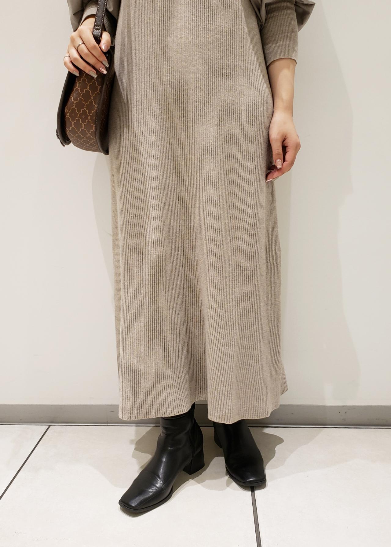 ニットワンピースでフェミニンスタイル