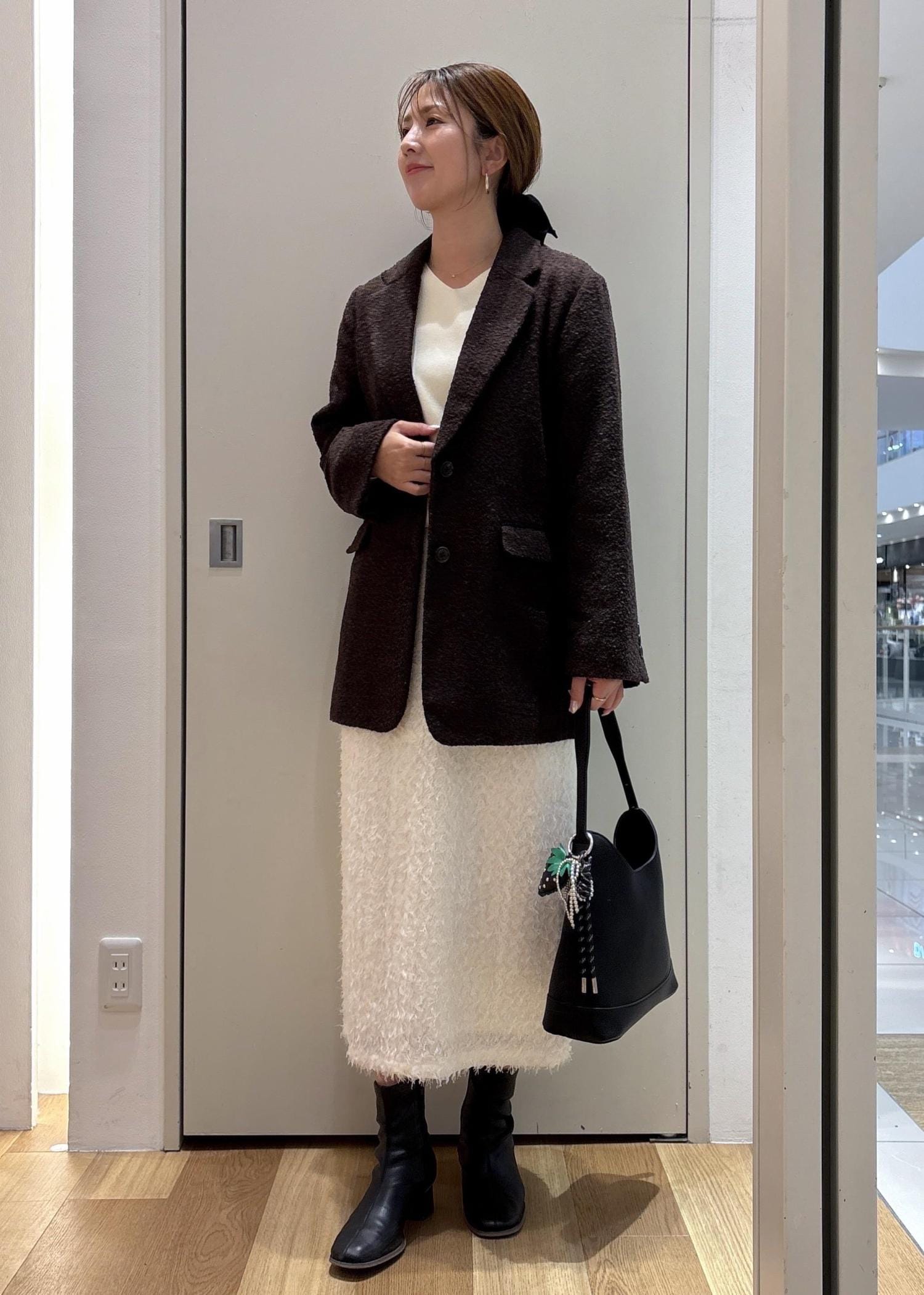 カチッとしたイメージのジャケットですが、ワイドパンツやデニムに合わせる事でカジュアルにもなりますのでおすすめです!