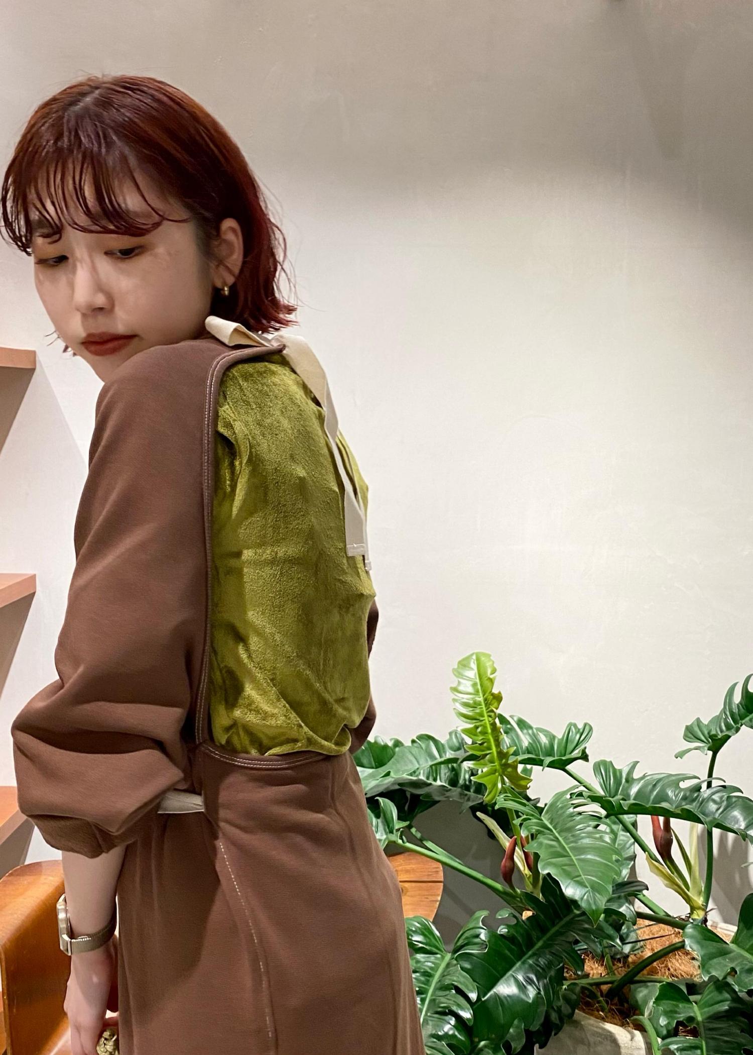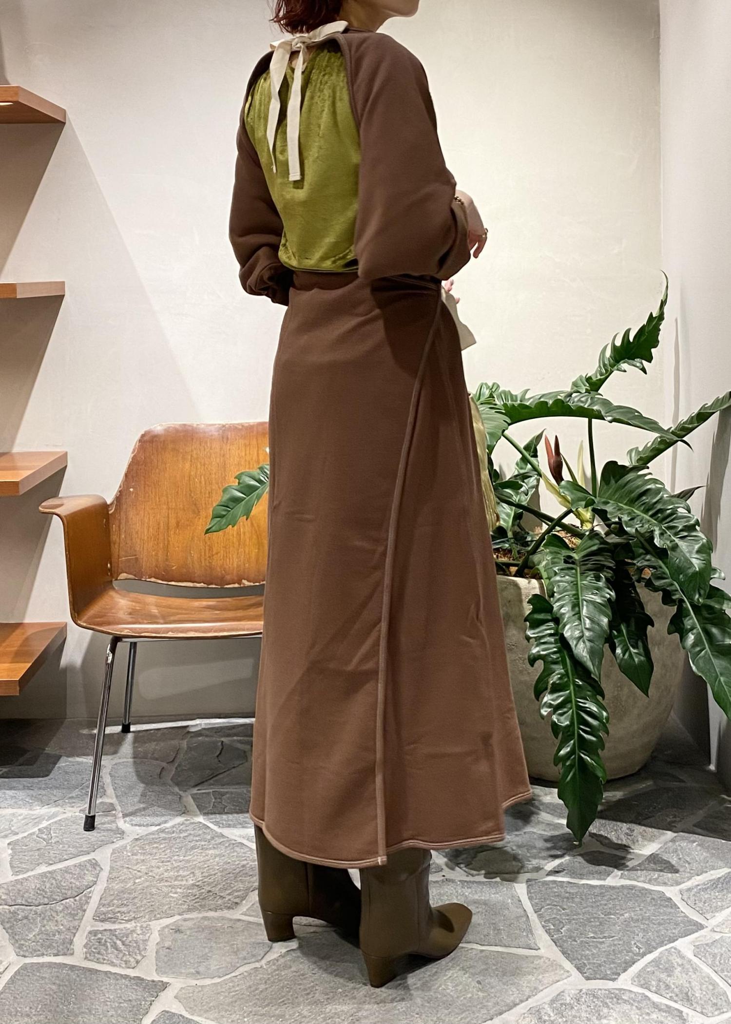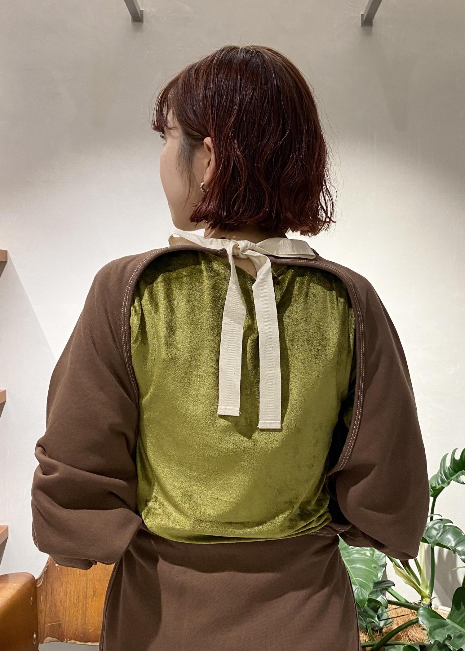 バックデザインが最高に可愛いワンピースと、定番でご好評のベロアロンTをレイヤードで着用してみました!