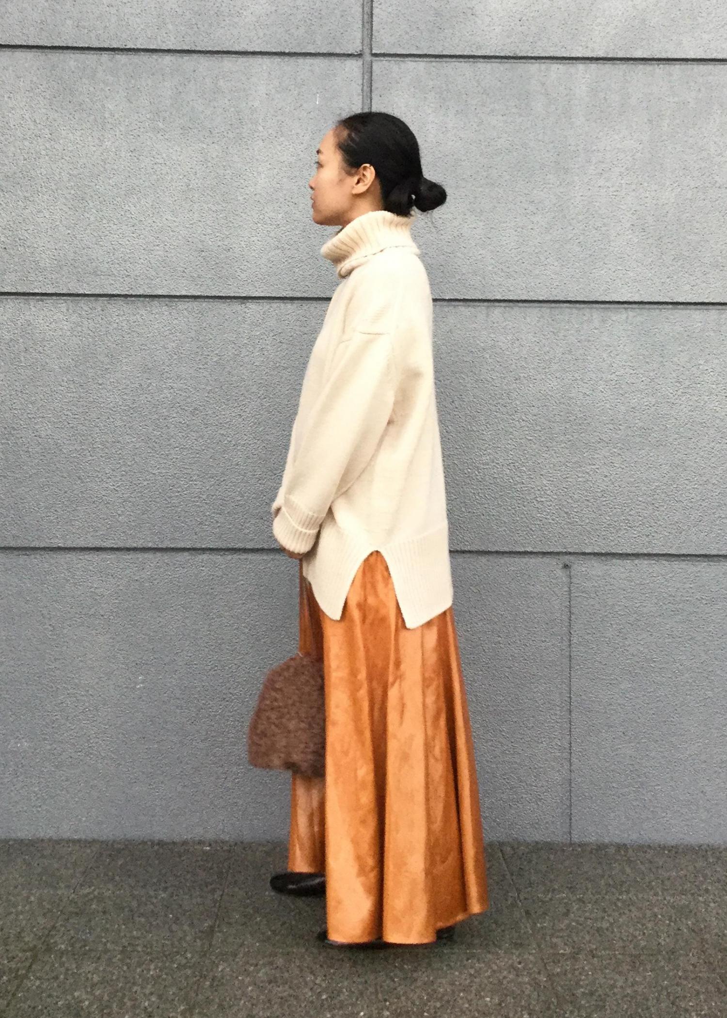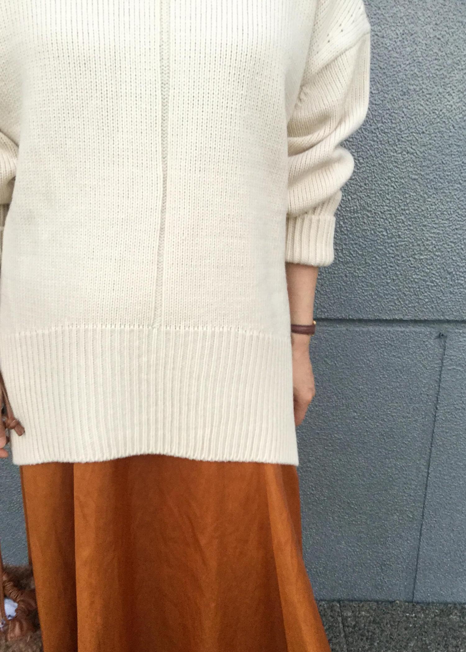 適度な厚みでレイヤードのコーディネートやアウターのインナーとしても使いやすく、ボトムを選ばないシルエットなので日々の着こなしに大活躍です。