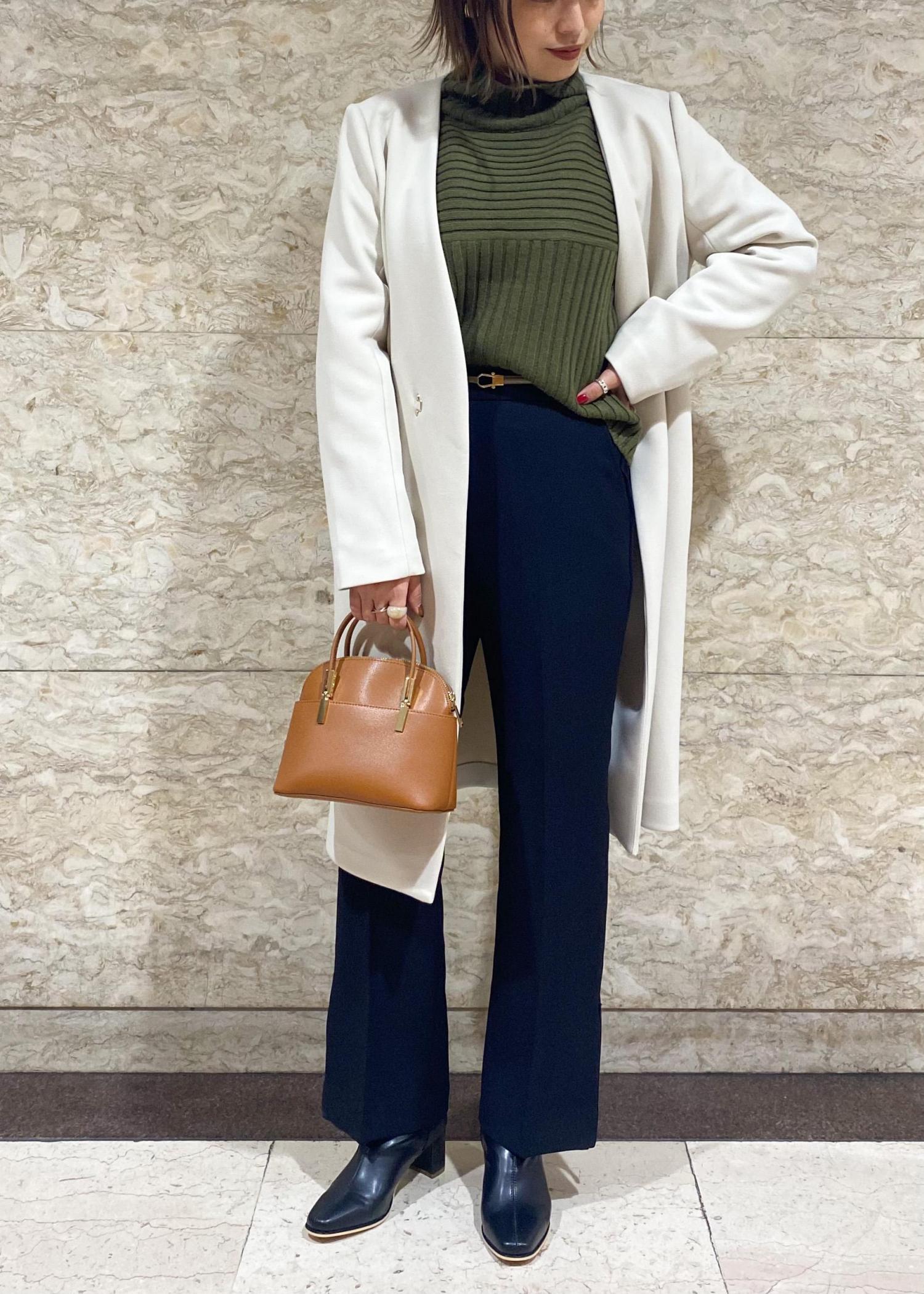 カラーレスコートと合わせてバランス良く着こなしてみました。
