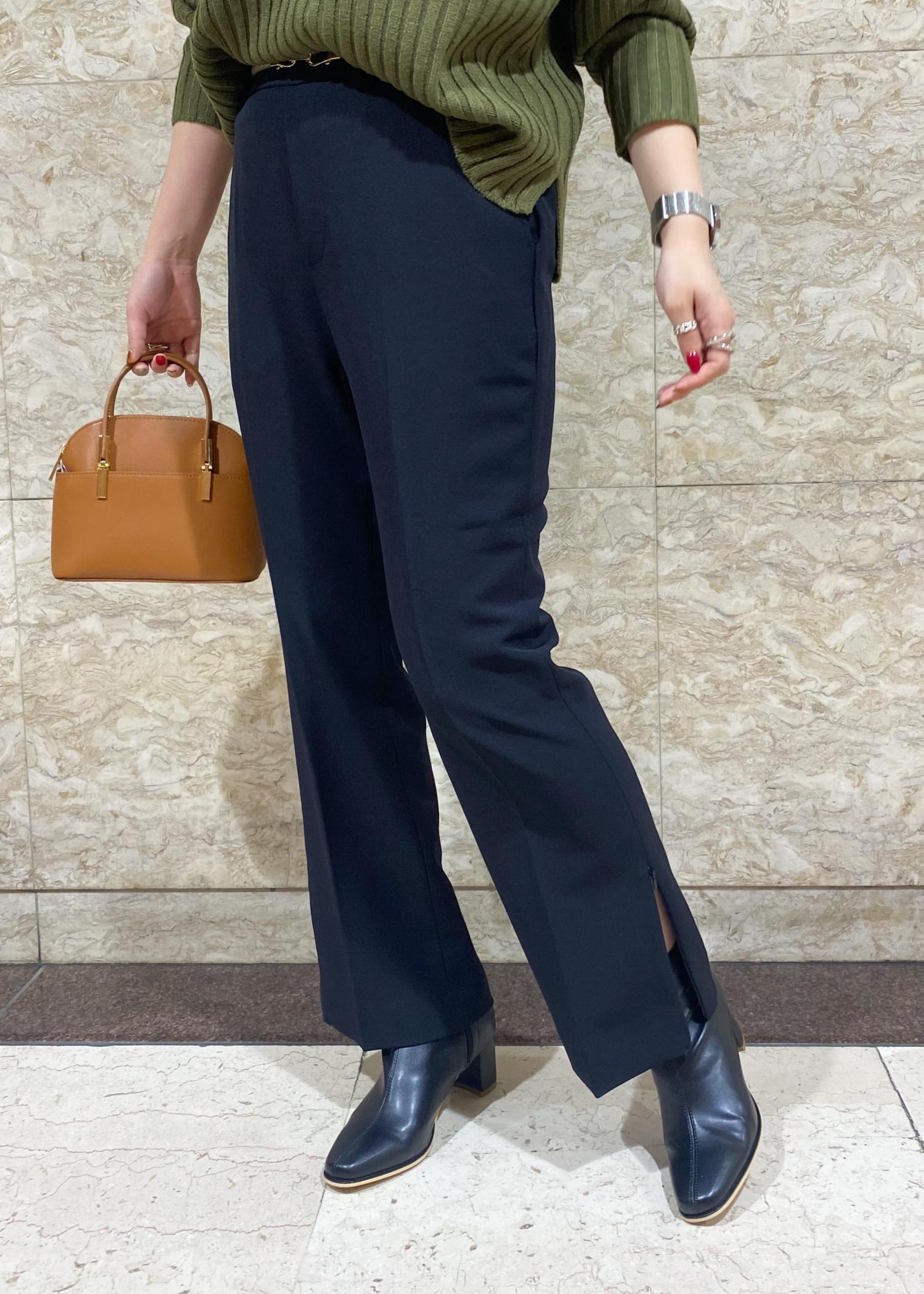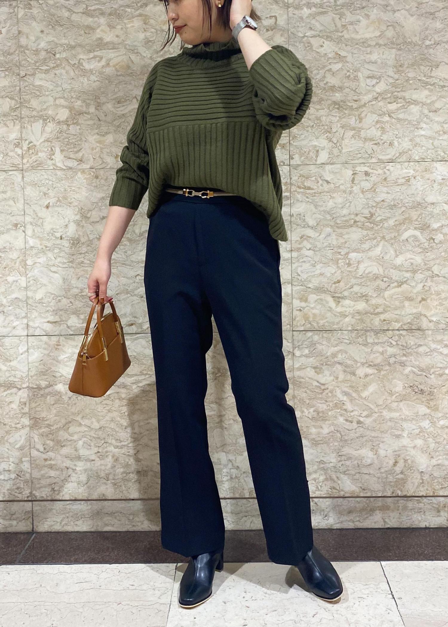 大人気のリブ切替ニットをキレイめカジュアルにまとめたコーディネートです。