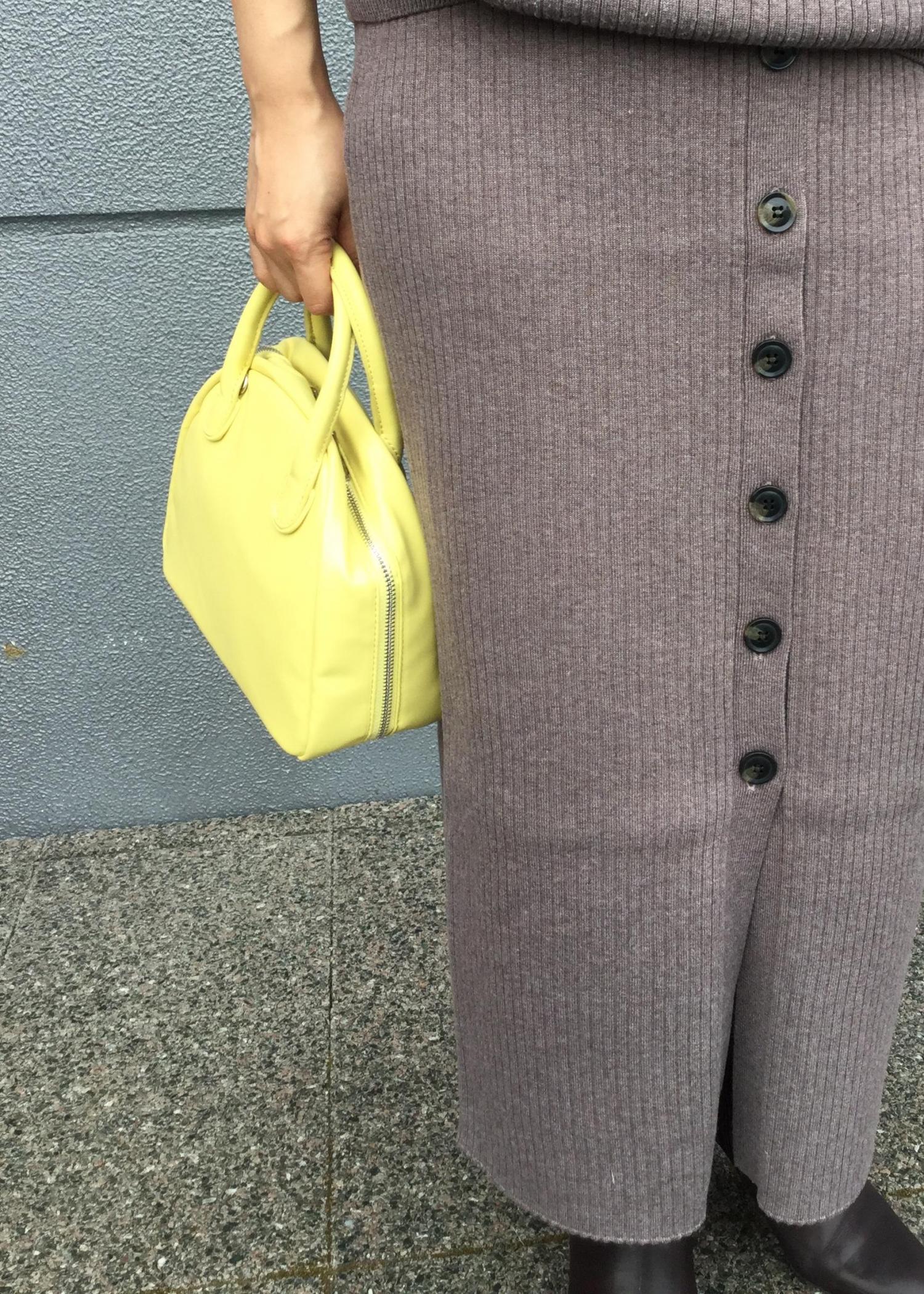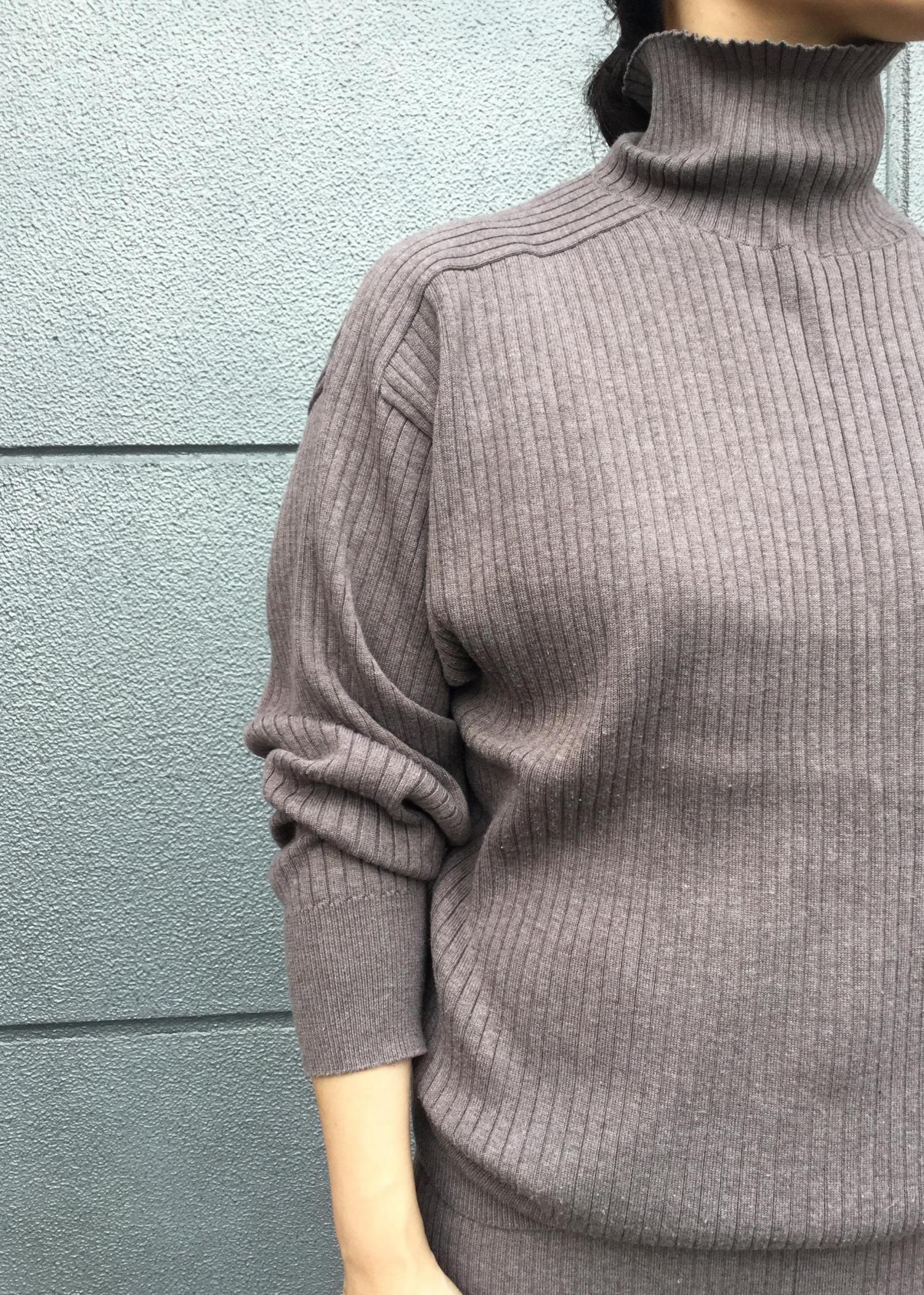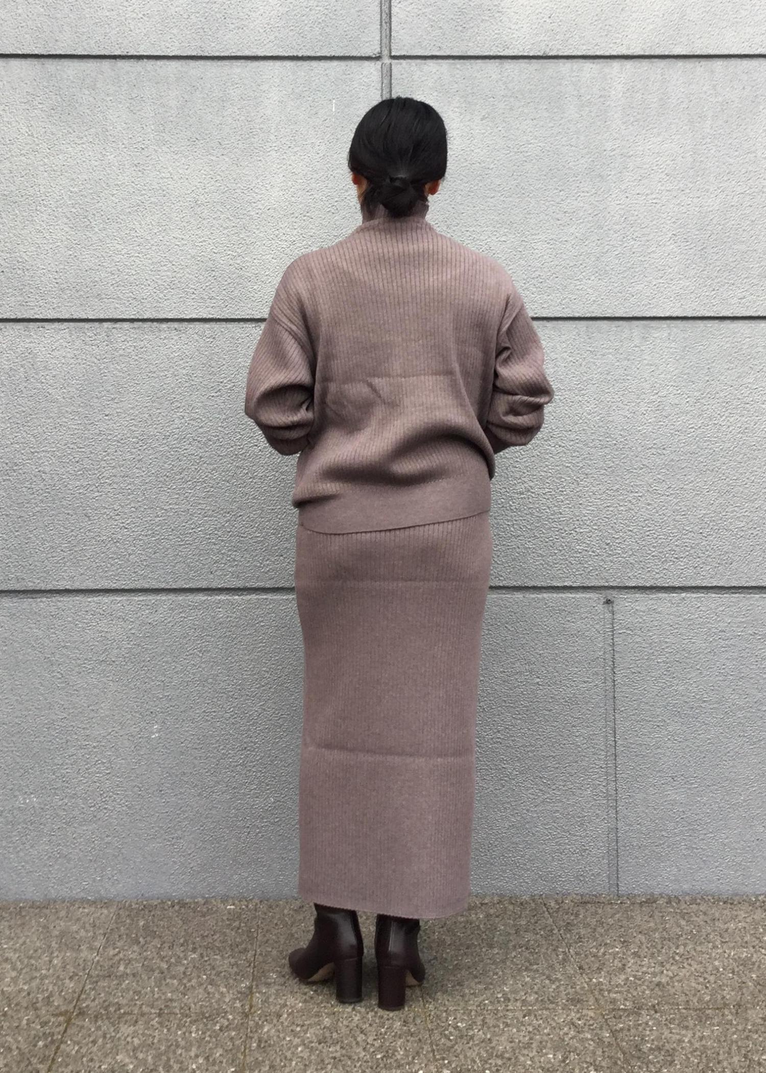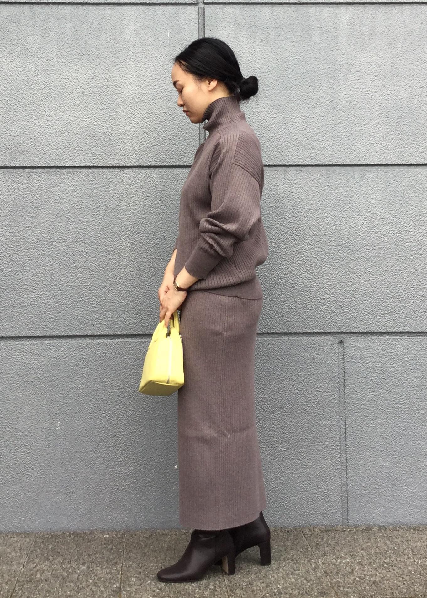 さらりとしたニット地のタートルとタイトスカートはセットアップがお勧めです。