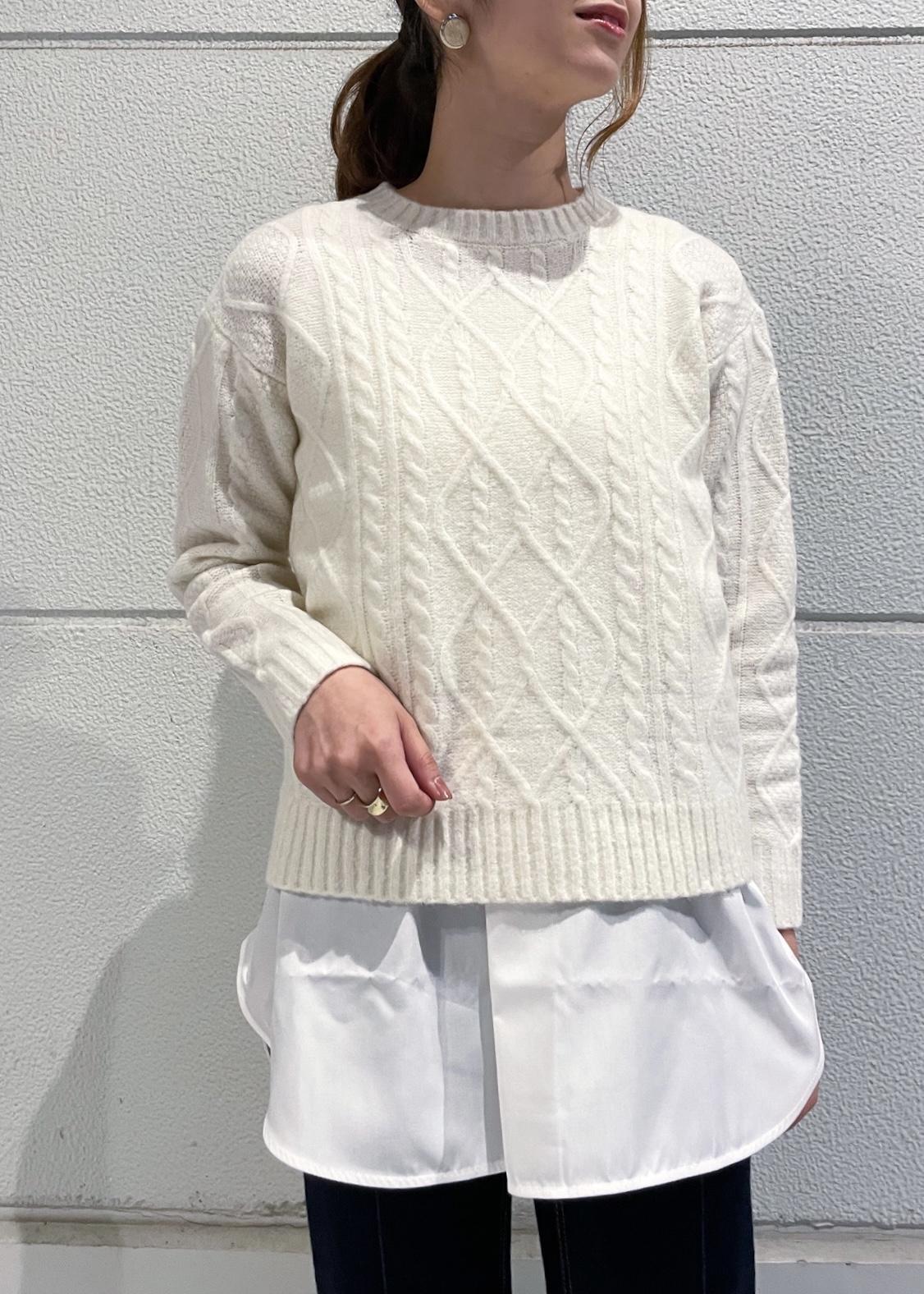 トップスは、ニットとノースリーブのインナーがセットになっていて簡単にレイヤードスタイルが完成!