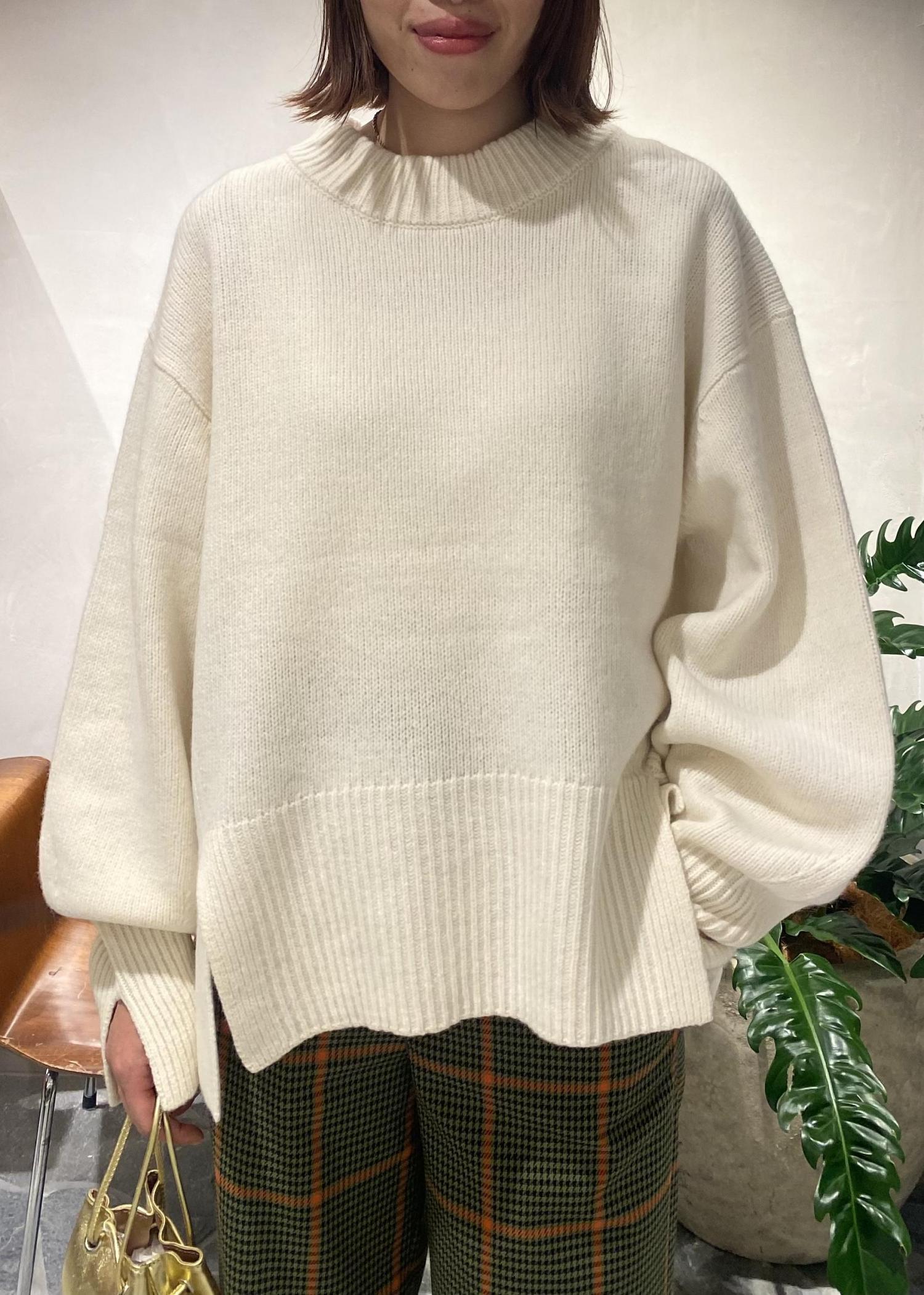 ウールカシミアニットは暖かさ、着心地の良さが抜群のアイテム。程よいゆとりと丸みのあるフォルムがポイントです。