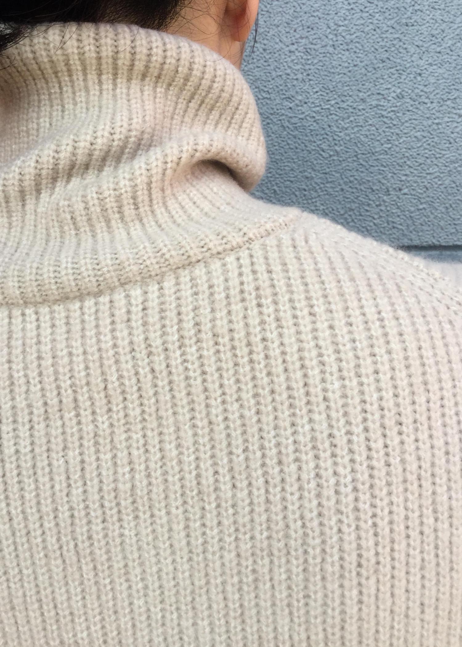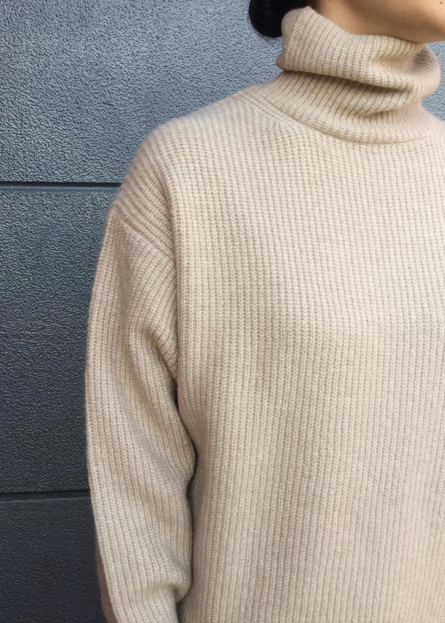 弾力のあるふっくらとした素材が魅力的なタートルニット。ウール混の素材で寒くなる季節にも暖かく過ごせます。