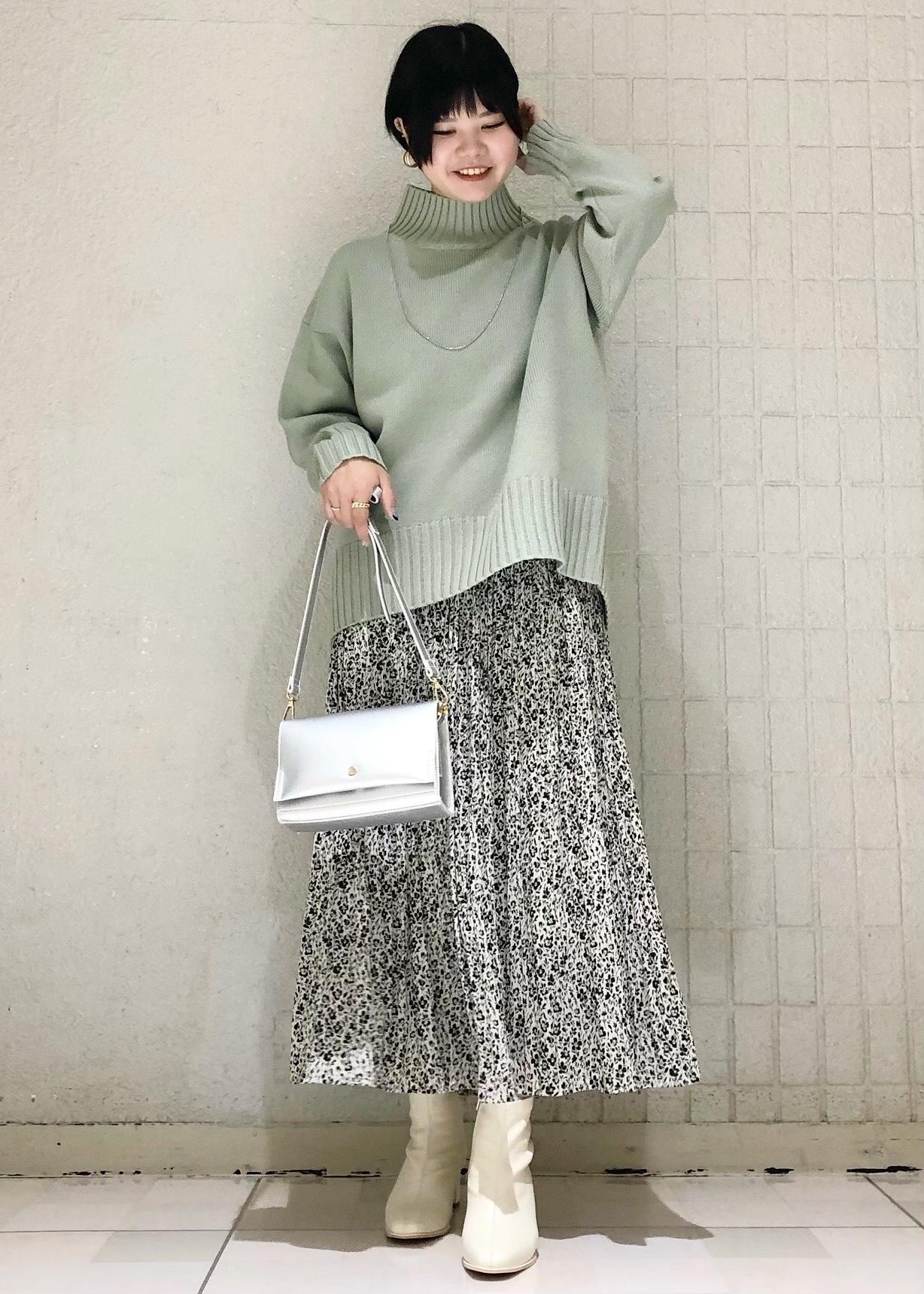 人気のバッグスリットニットから新色が出たので、そのカラーを使用したスタイリングを考えました♡