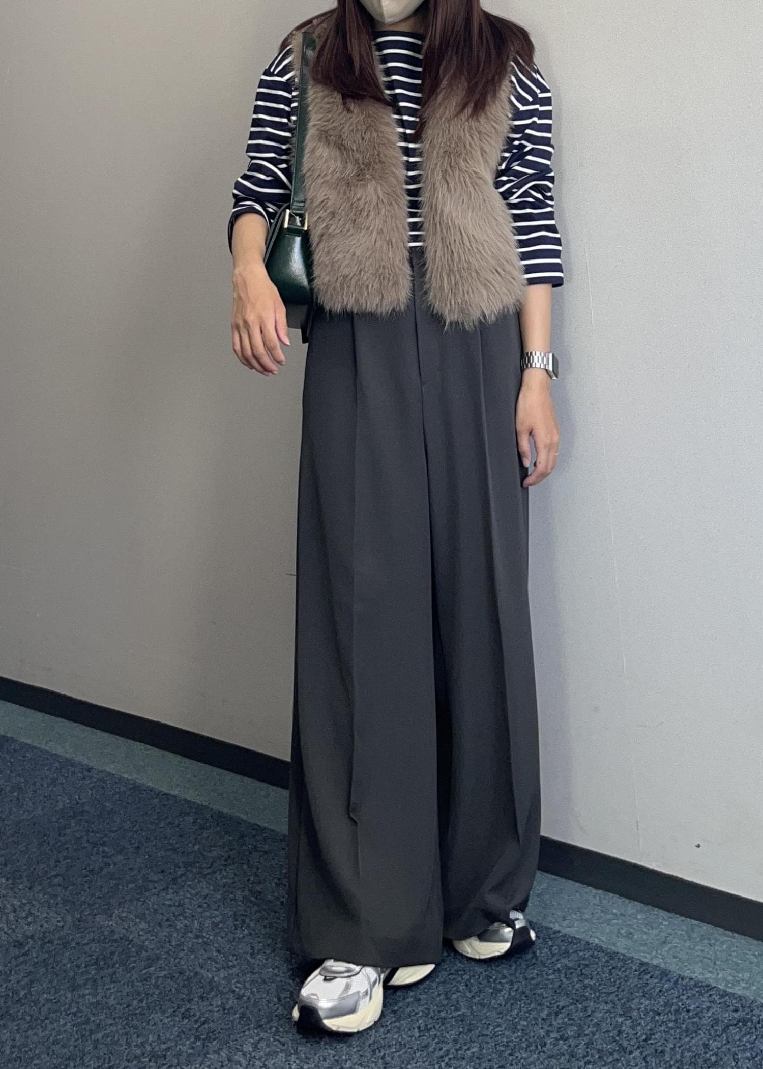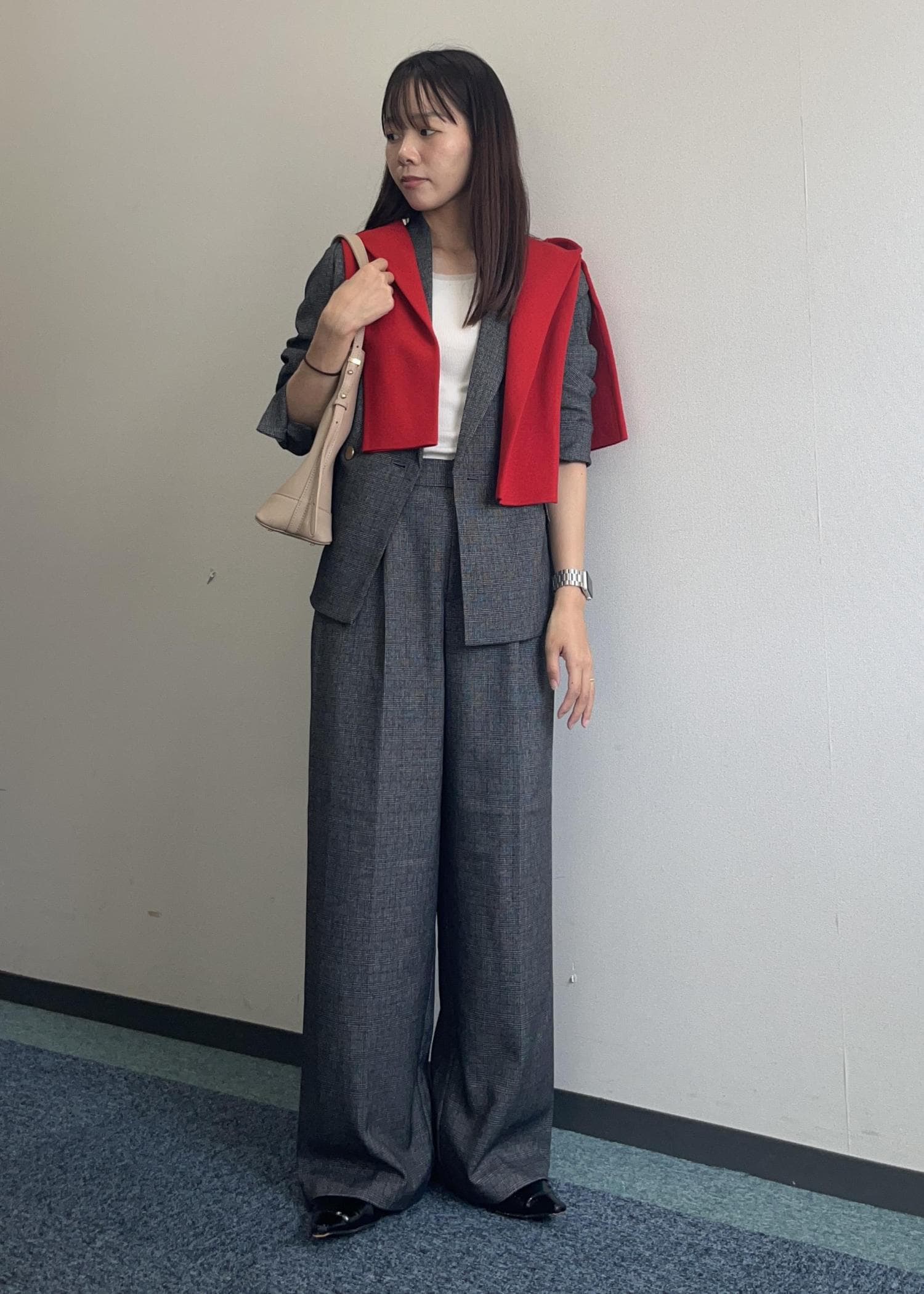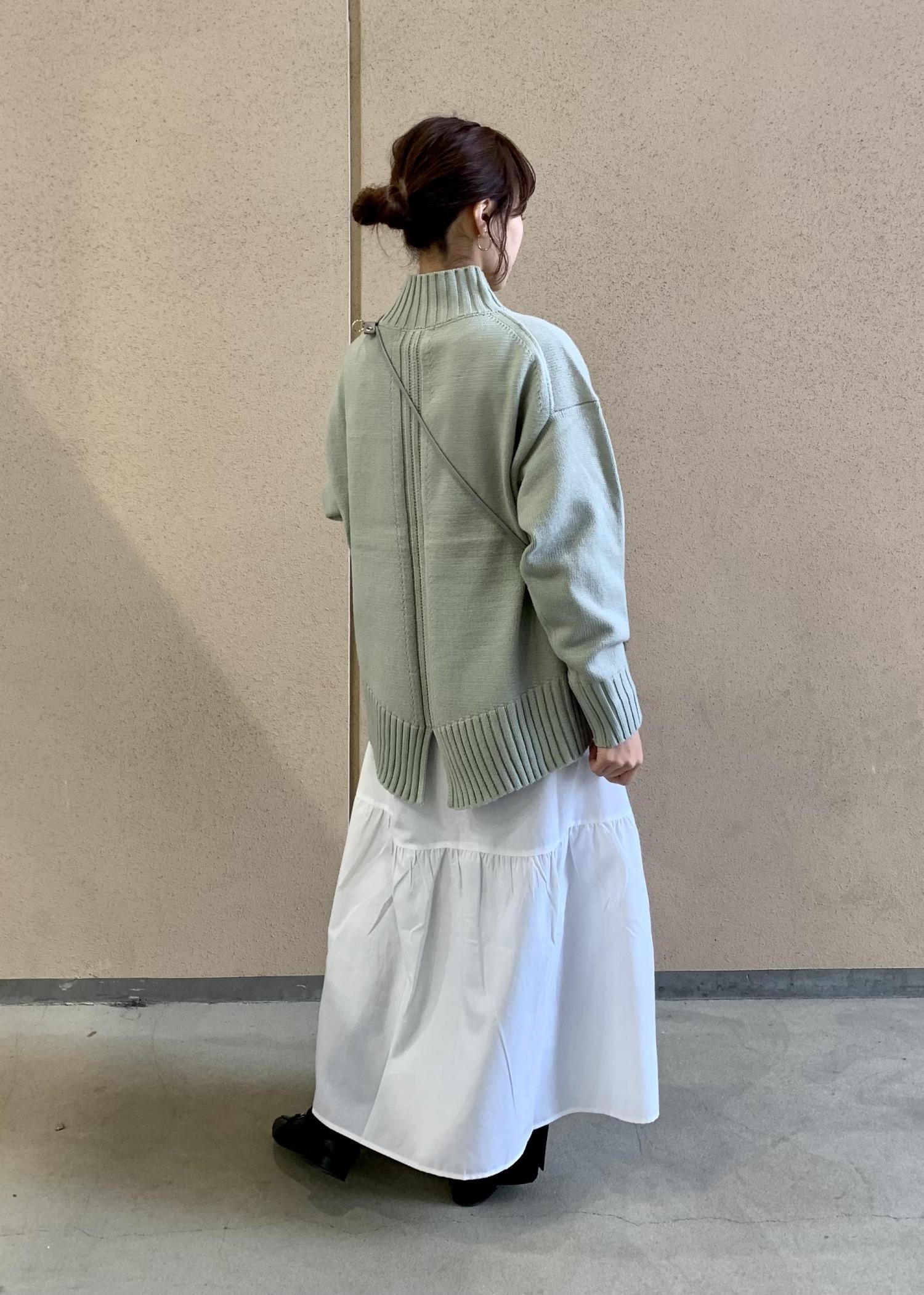 今回あえてニットベストを使わず、大人気のバックスリットニットを