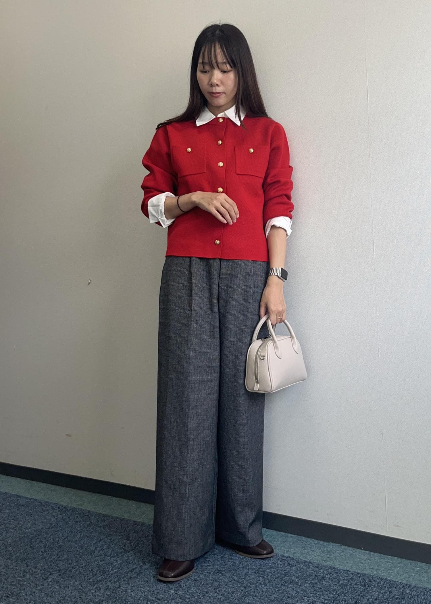 お持ちのニットを合わせて頂けると思うので色々な着回しが出来ますよ♡