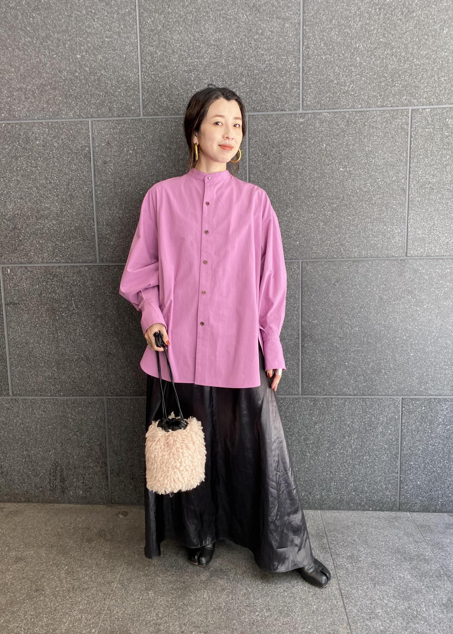 パンツはウエスト部分を折っても、折らずにハイウエストとしても着られて、雰囲気が変わりオススメです◎