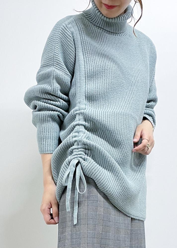 ニットはグリーンを着用しておりますが、画像のようなライトブルーに近い色味になっています!