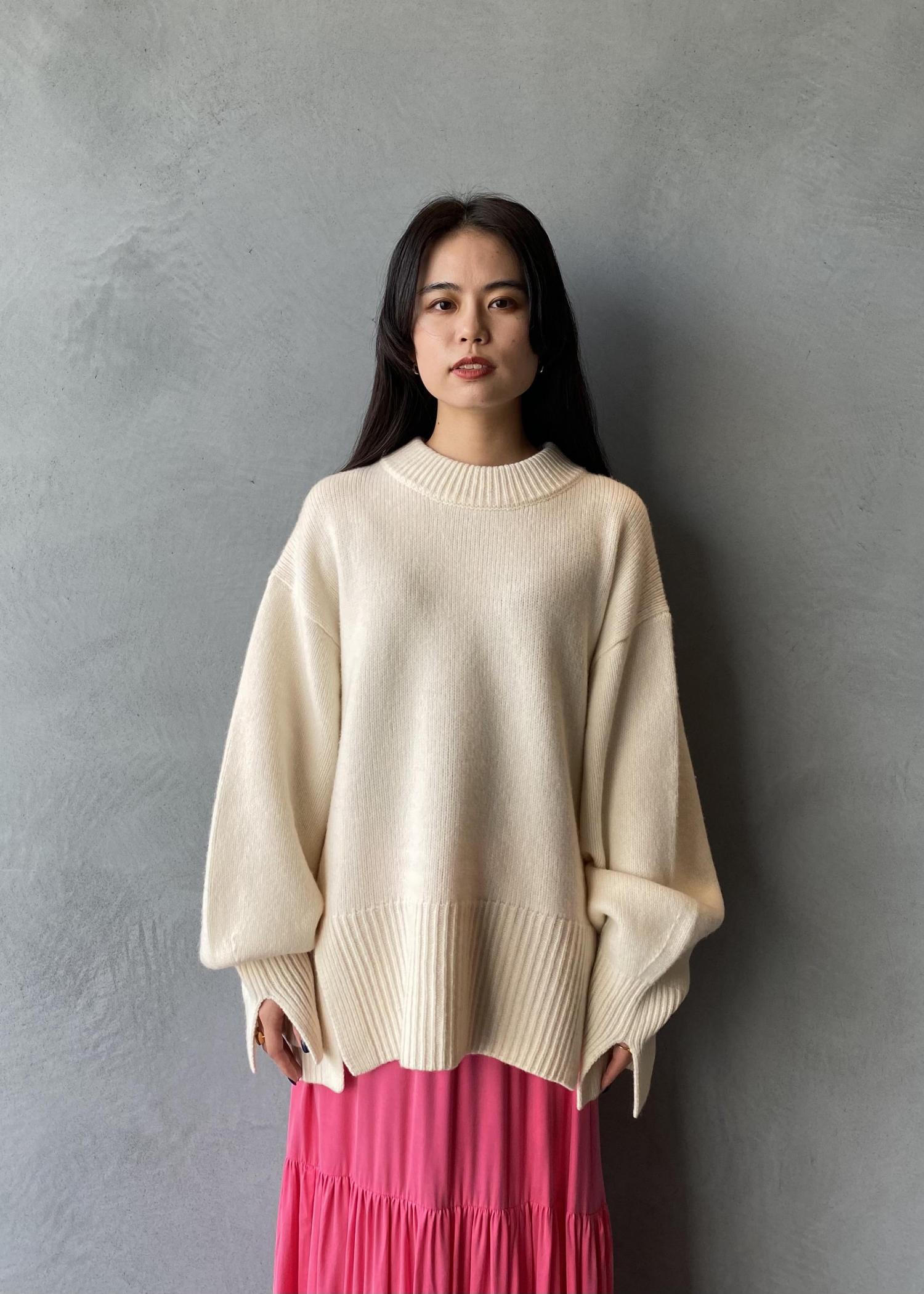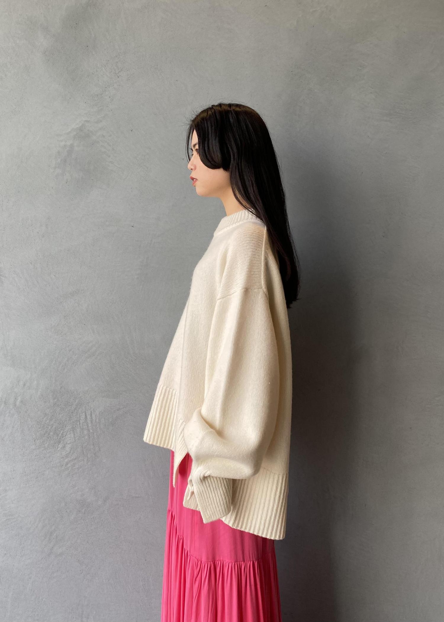 編み地が内側に入っているため、オーバーサイズでも着膨れ感なく見せてくれます。袖のスリットもワンポイントです!