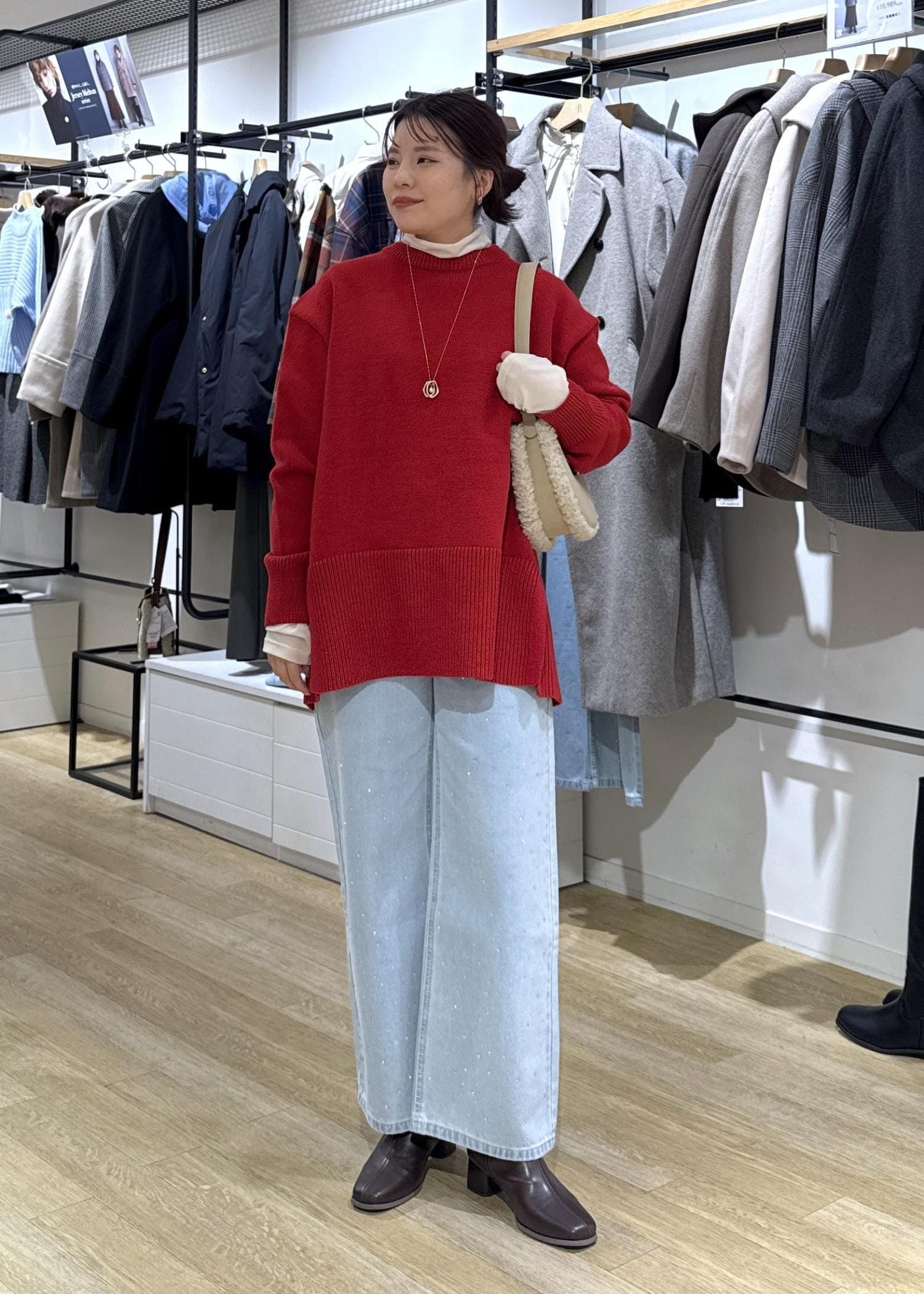 トレンドのボアコートを合わせた、今年らしいスタイリング。
