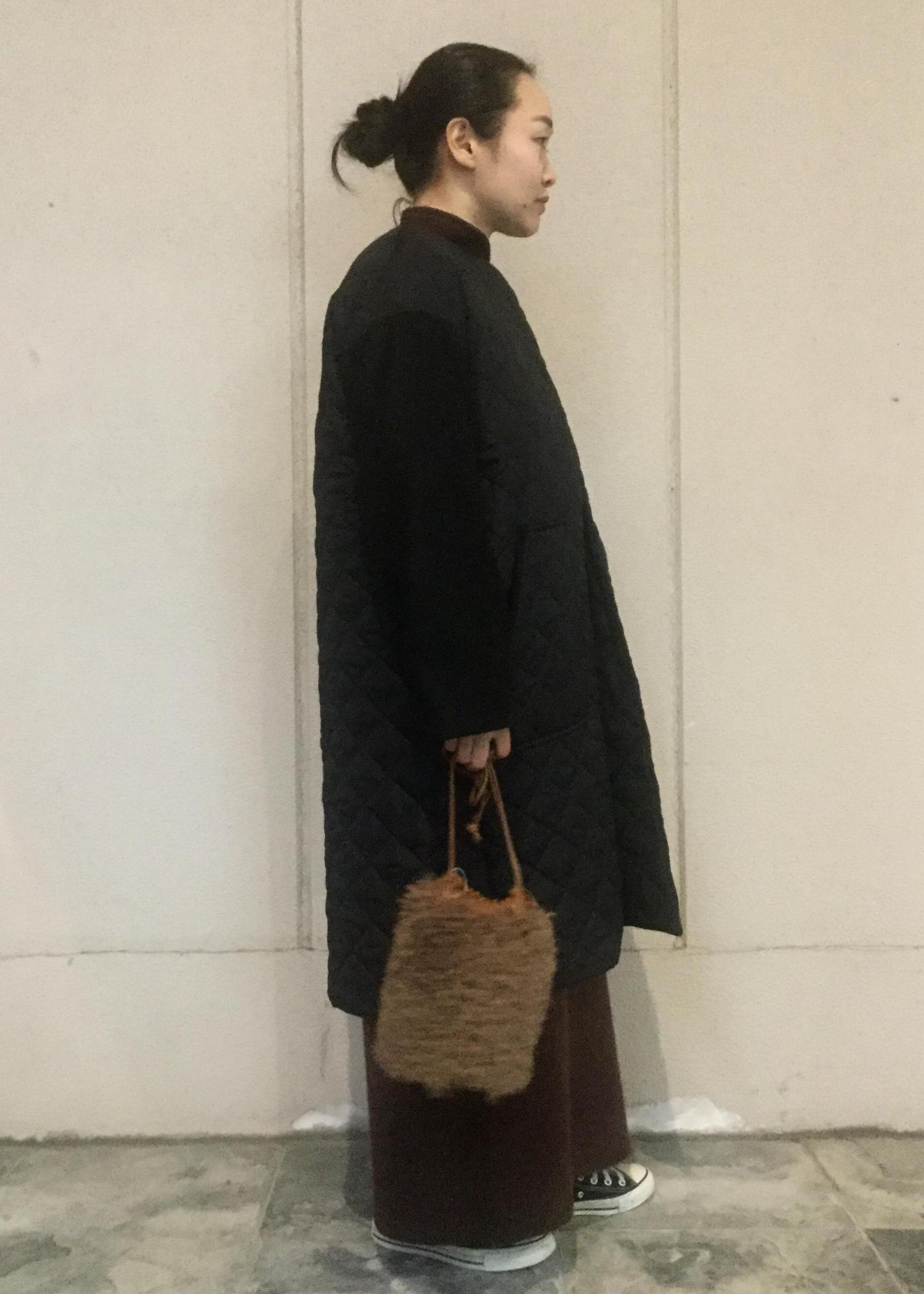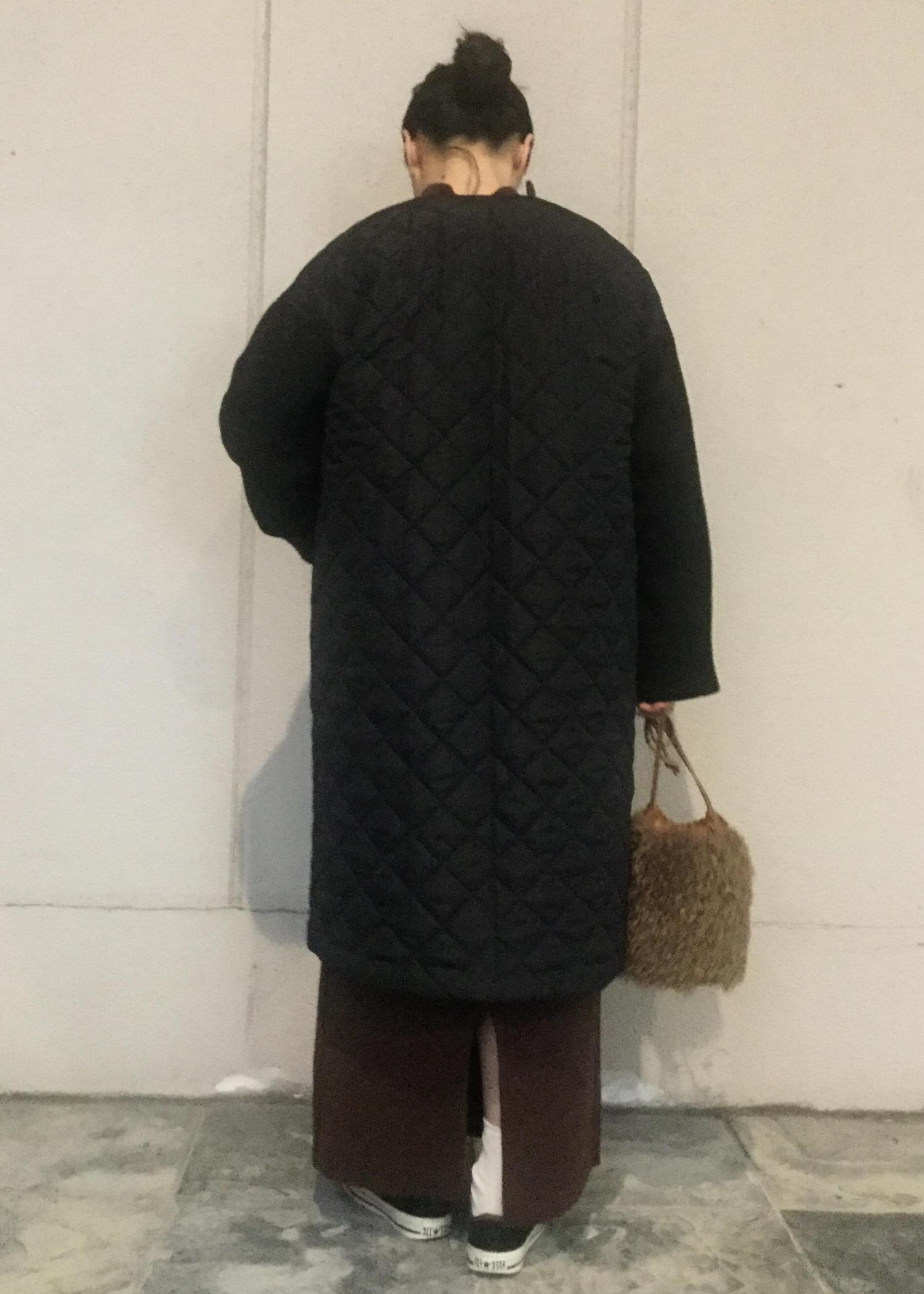 長めの丈感で暖かさもしっかりありつつ、軽い着心地はキルティングならではです。