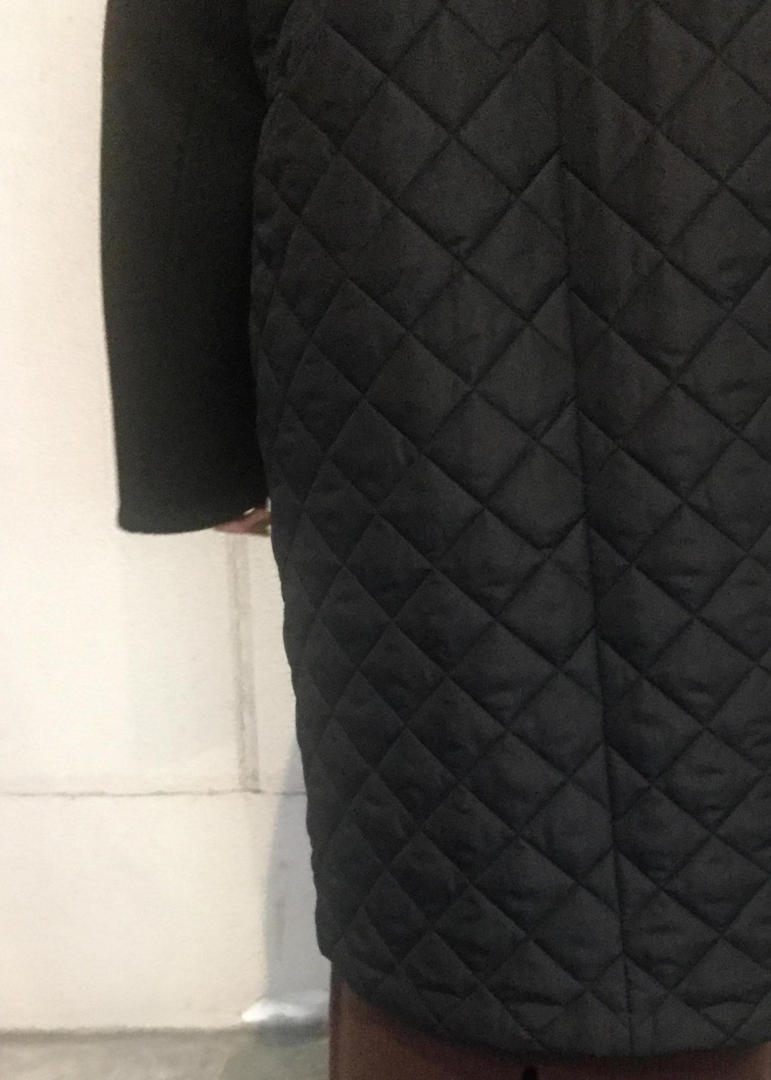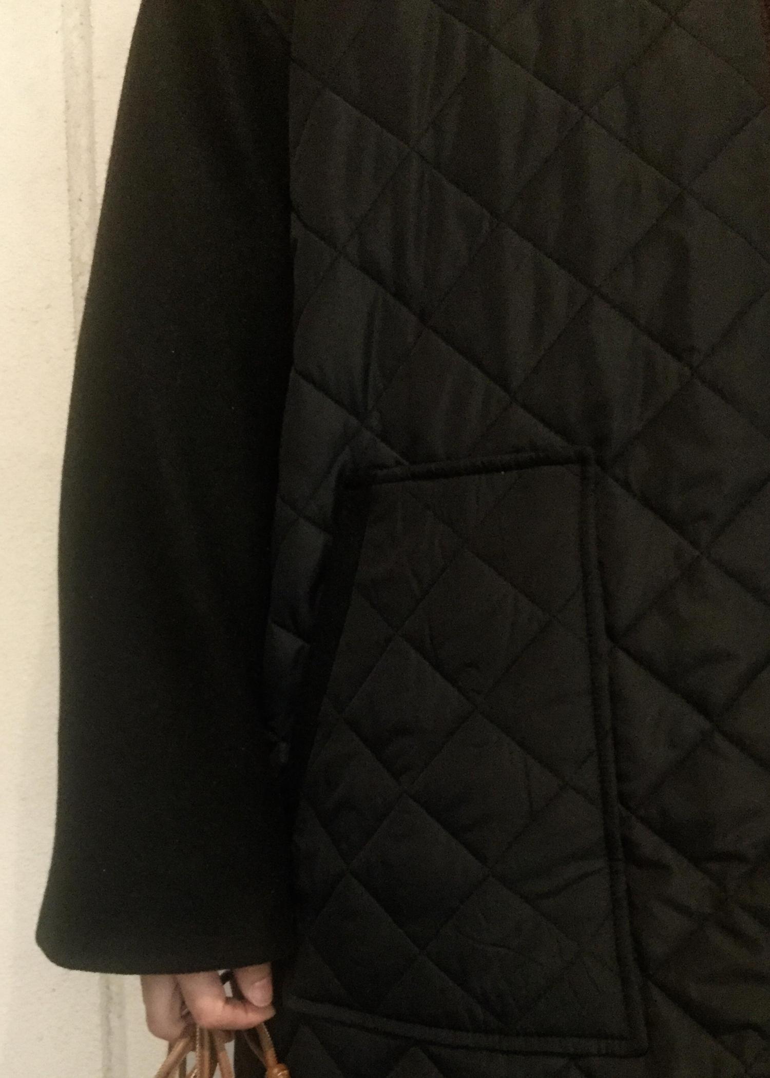 袖部分がメルトン素材の切り替えになったキルティングのロングコート。