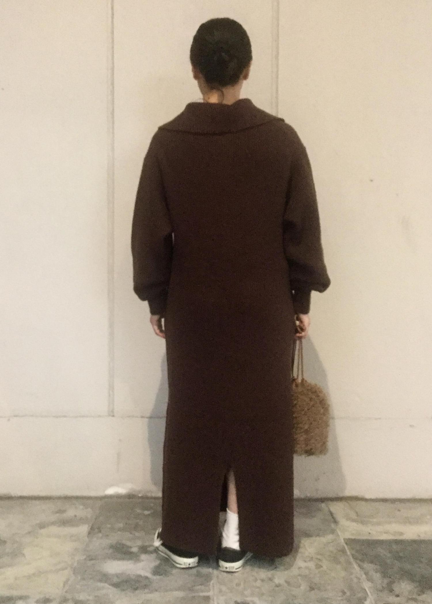 ニット素材で着やすいトレンドのセーラーカラーワンピース。