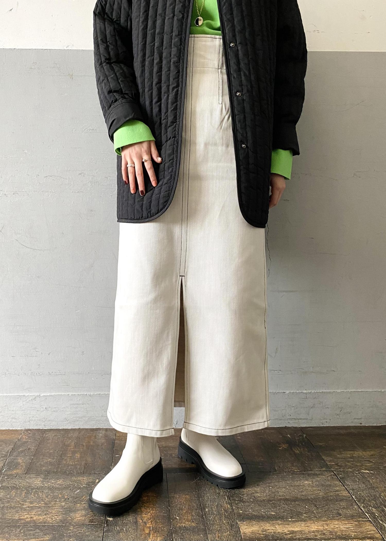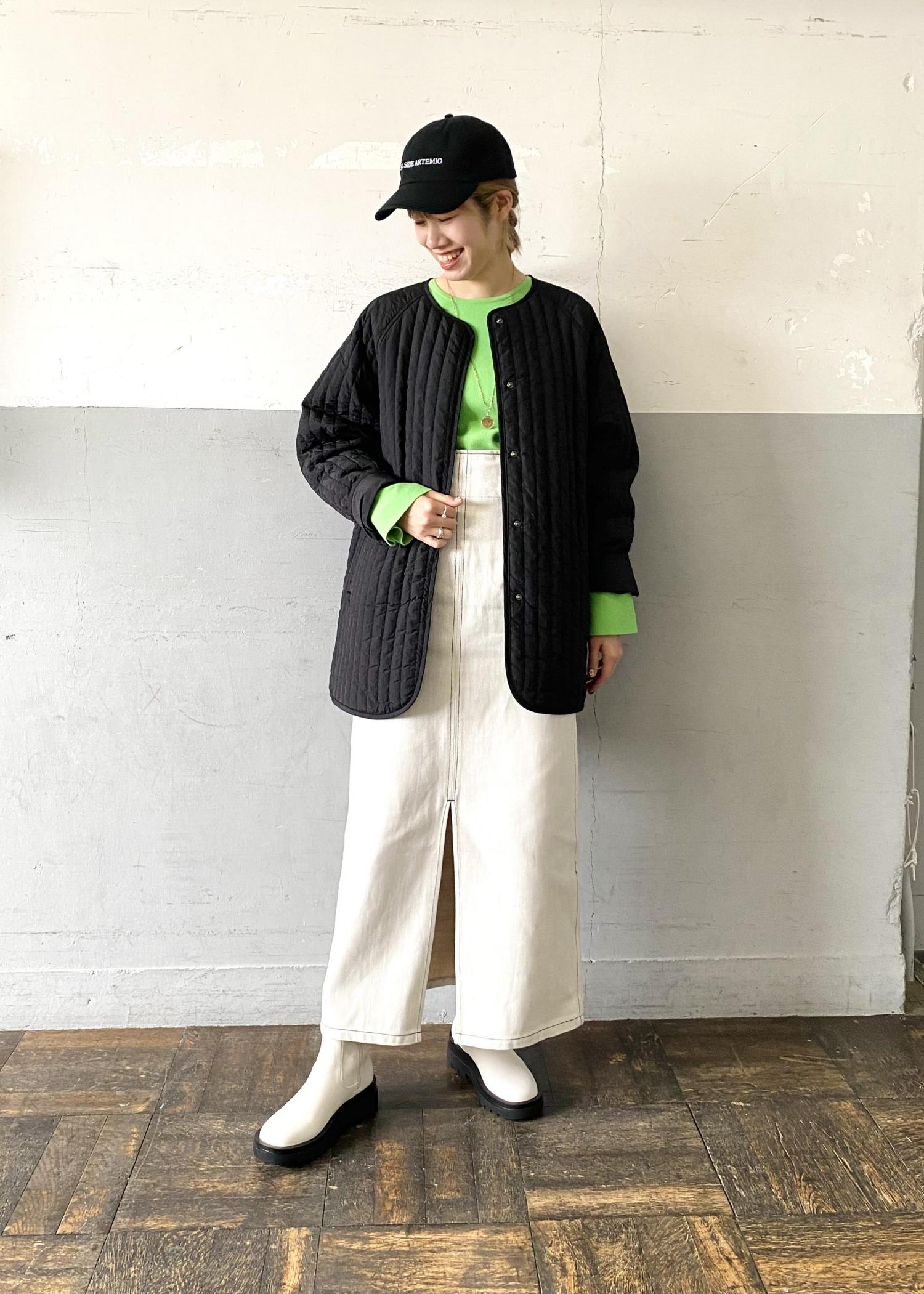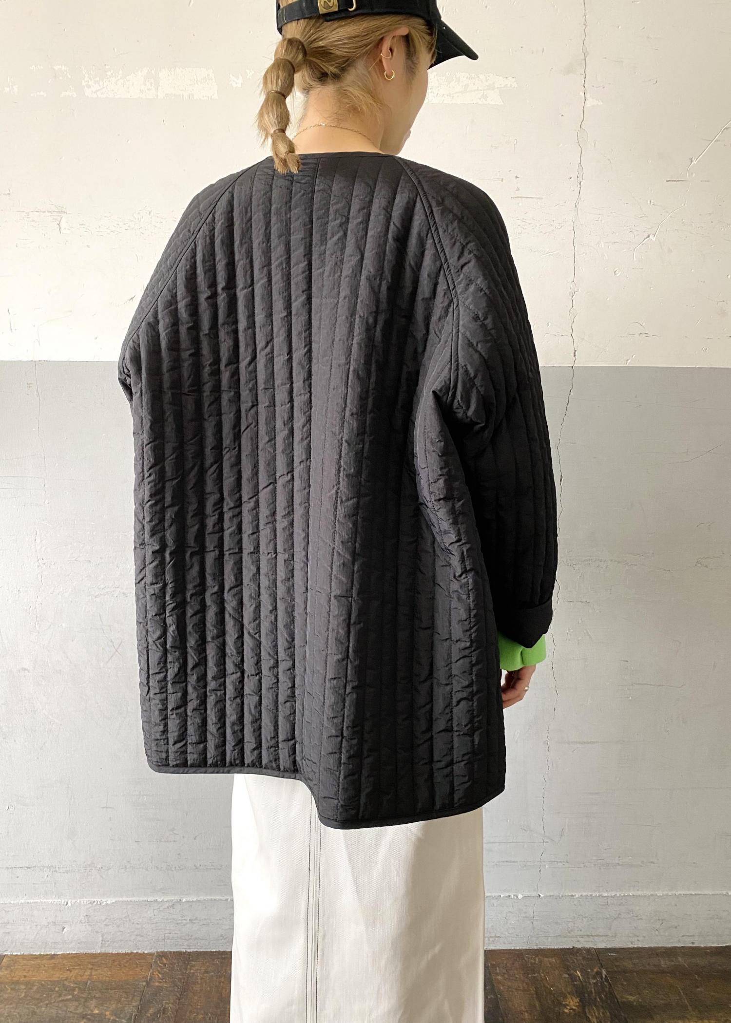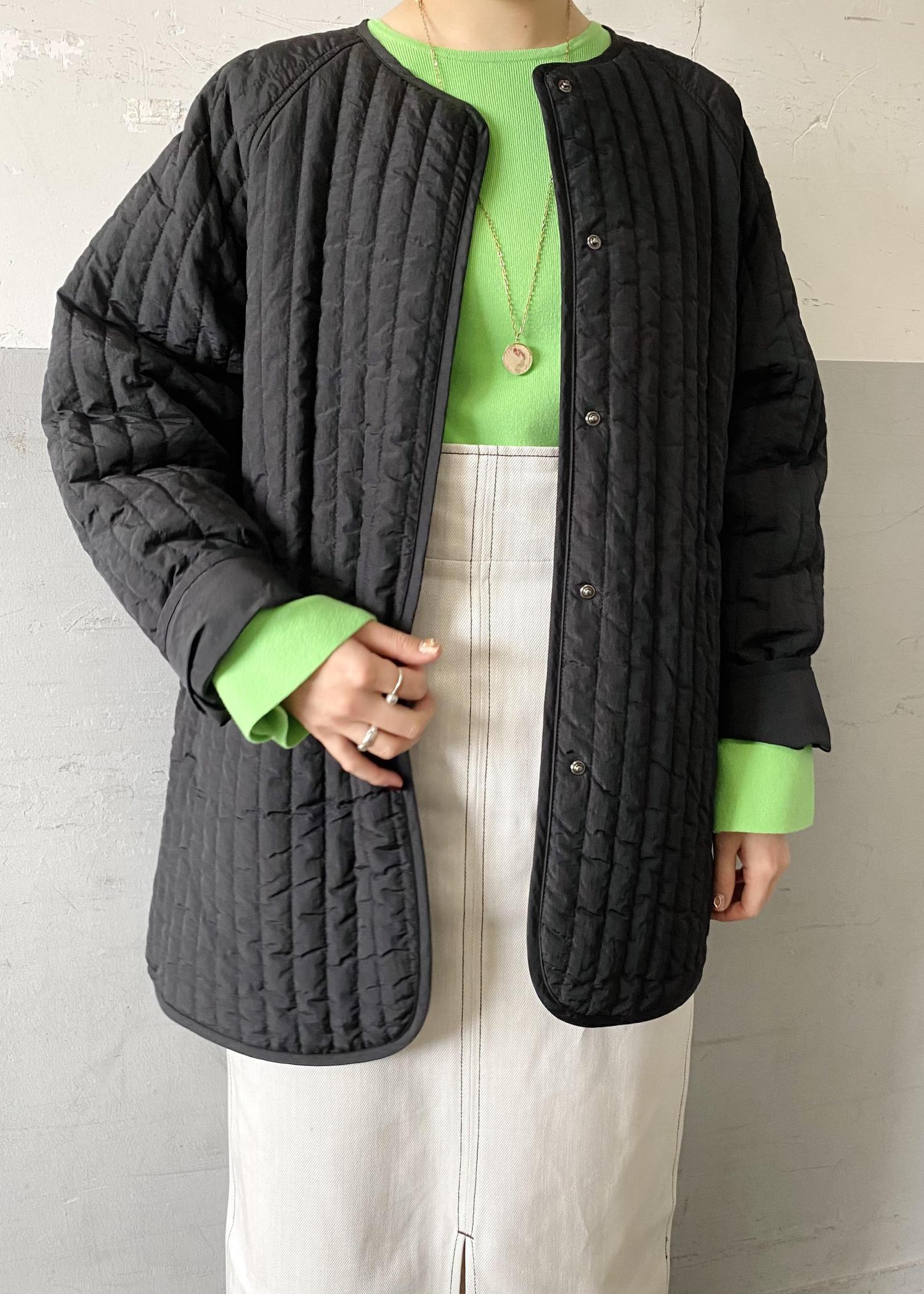 縦のキルティングになっており、一般的に多いヘチマキルティングよりも、スッキリとモードな印象に。