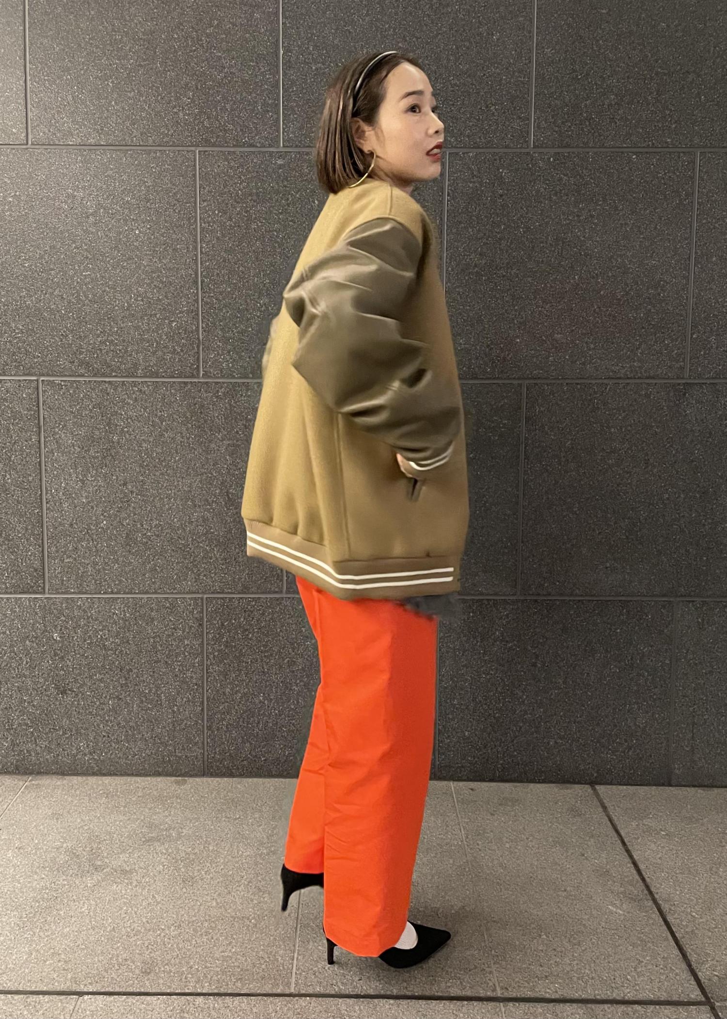 今回はオーバーサイズアワードジャケットに足元はヒールと大人カジュアルなスタイリングにしました!