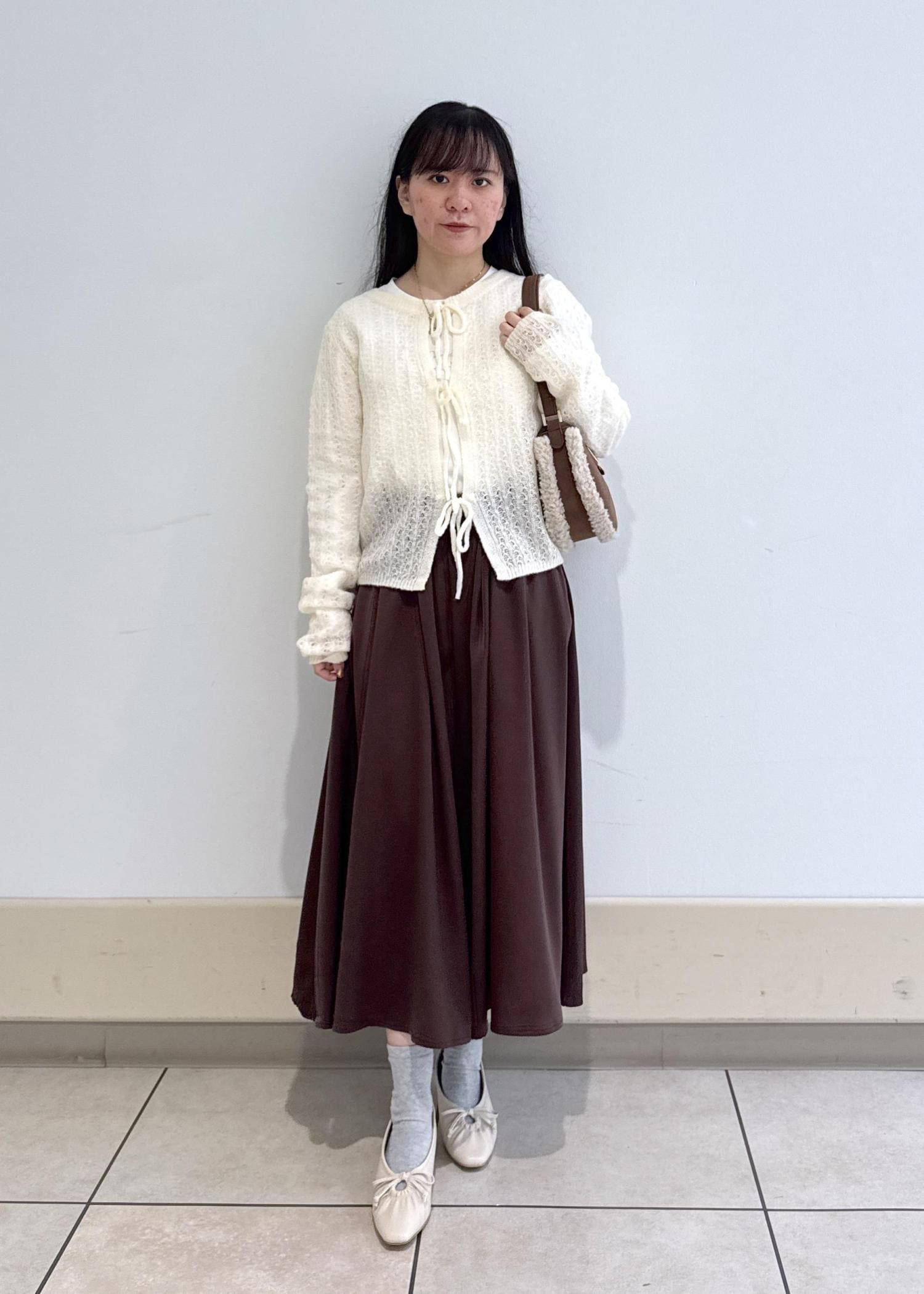 冬人気のノルディック柄のカーディガン!ボタンを閉めればトップスで使えてさらに前後2wayでお使いいただけます!楊柳スカートを合わせてカジュアルになりすぎず、女性らしさをプラスしました!