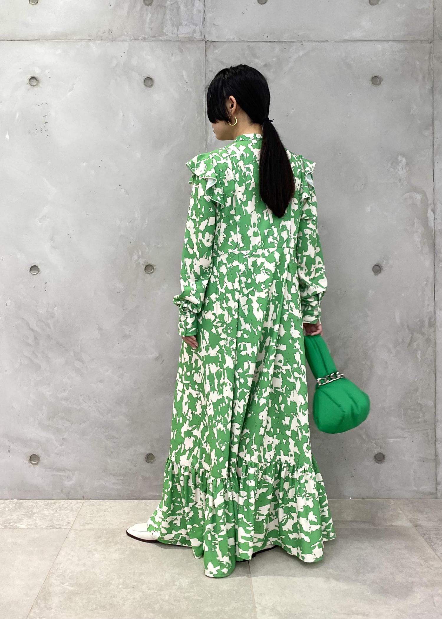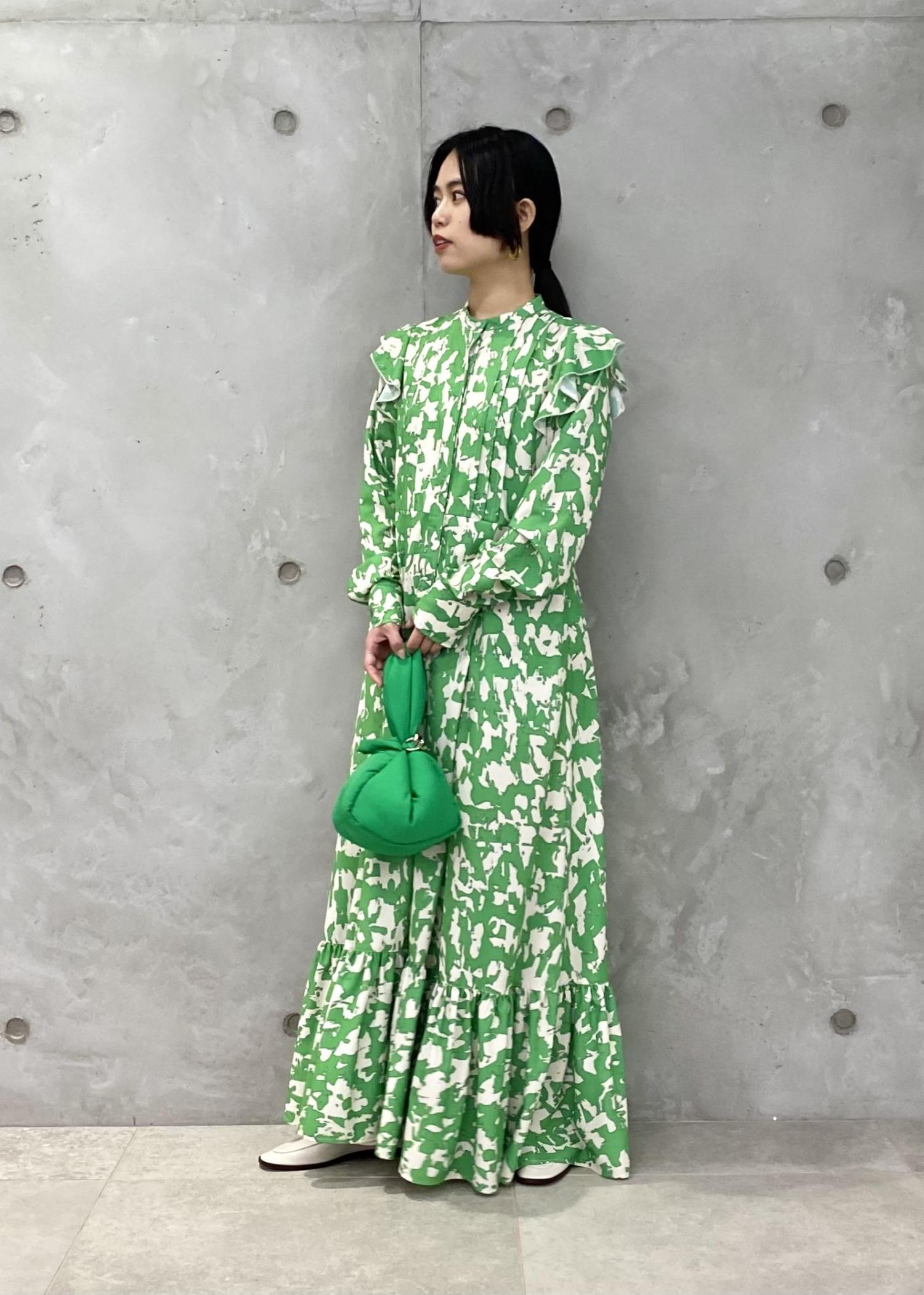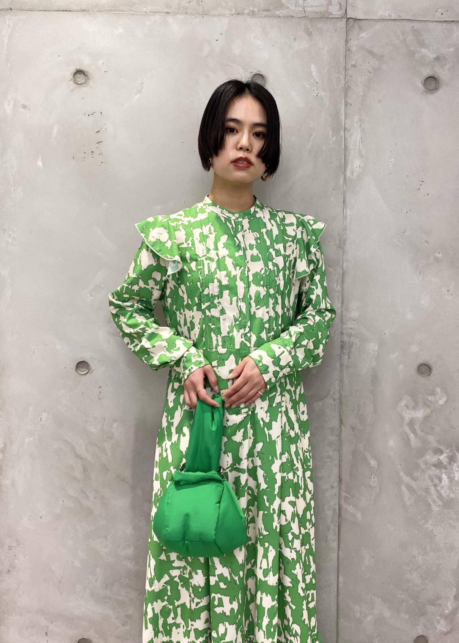 ランダムな柄が、フェミニン過ぎず爽やかな印象です。