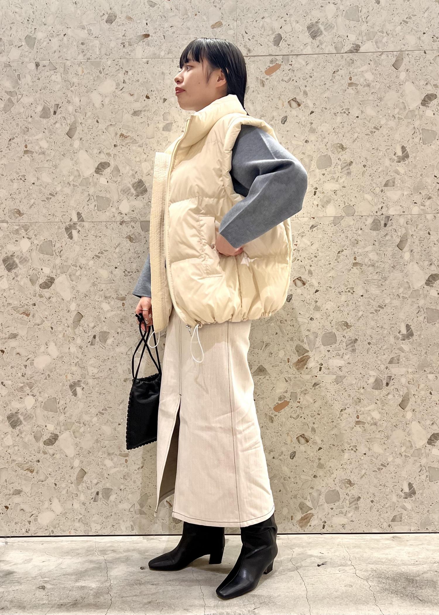 実は袖付きのショートブルゾンになっており、今回は袖を外してダウンベストとして着用してみました☺︎