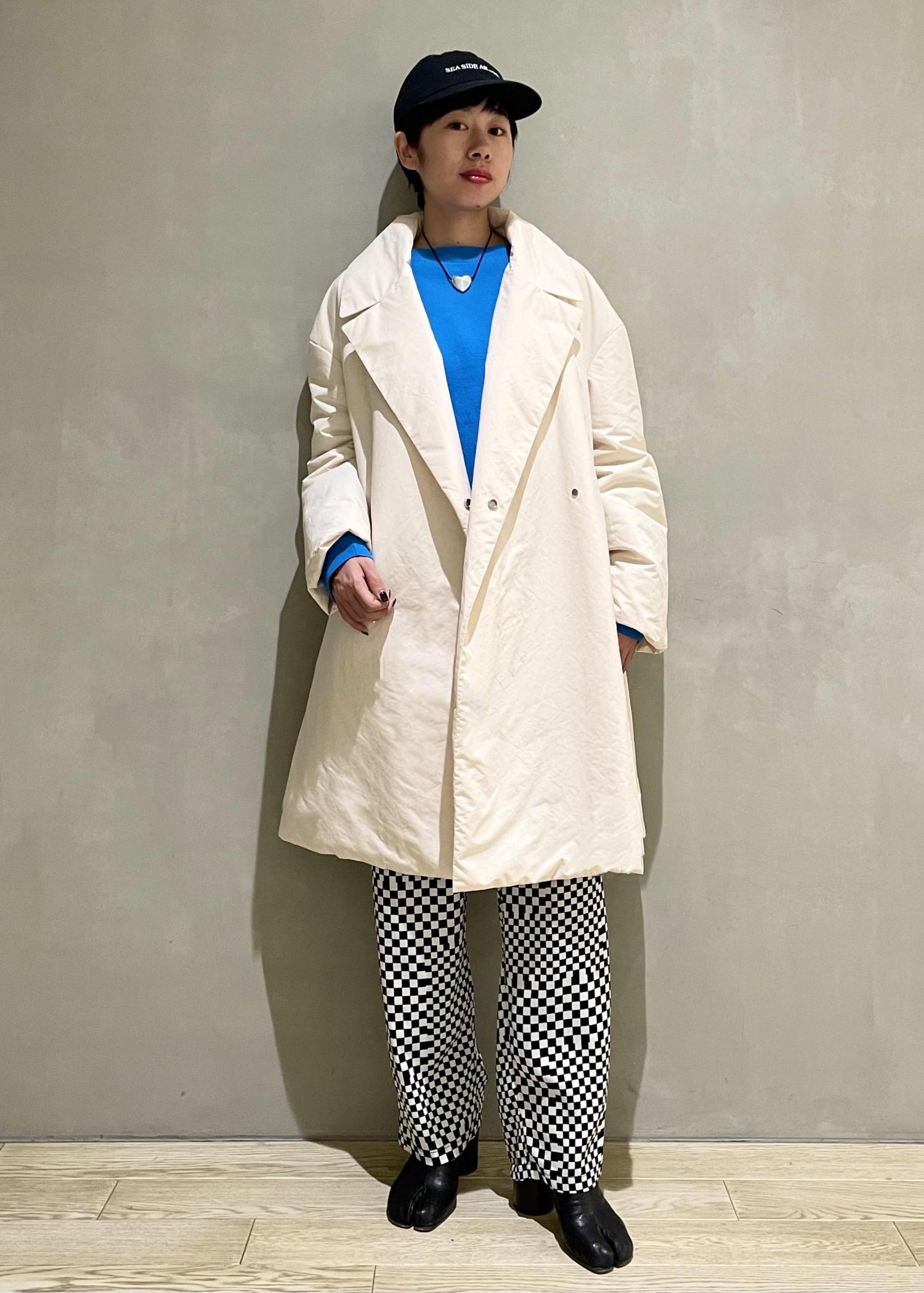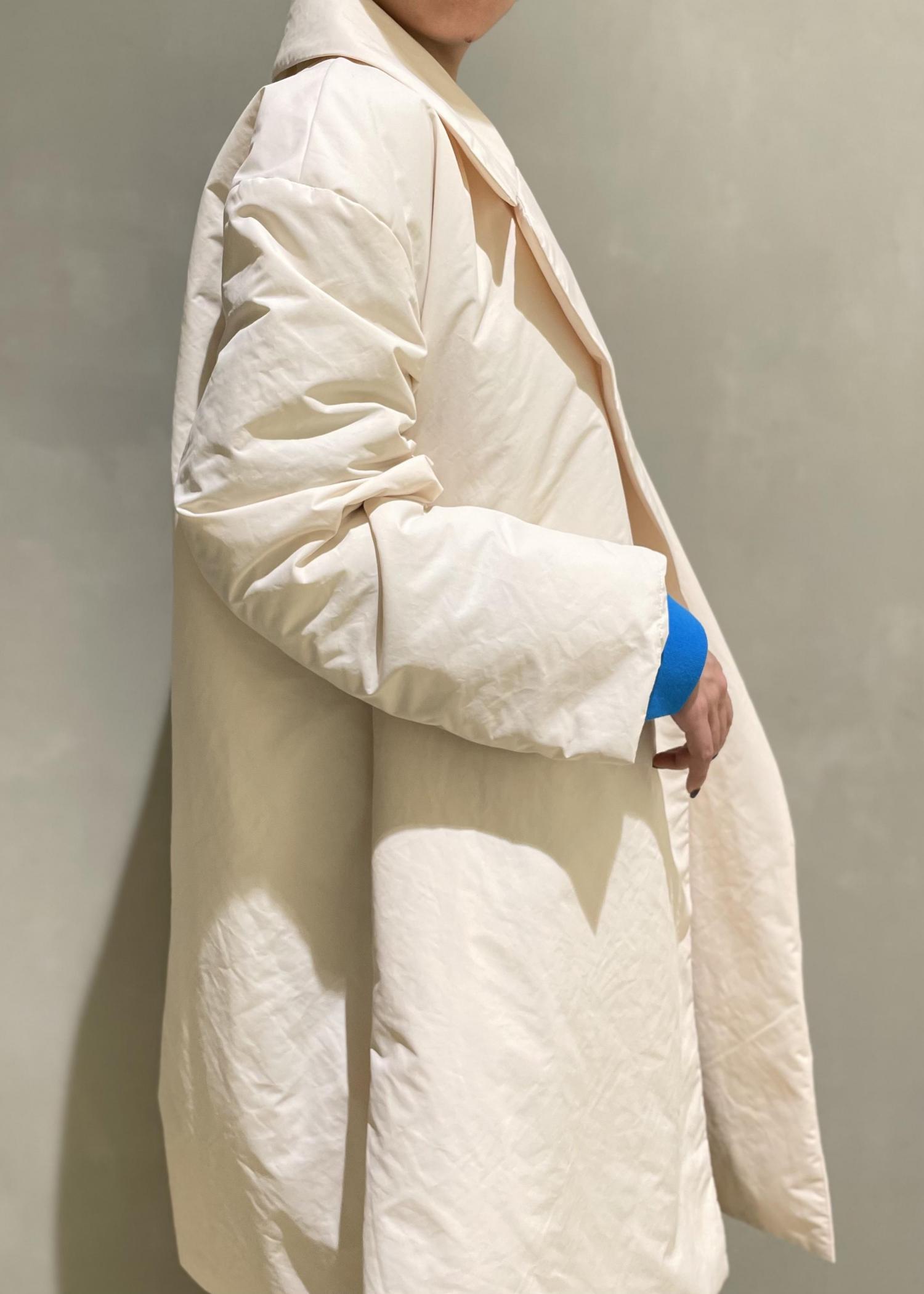 使用している中綿Thermore(サーモア)は、ペットボトルを再生して作られたリサイクル繊維を50%使用し、環境に配慮した繊維素材。空気を繊維の間に閉じ込めることで温かさを保つという、保温性の高い特殊な仕上げ加工をしており、薄手で軽く、やわらかくて暖かいのが特徴。