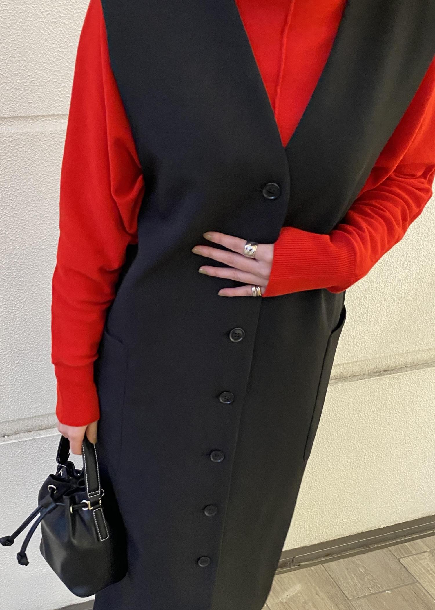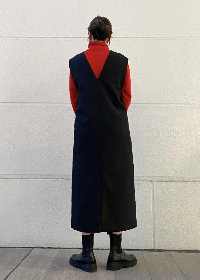 ボタンを開けて、ロングベストのように着用いただくと