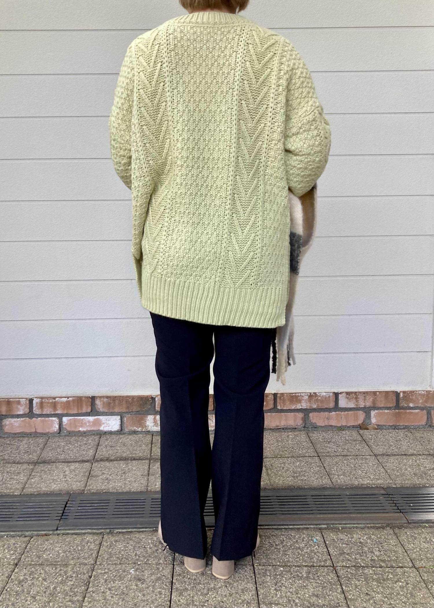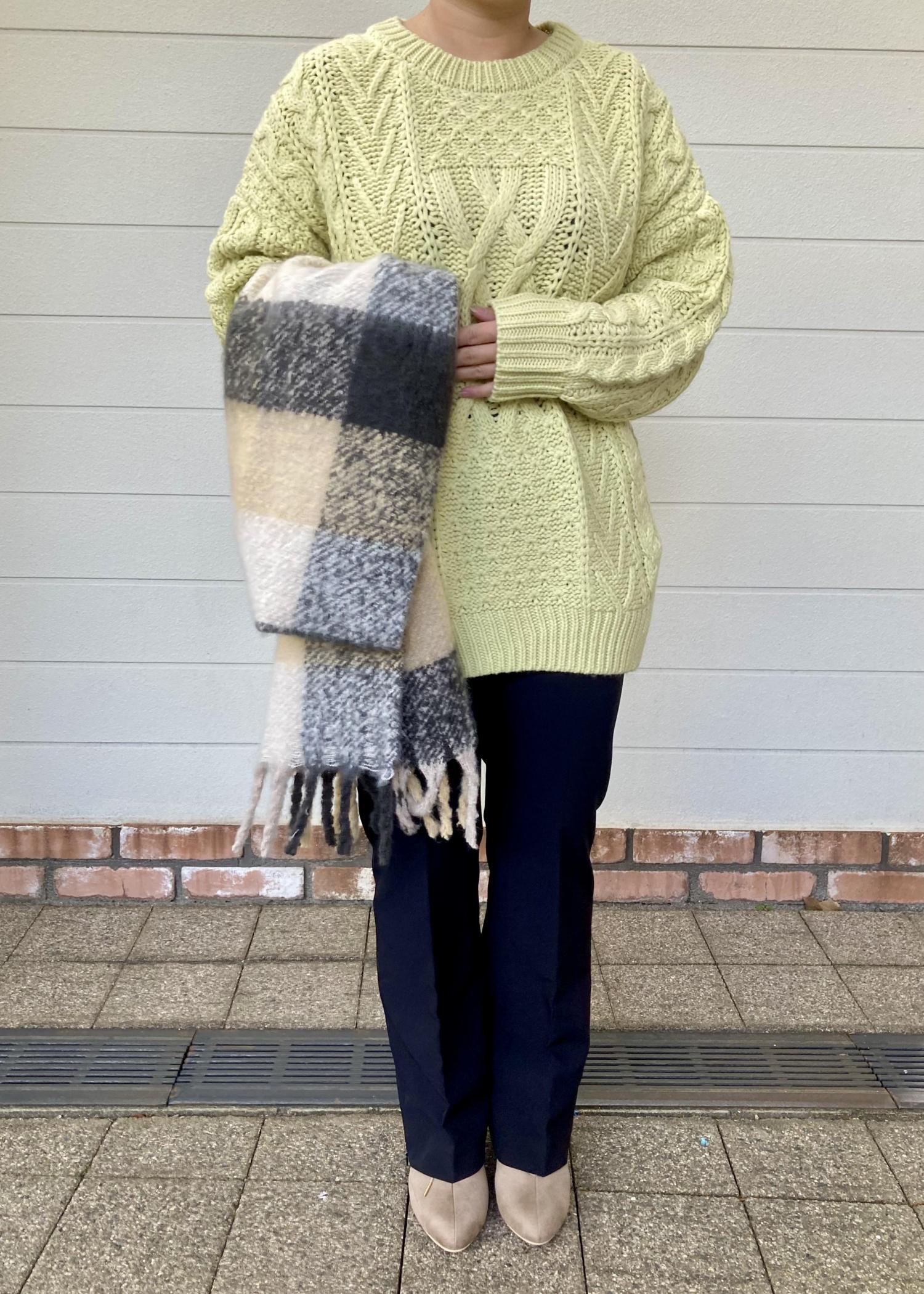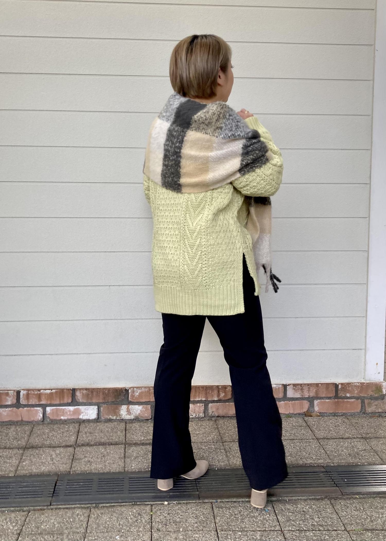 ニットはゆったりとしたサイズ感と丈感なのでパンツですっきりとさせました。