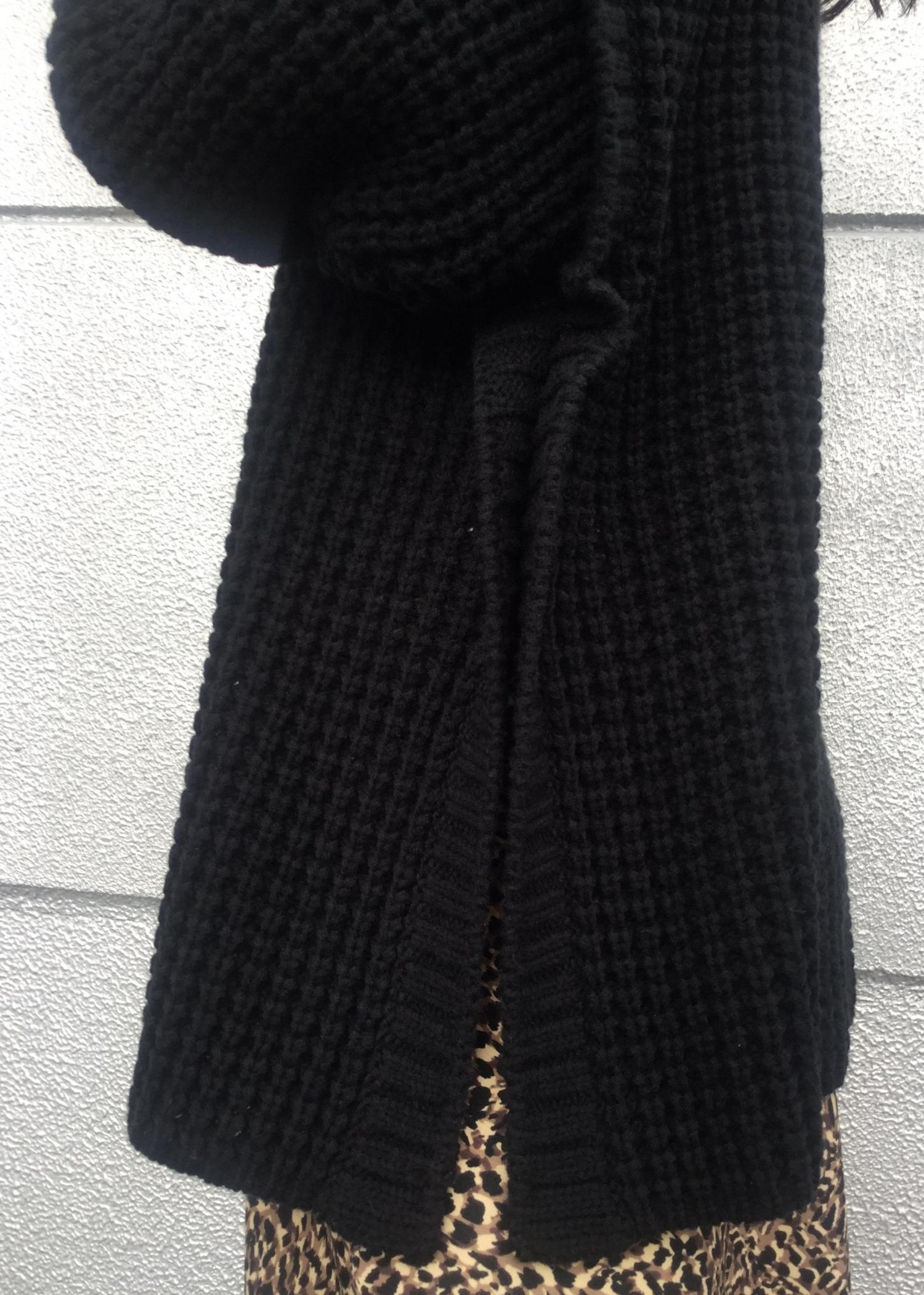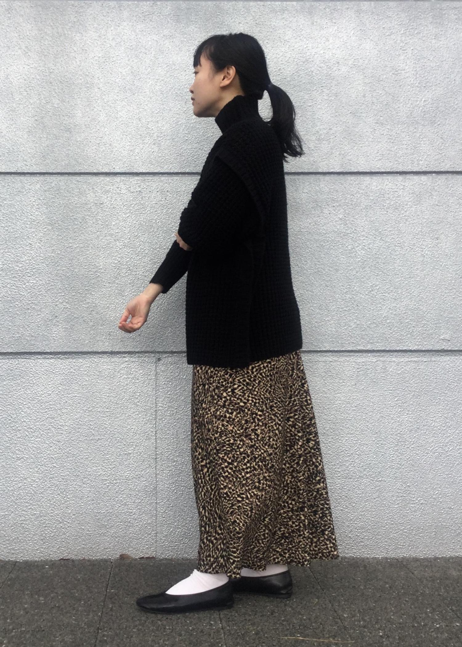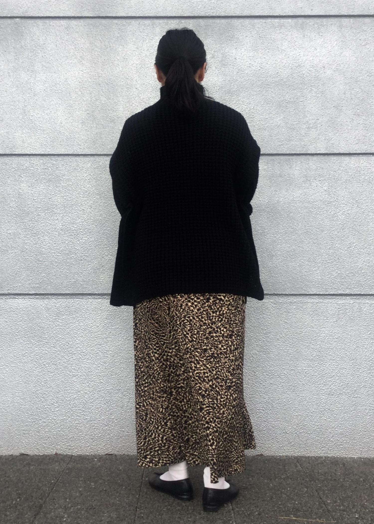 ゆったりと着用できるサイズ感ですが、サイドのスリットなど抜け感もあり大人な印象です。