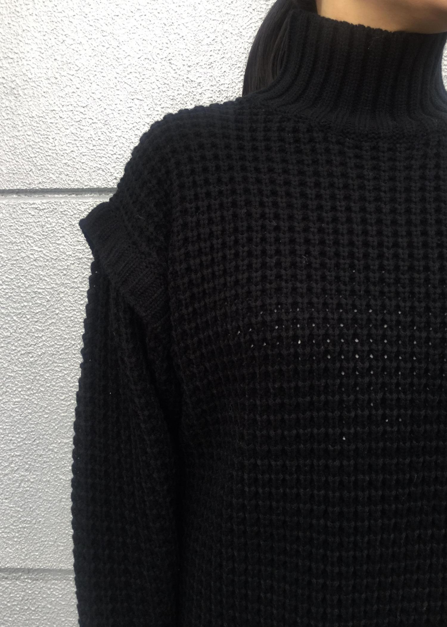 肩から裾にかけてリブが入ったデザインとなっており、アウターを脱いだ時にも可愛いニットとなっております。