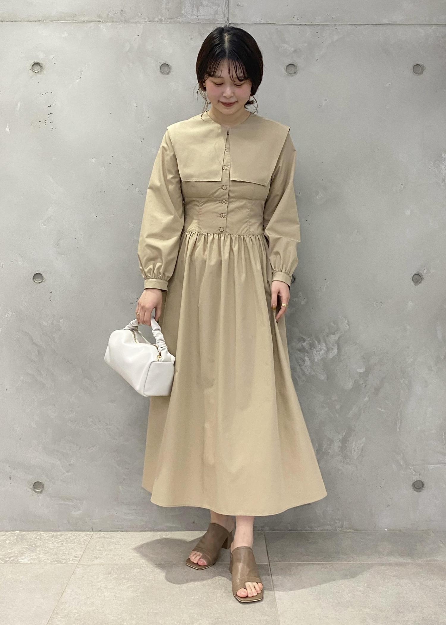春本番に着たい大人なベーシックワンピースは、セーラー衿が可愛らしさもありつつ、腰高なウエストデザインでスタイルUP間違いなし!