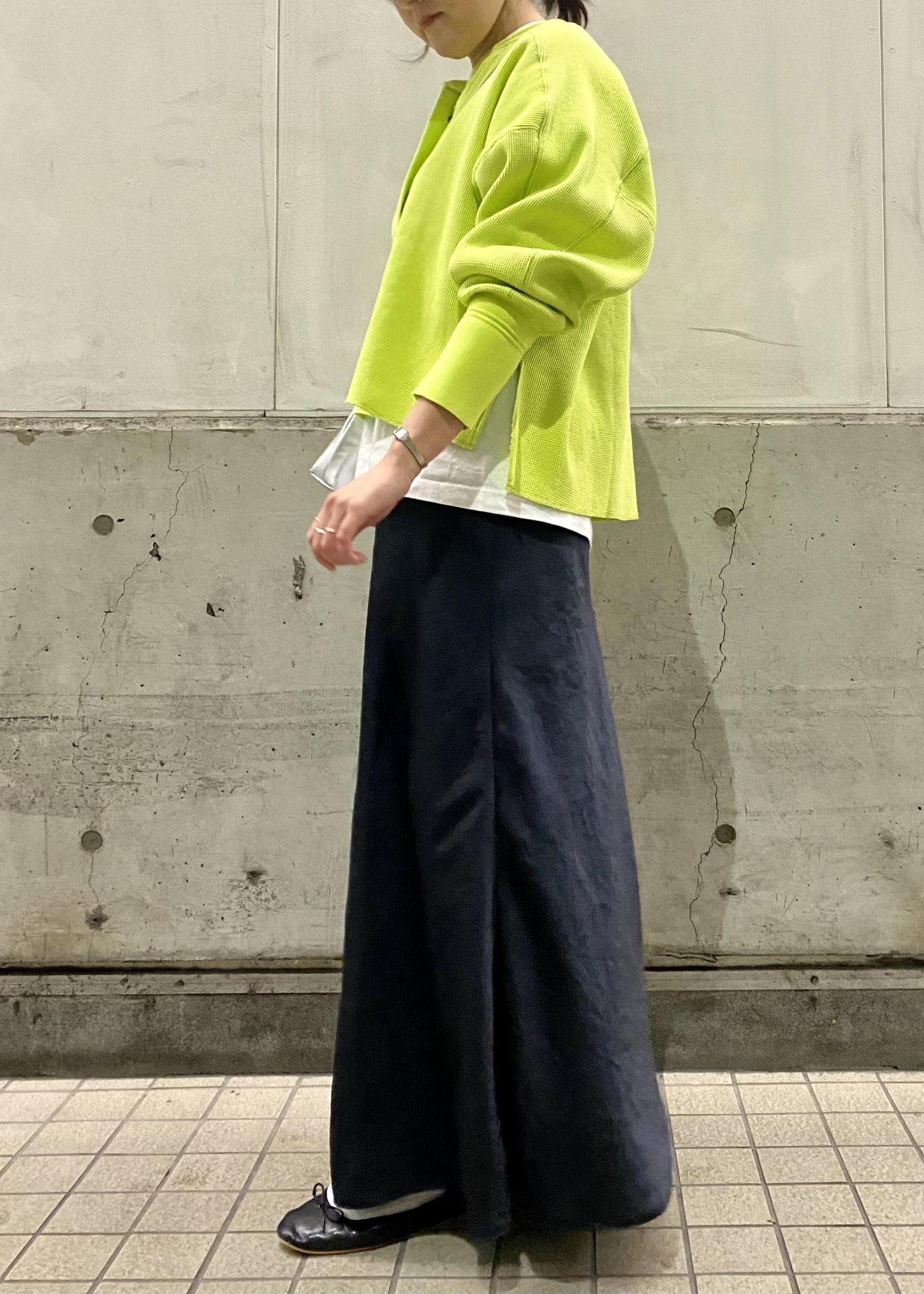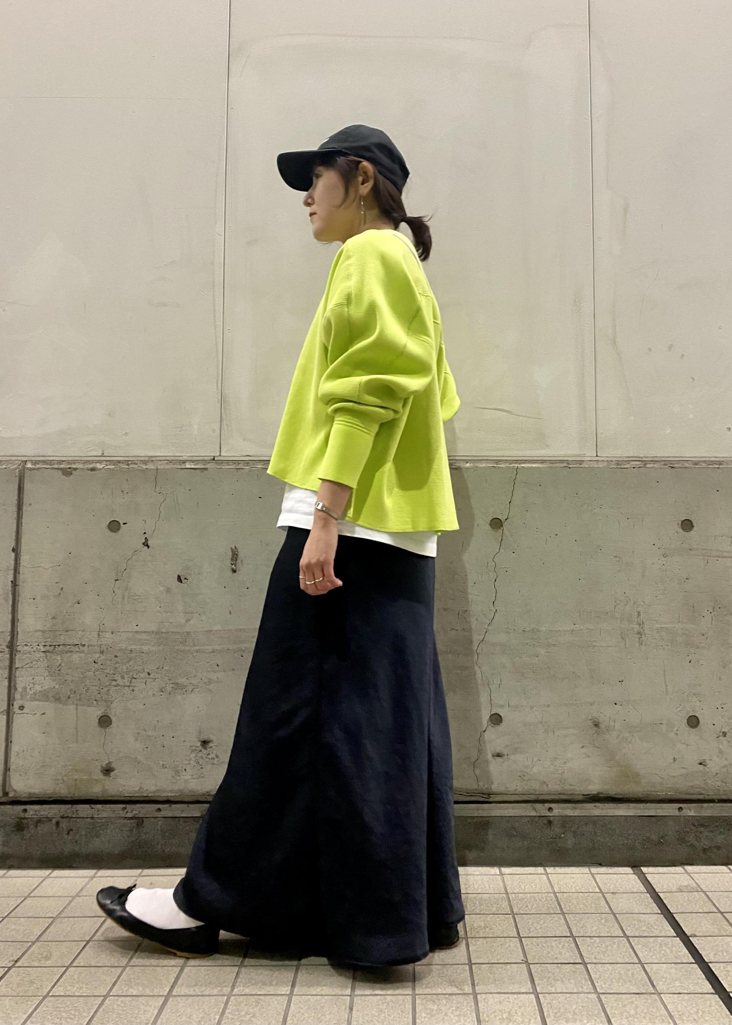 アダムエロぺの定番人気アイテム、マーメイドサテンスカートを合わせて、女性らしさもプラスしたスタイリングにしてみました。