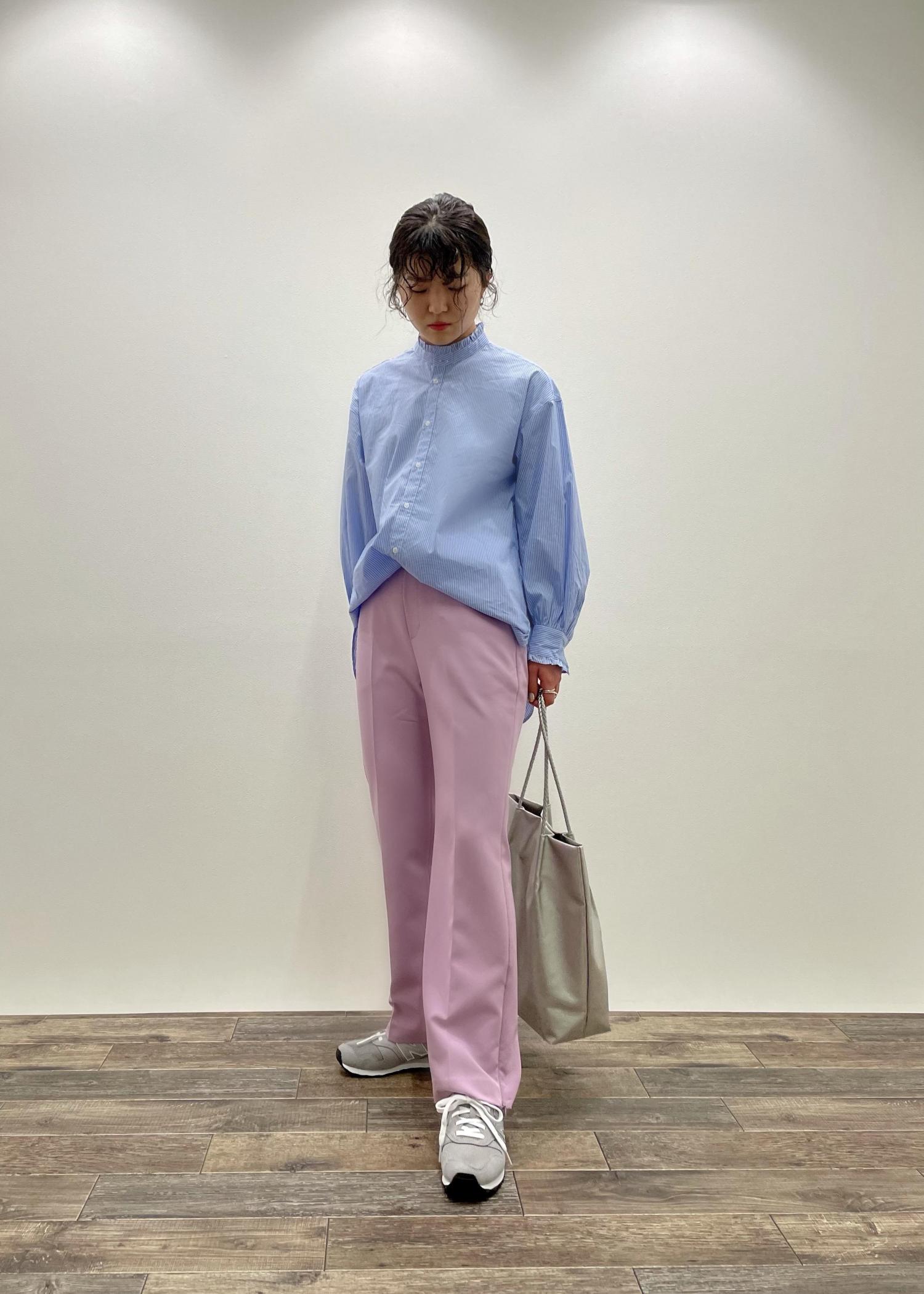 ブルー×ラベンダーの明るい春らしいコーディネートです。