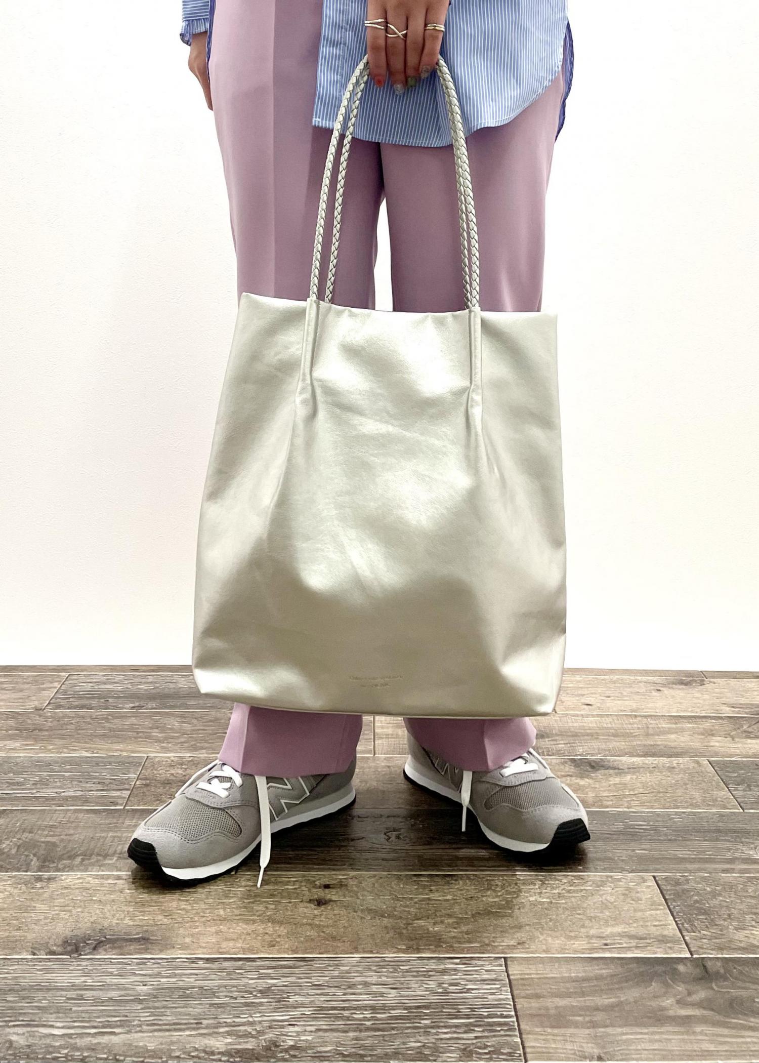 バッグとスニーカーをシルバーとグレーの似たトーンで合わせてまとまり感を出しました。