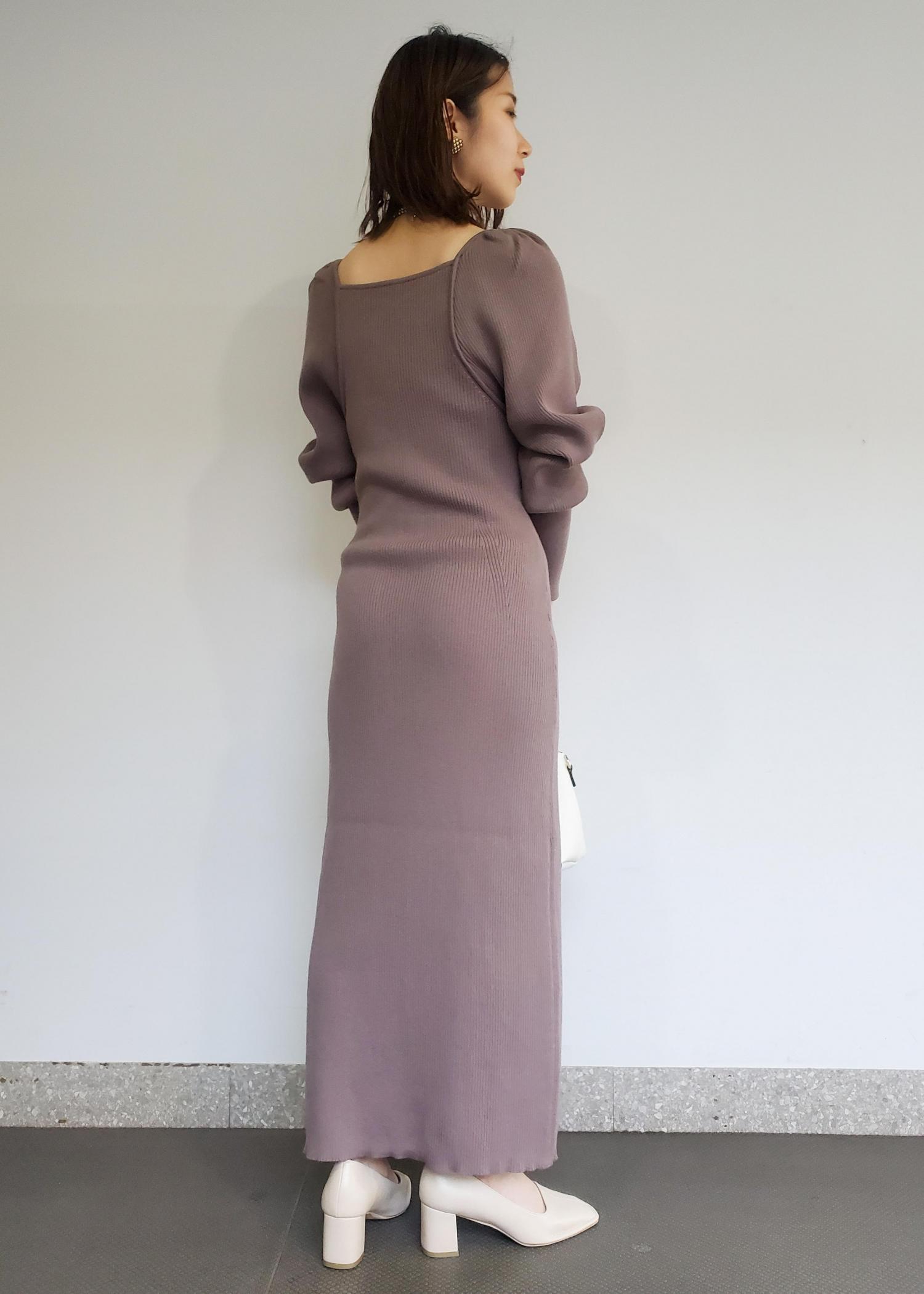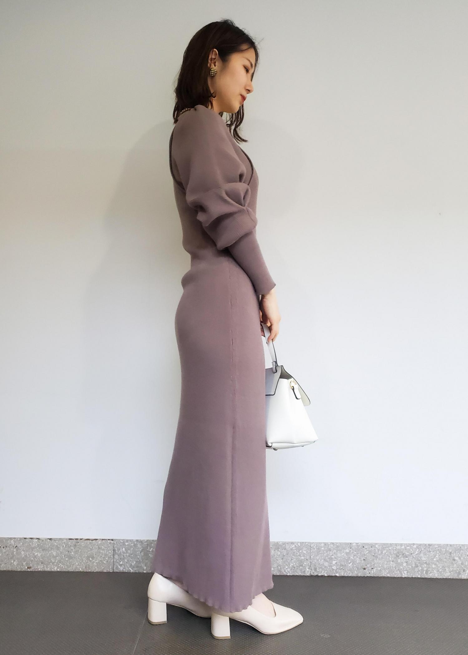 Iラインのシルエットやデコルテの開き感が女性らしさ満点のワンピース。