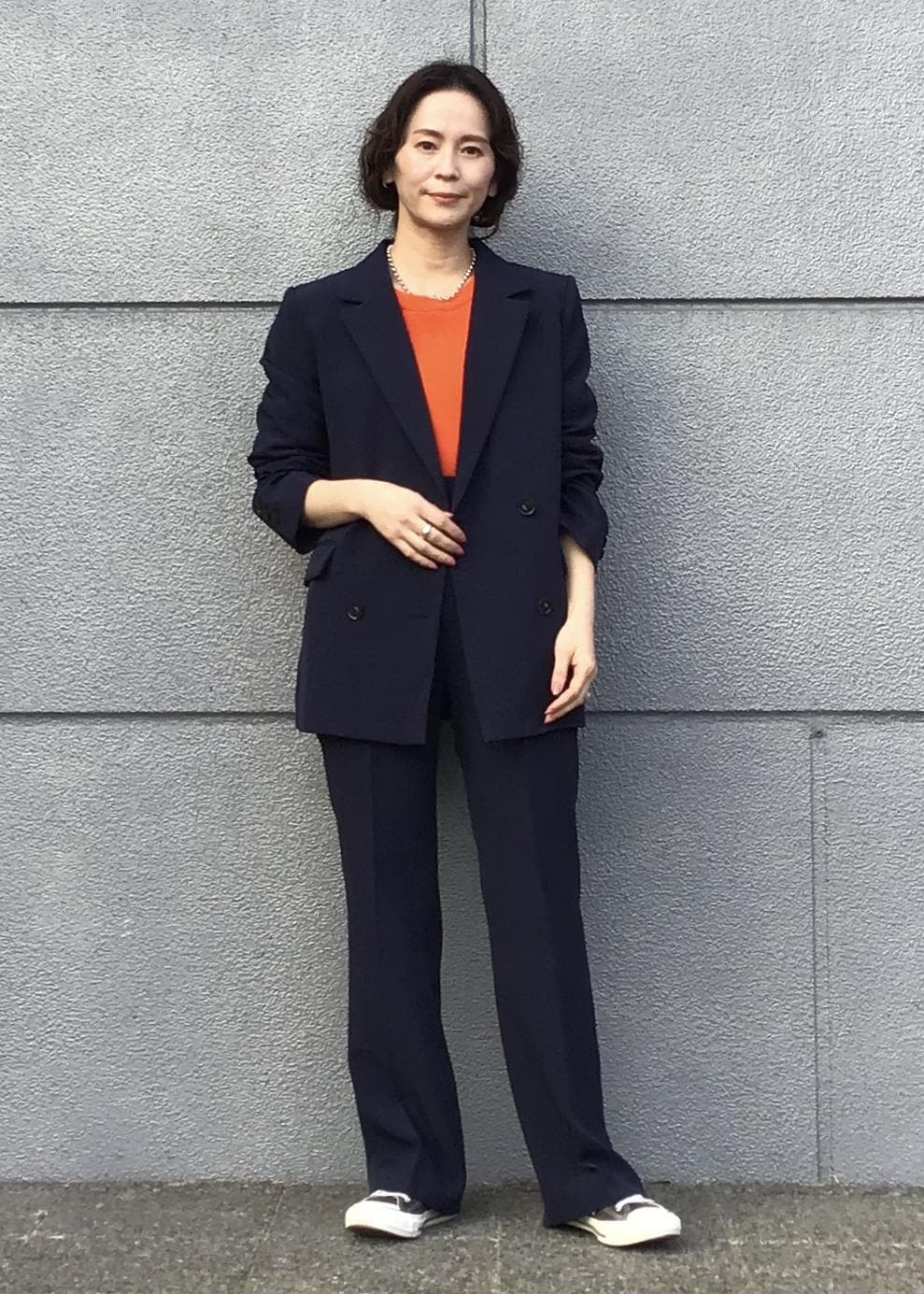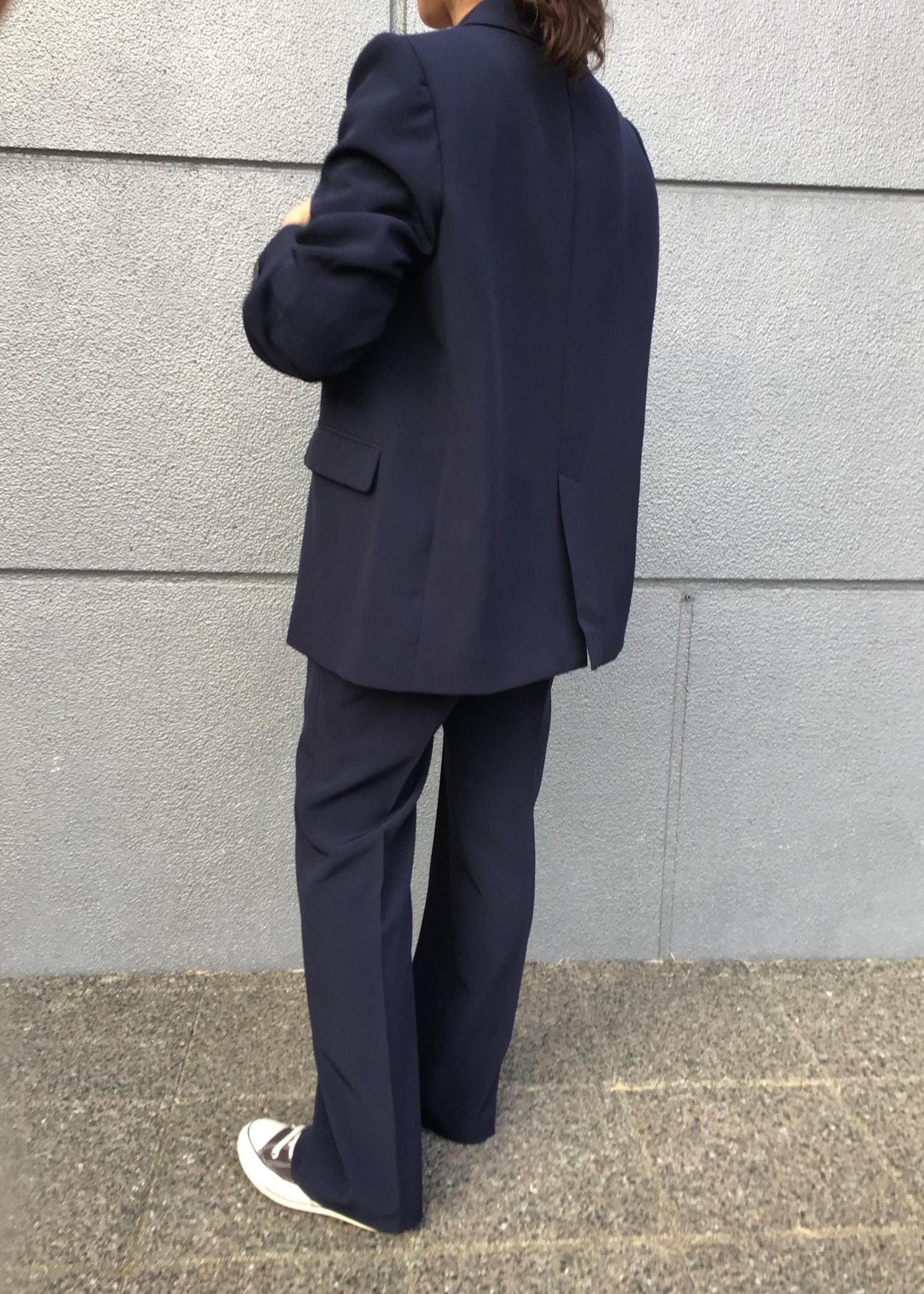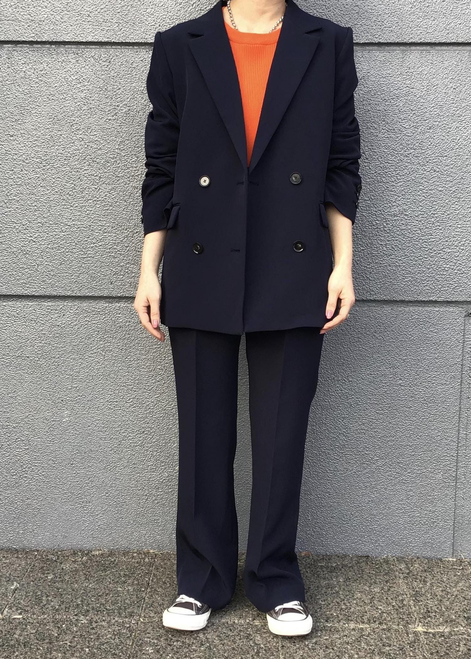 今回はスニーカー合わせでカジュアルに仕上げましたが、ジャケットのなかをブラウスや、アクセサリーなど小物次第でフォーマル感をぐっと演出できます!