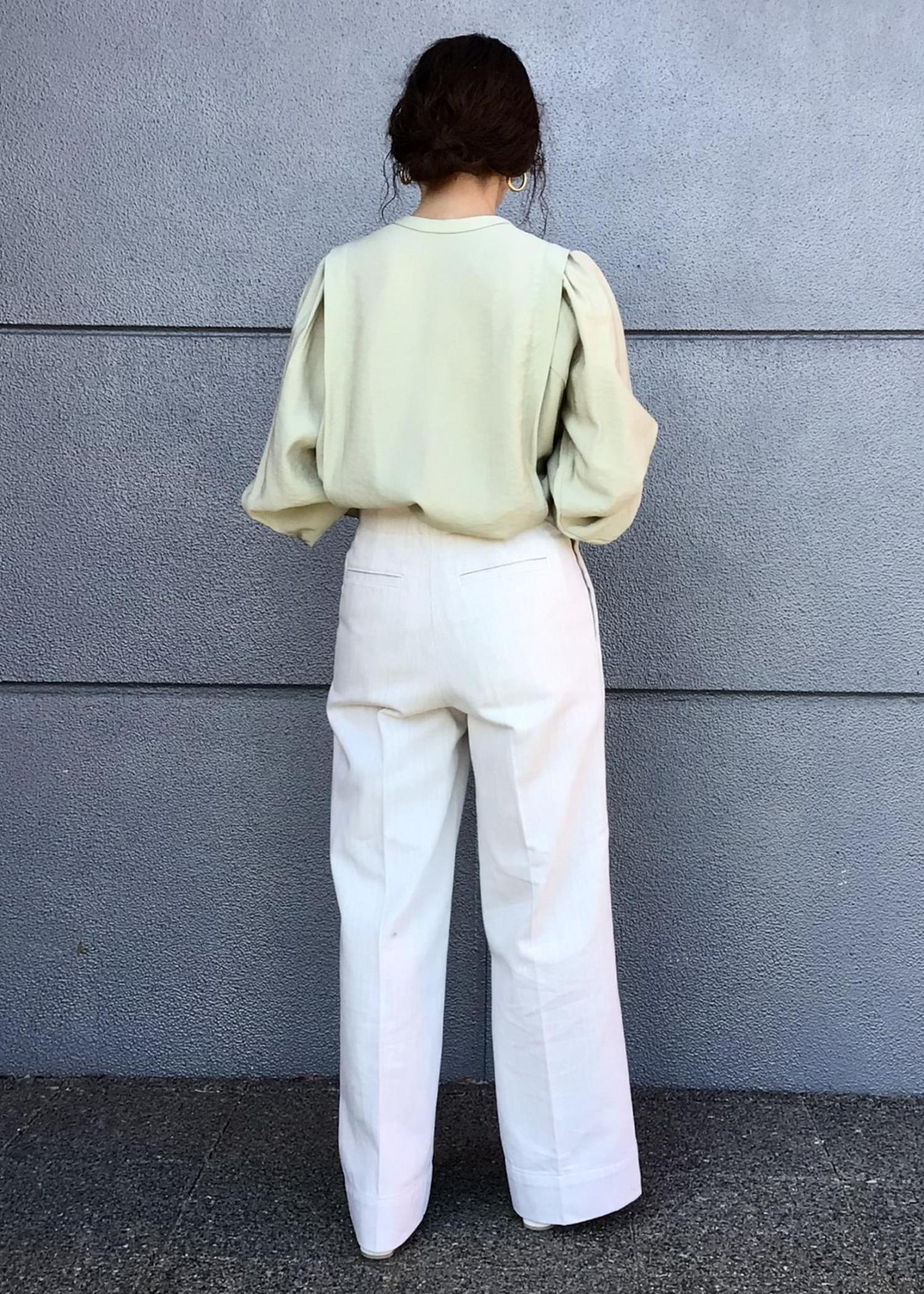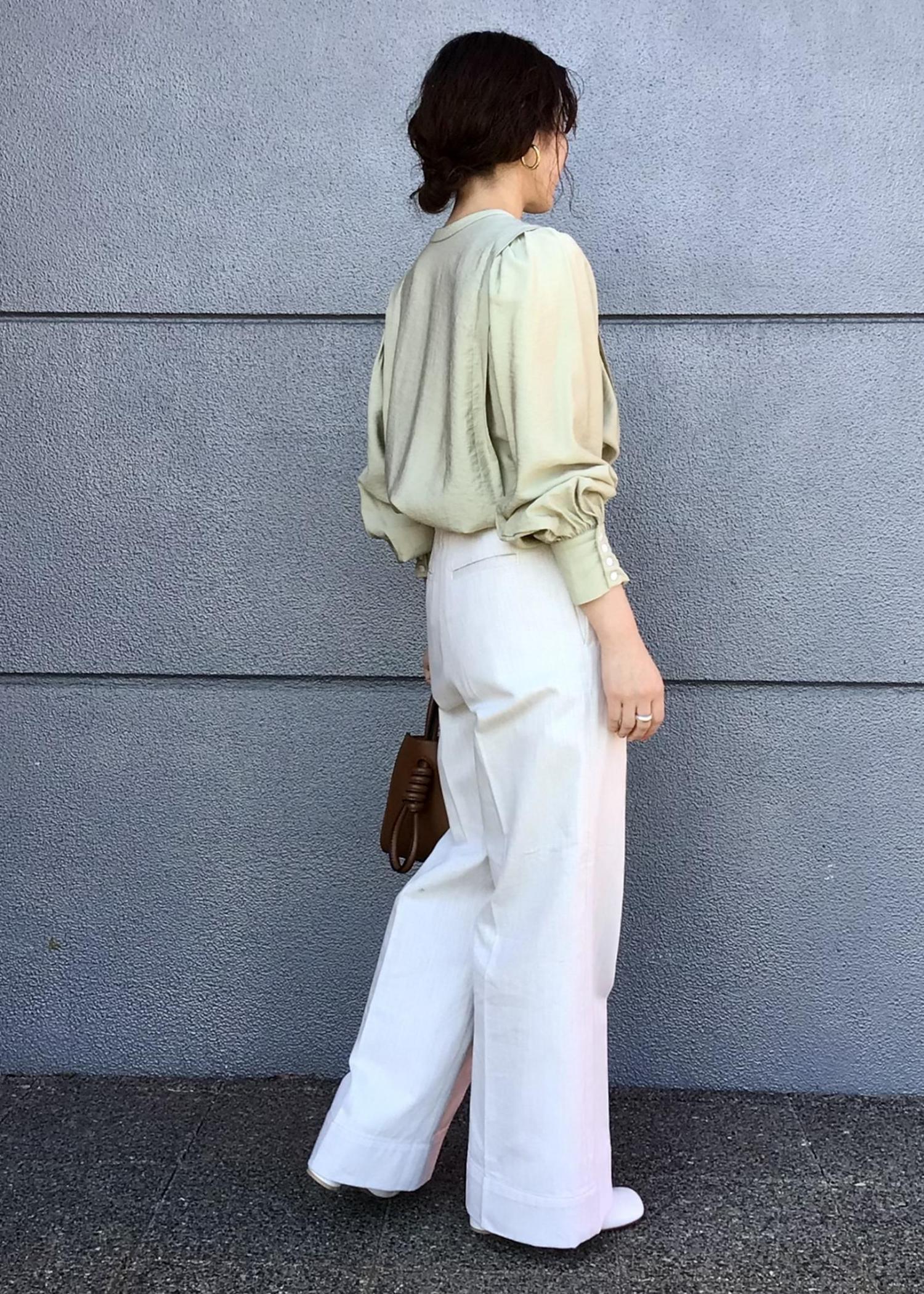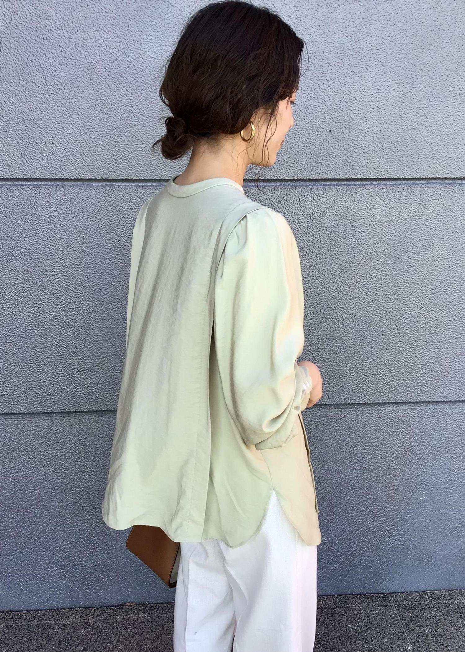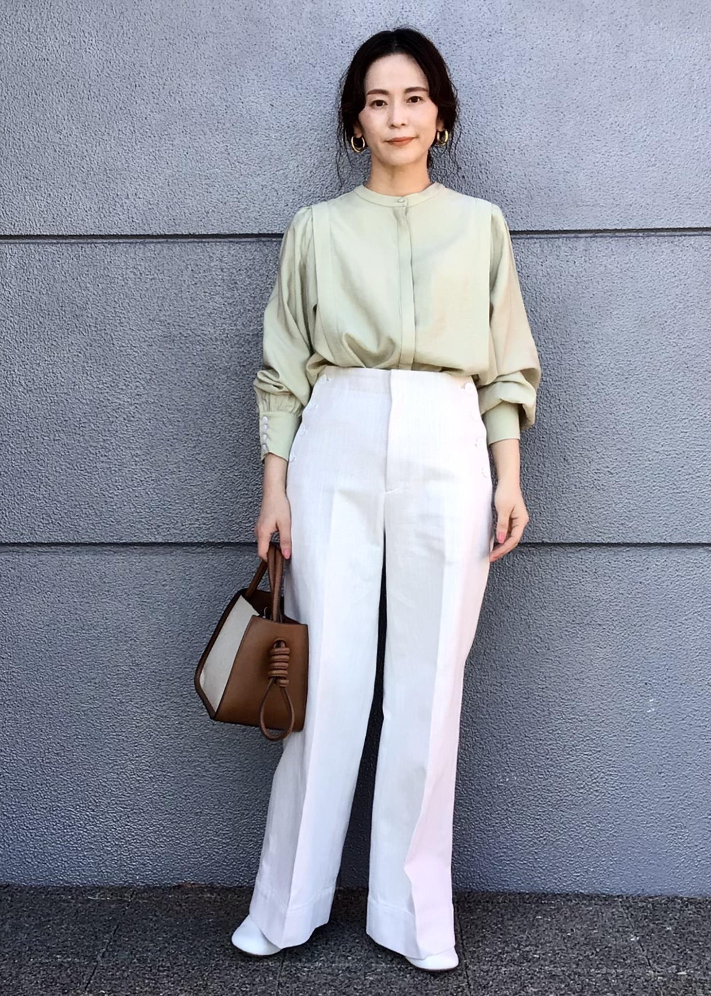 春らしいカラーで、ふんわりとした大人の雰囲気にしてくれる上品なブラウスです。