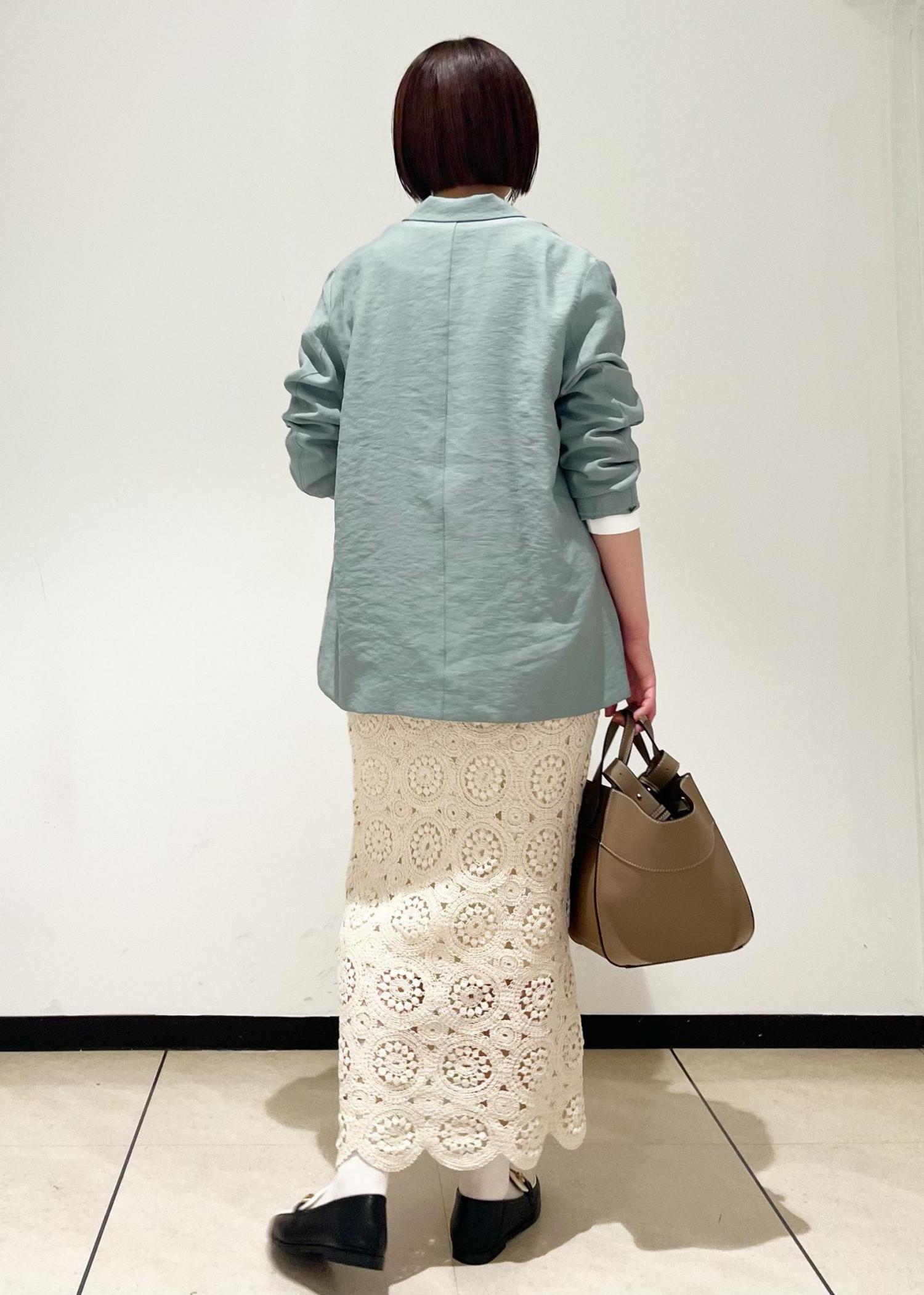 スカートはレース素材でフェミニンなイメージもプラスしています。