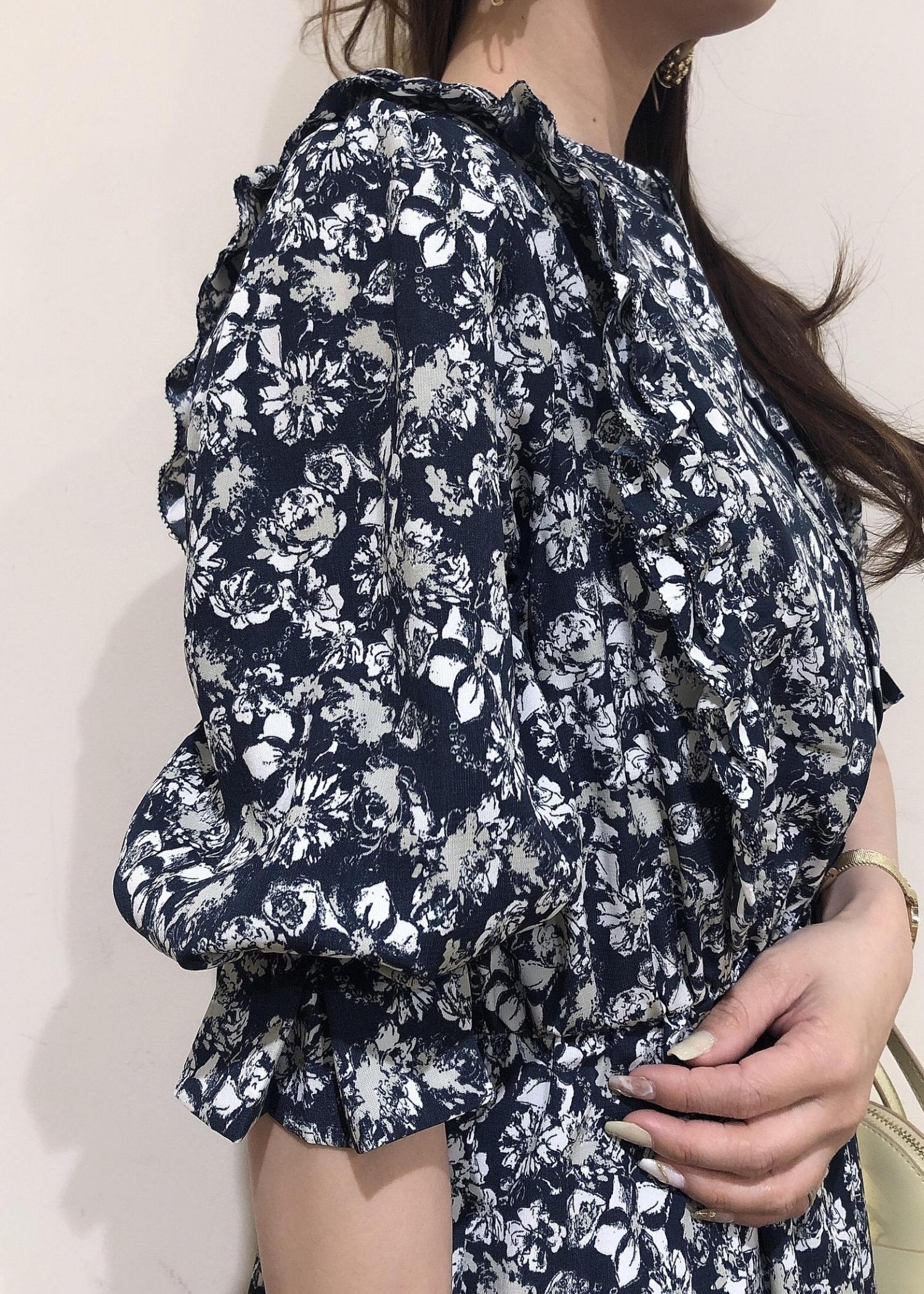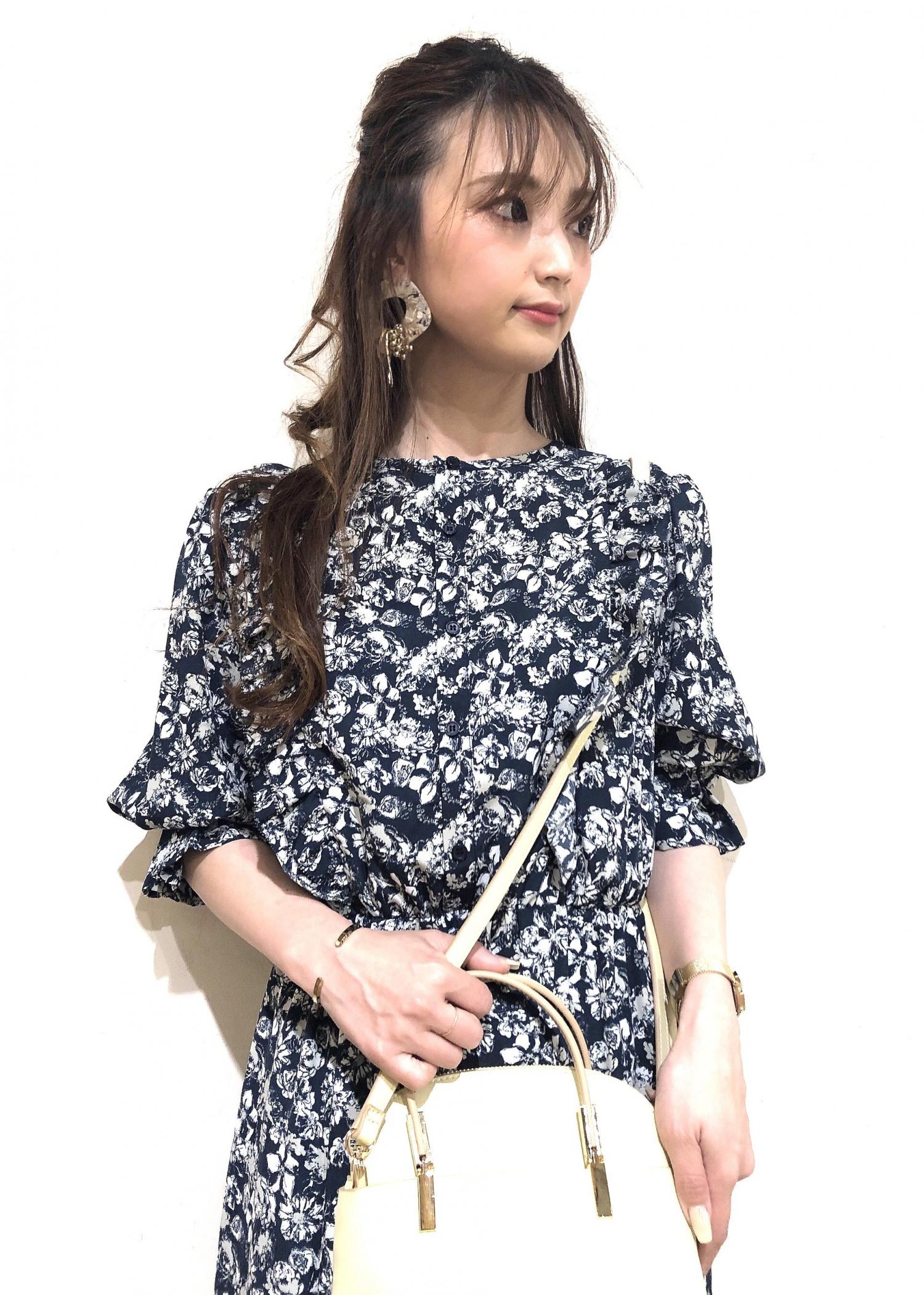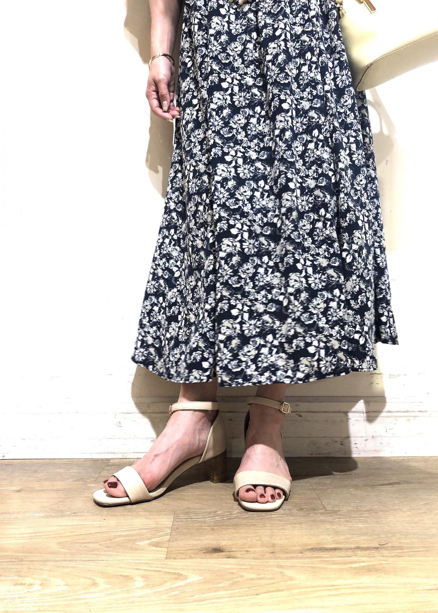 ネイビーの小花柄ワンピースは甘くなり過ぎず、上品な印象で着用できますよ⭐︎