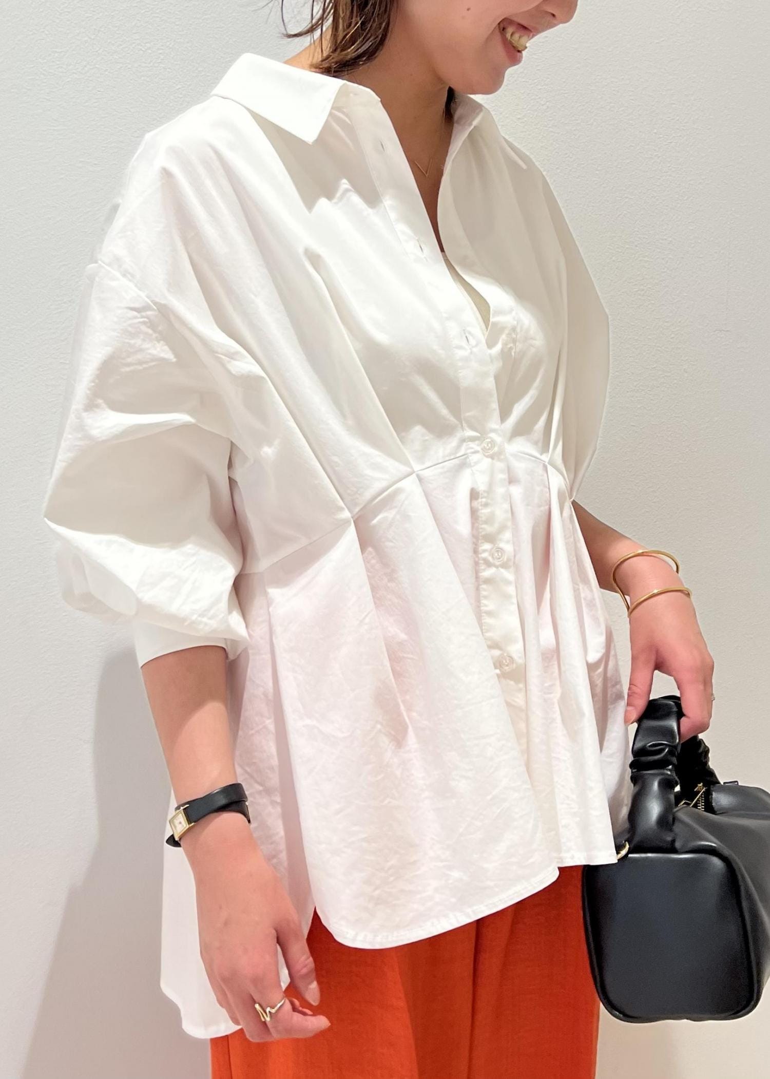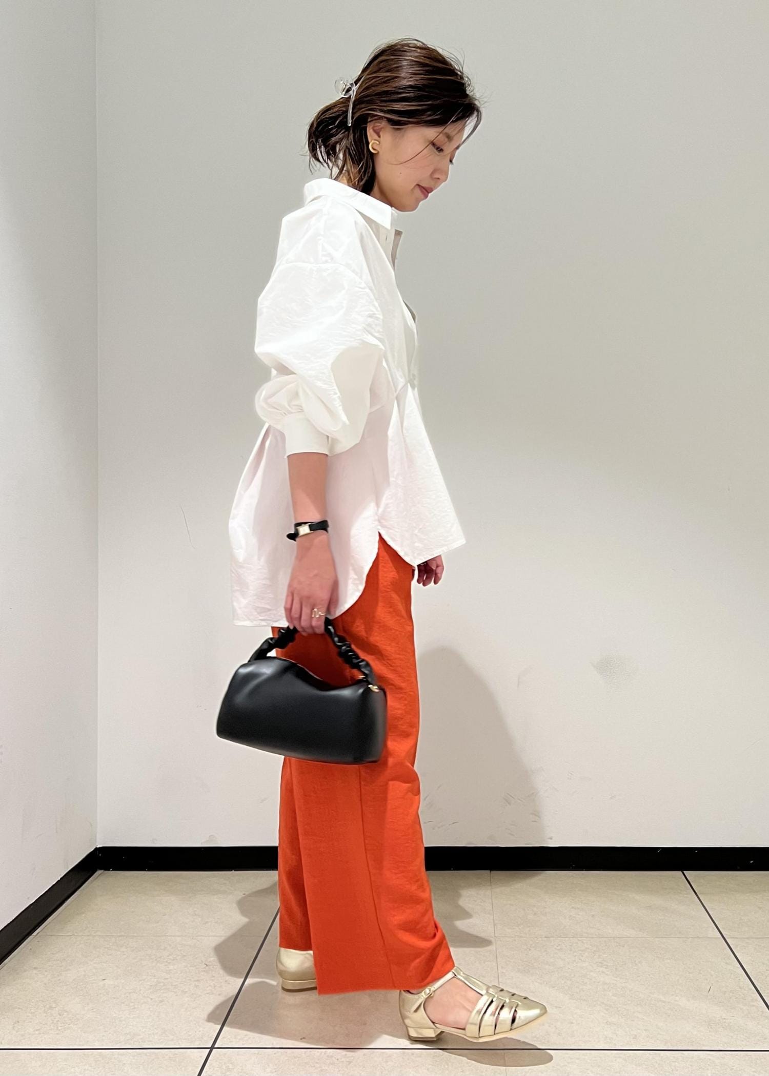 鮮やかなオレンジのパンツは、この夏ポイントカラーになる事間違いなしです!清涼感のあるリネンライク素材は、シワになりにくくお手入れいらずなのが◎です。綺麗目にもカジュアルにも使える万能パンツです。