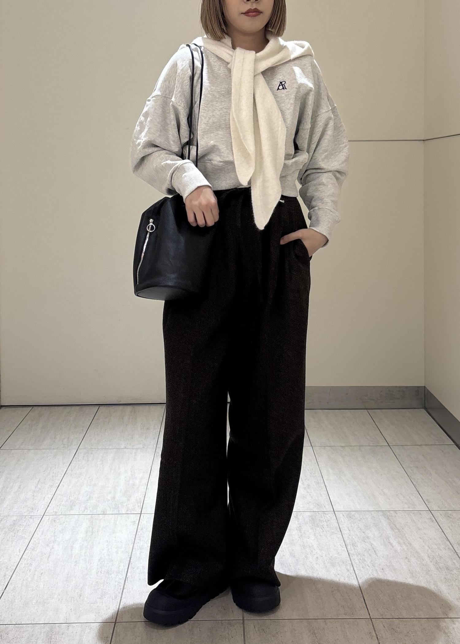 こちらリアルバイアイテムです!着ていて思ったのはシワのつき方が頑固じゃないため、ついたとしても見え方嫌な感じがしませんし、スチームでとれやすいです◎