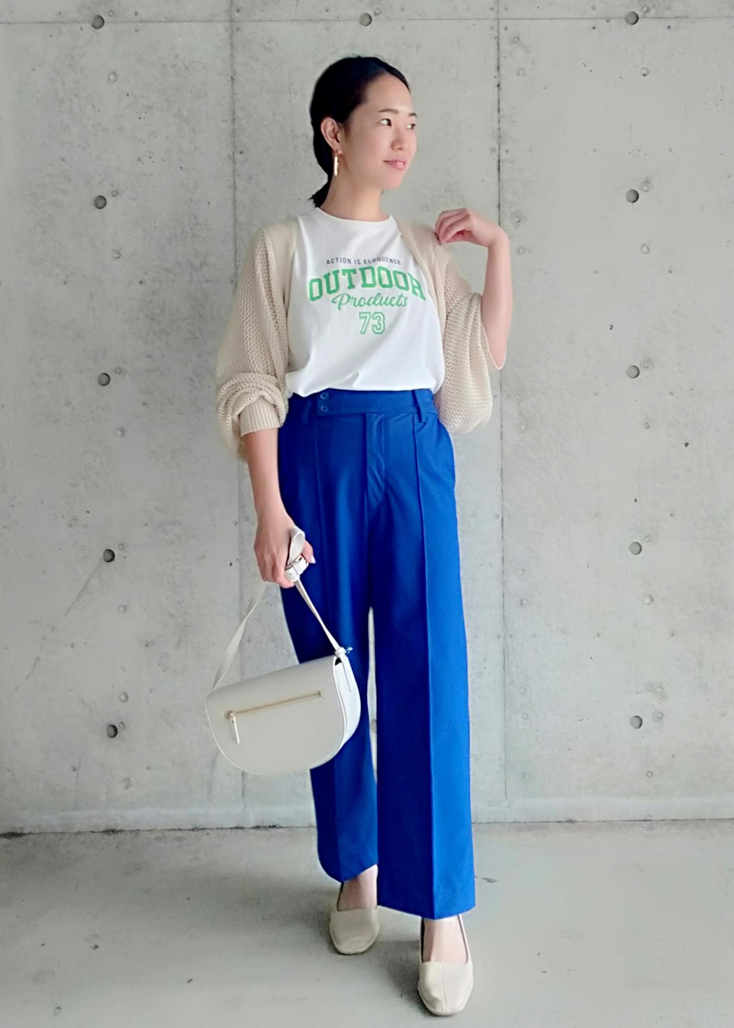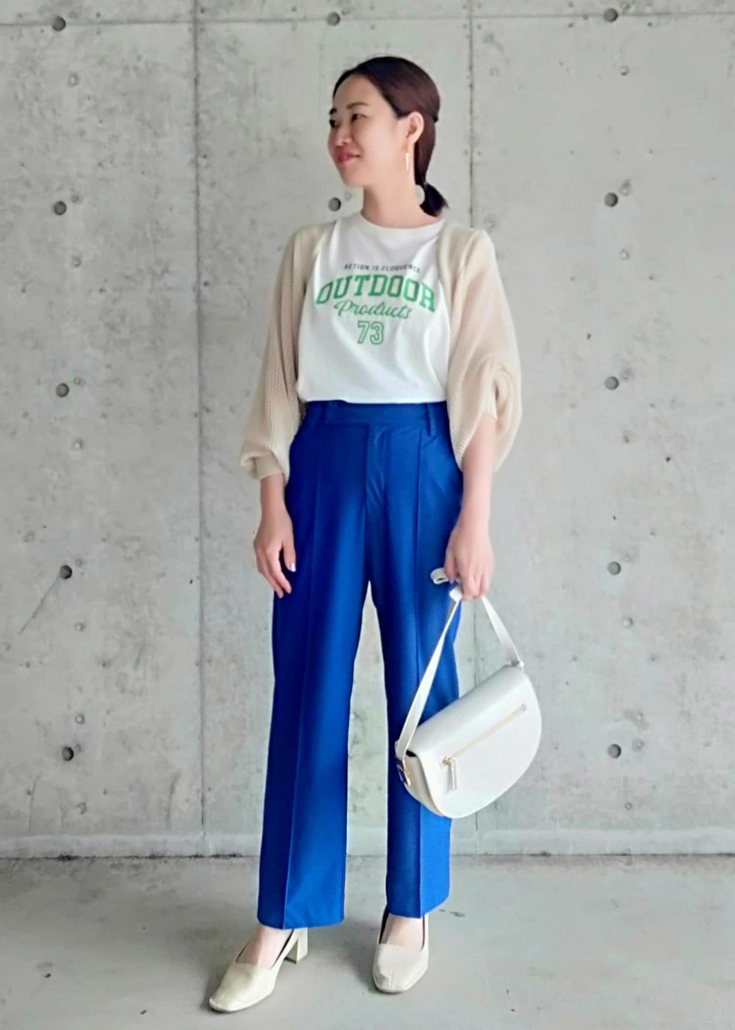 こちらのパンツは、鮮やかなブルーがぱっと目を引き、夏らしさを演出してくれます!